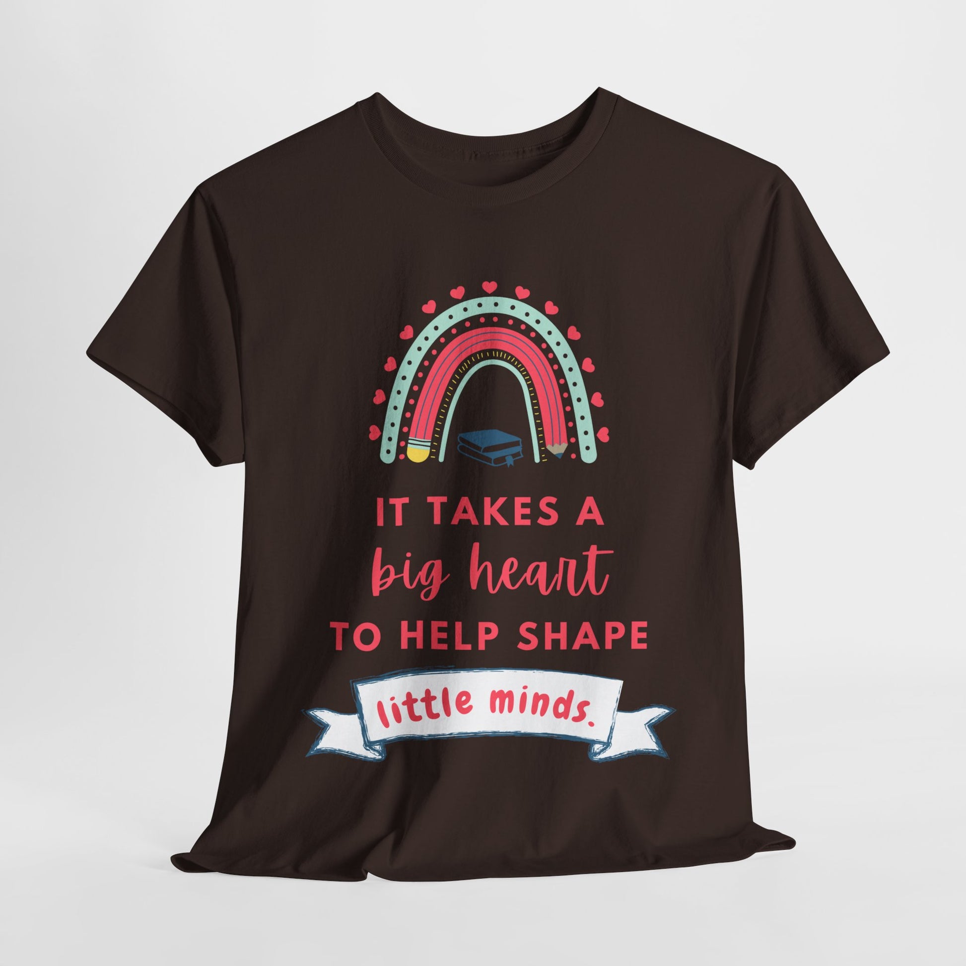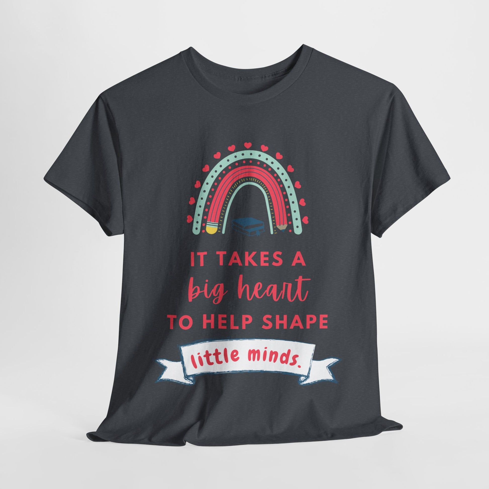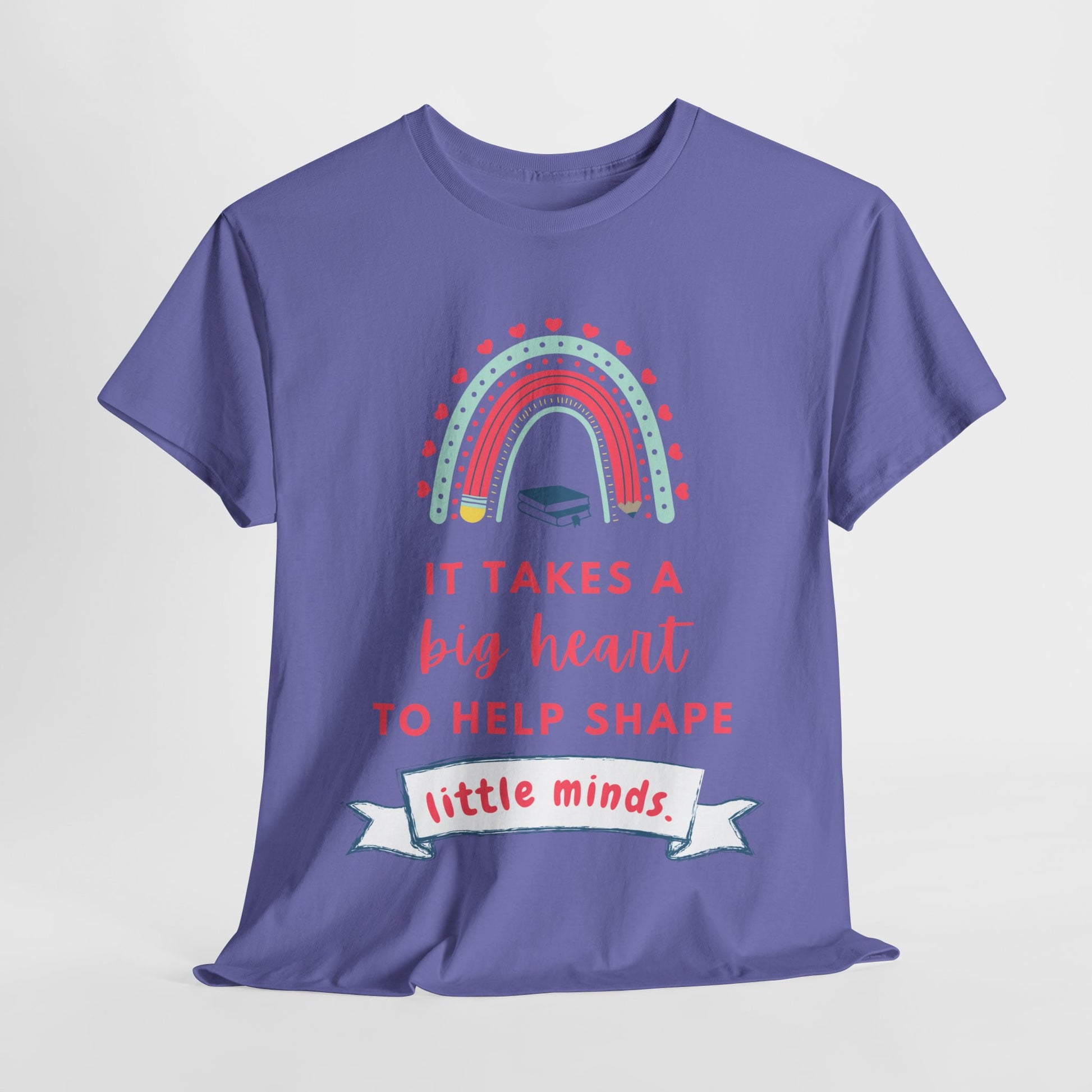 🍎✨ Celebrate the heart and dedication of teachers, mentors, and caregivers with this colorful rainbow tee. The inspiring message, “It takes a big heart to help shape little minds,” makes it a thoughtful gift for educators, librarians, and anyone who makes a difference in a child’s life. 💜📚 Whether worn in the classroom or beyond, it’s a meaningful way to show appreciation while spreading positivity. 🌈💖