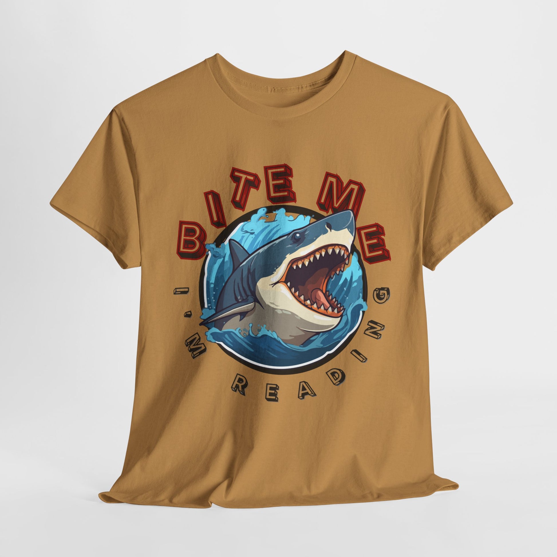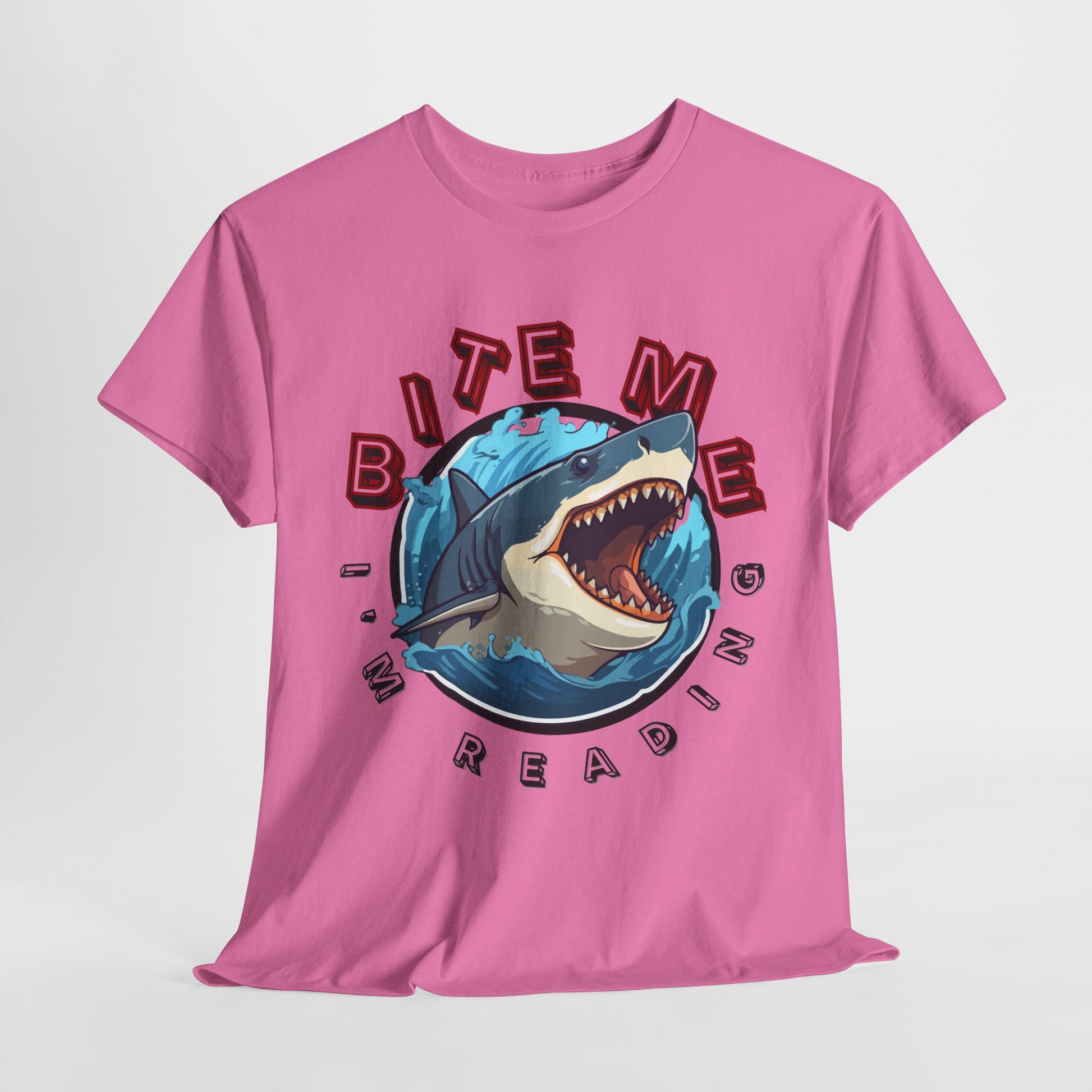 Teen/Adult Unisex Bite Me I'm Reading Tee – Shark Shirt for Fierce Bookworms