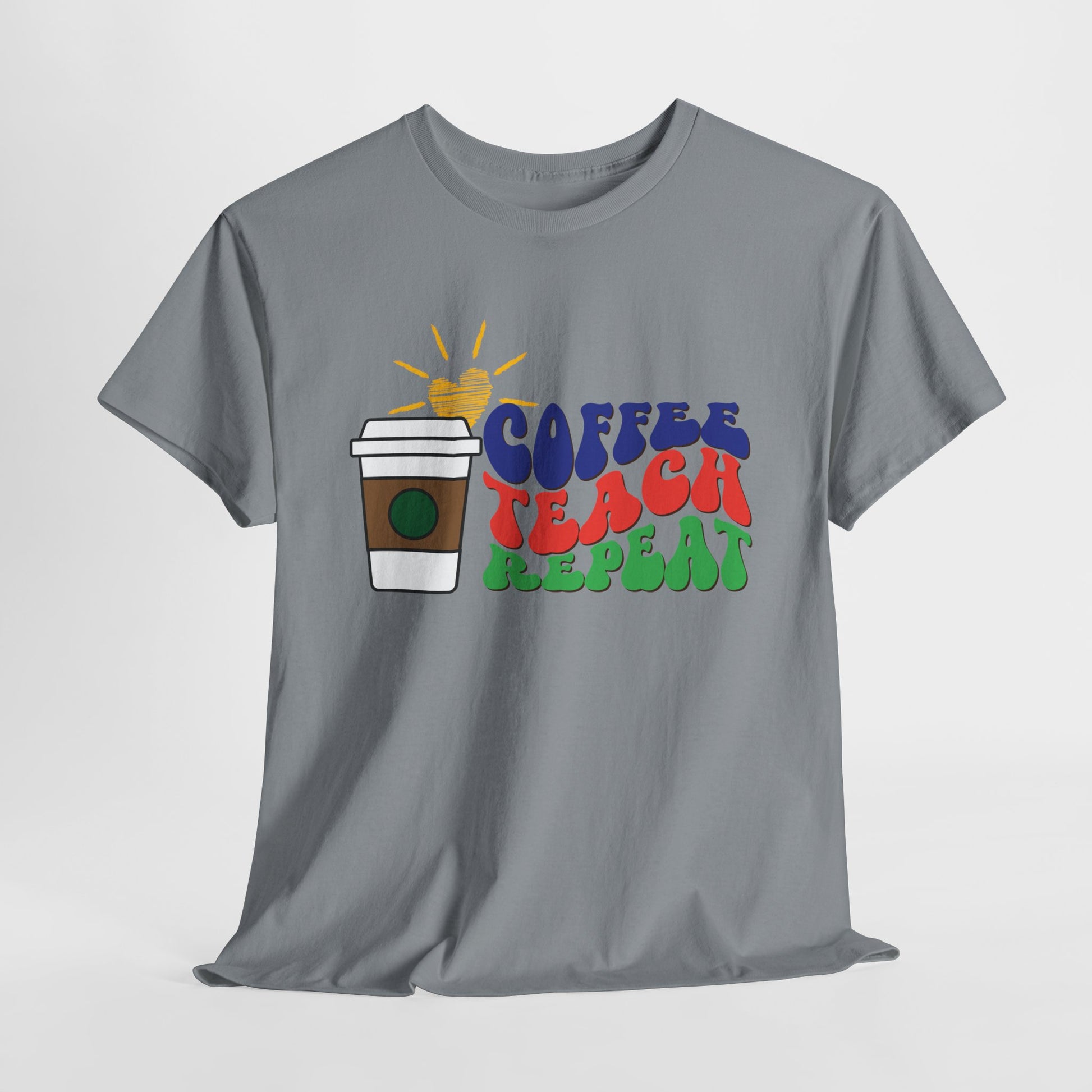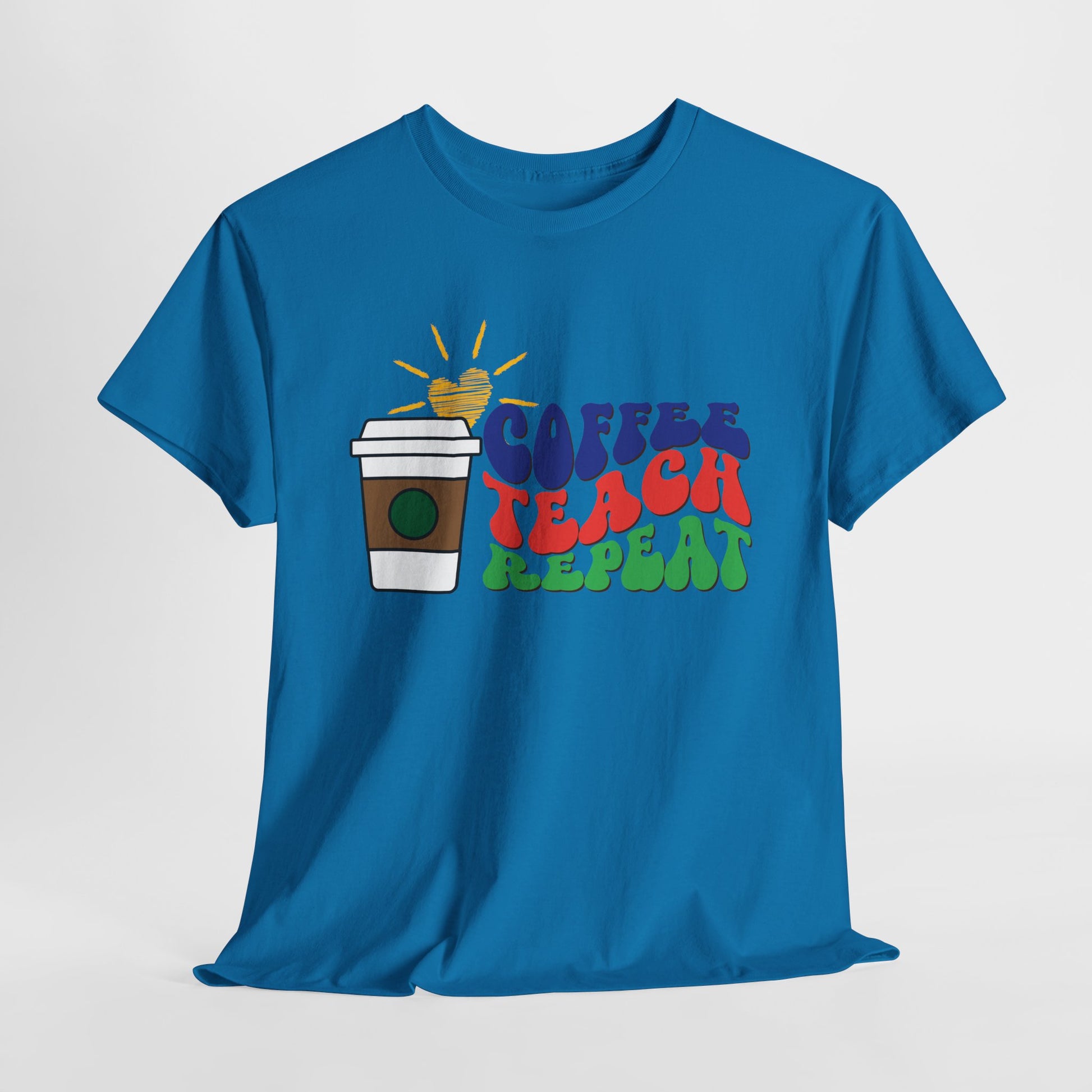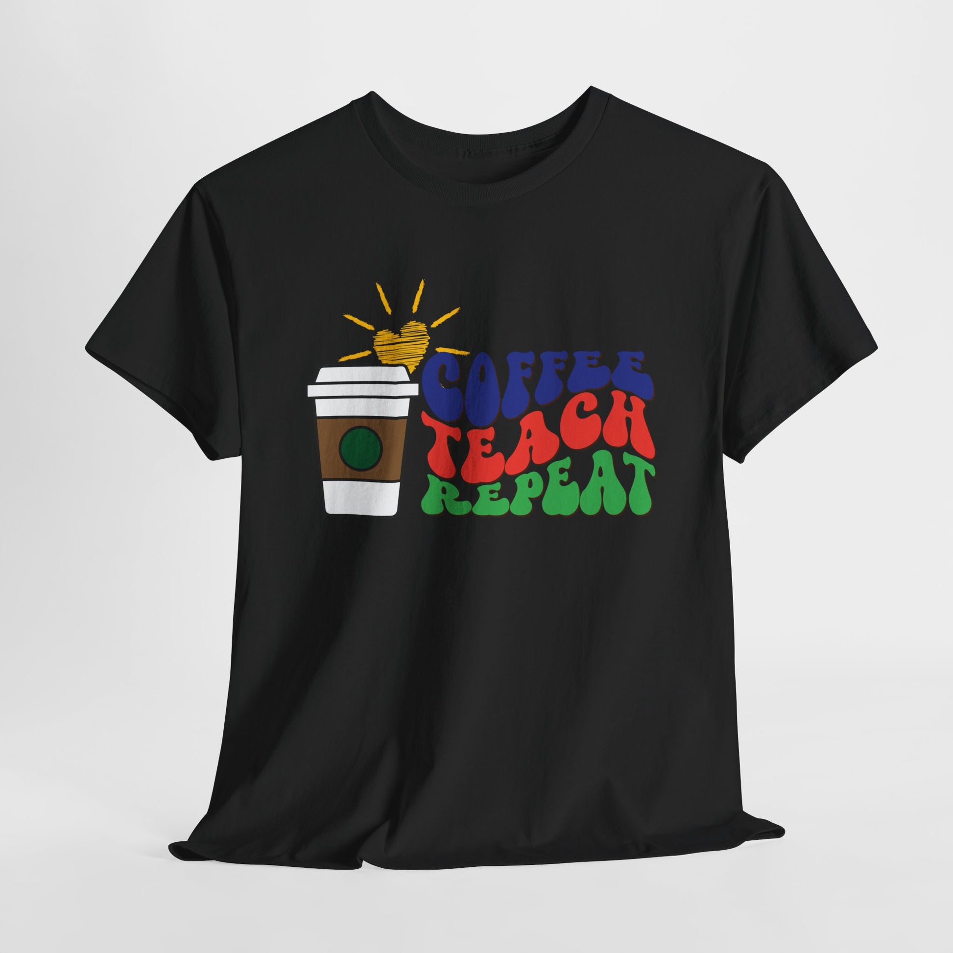 Teen/Adult Unisex Coffee. Teach. Repeat. Tee – Groovy Retro Shirt for Teachers