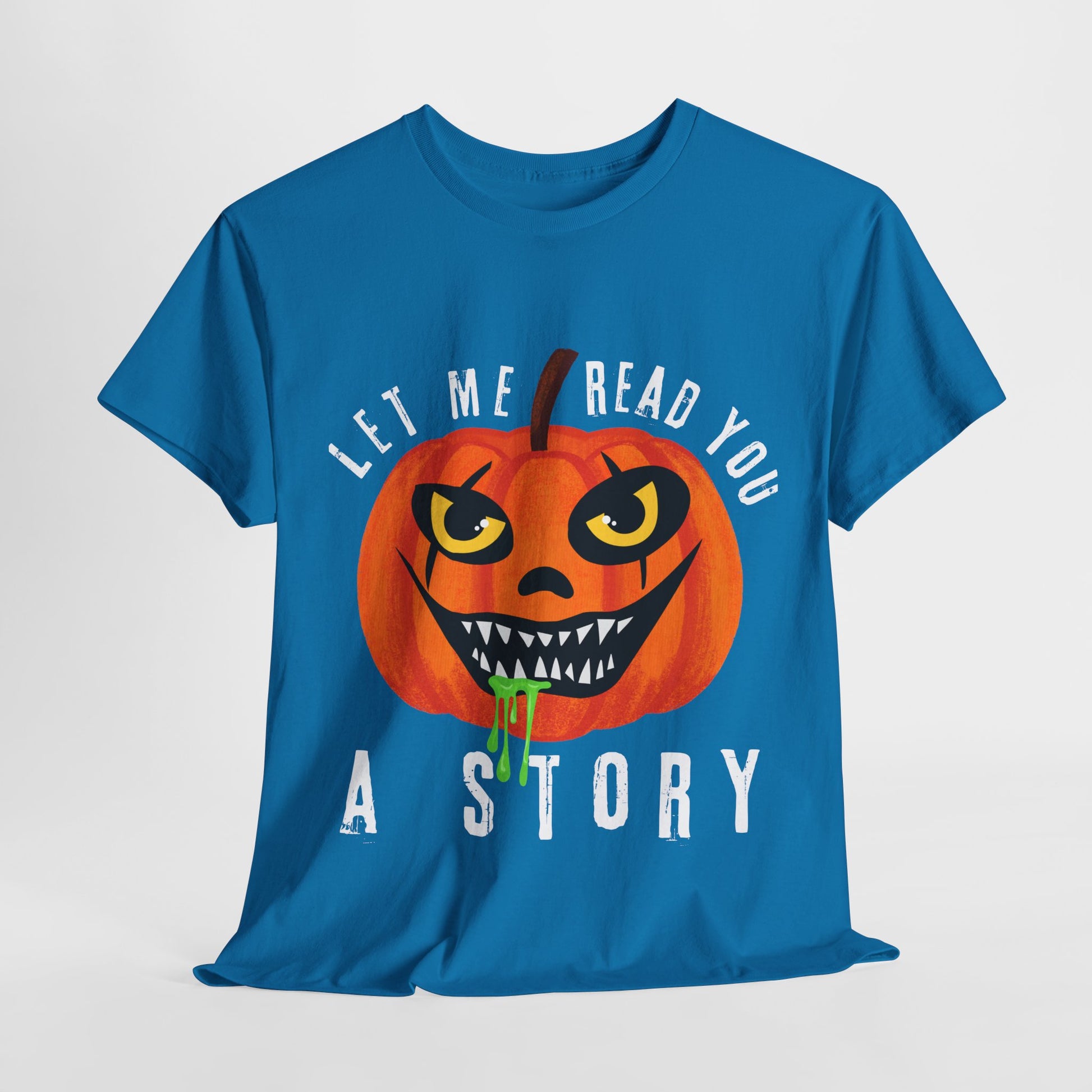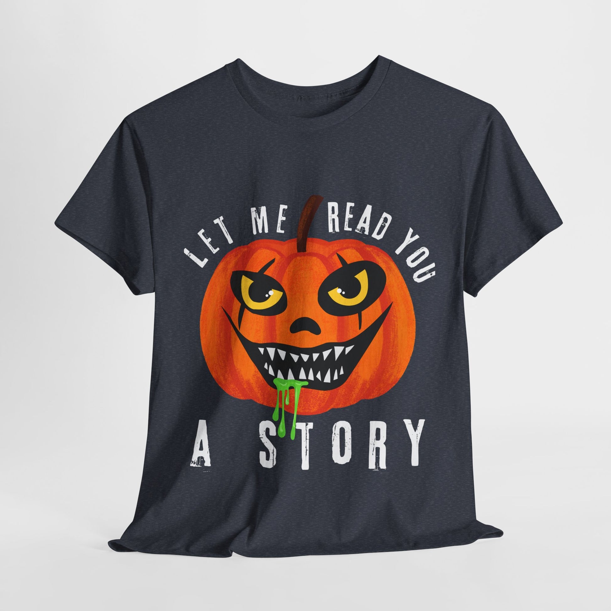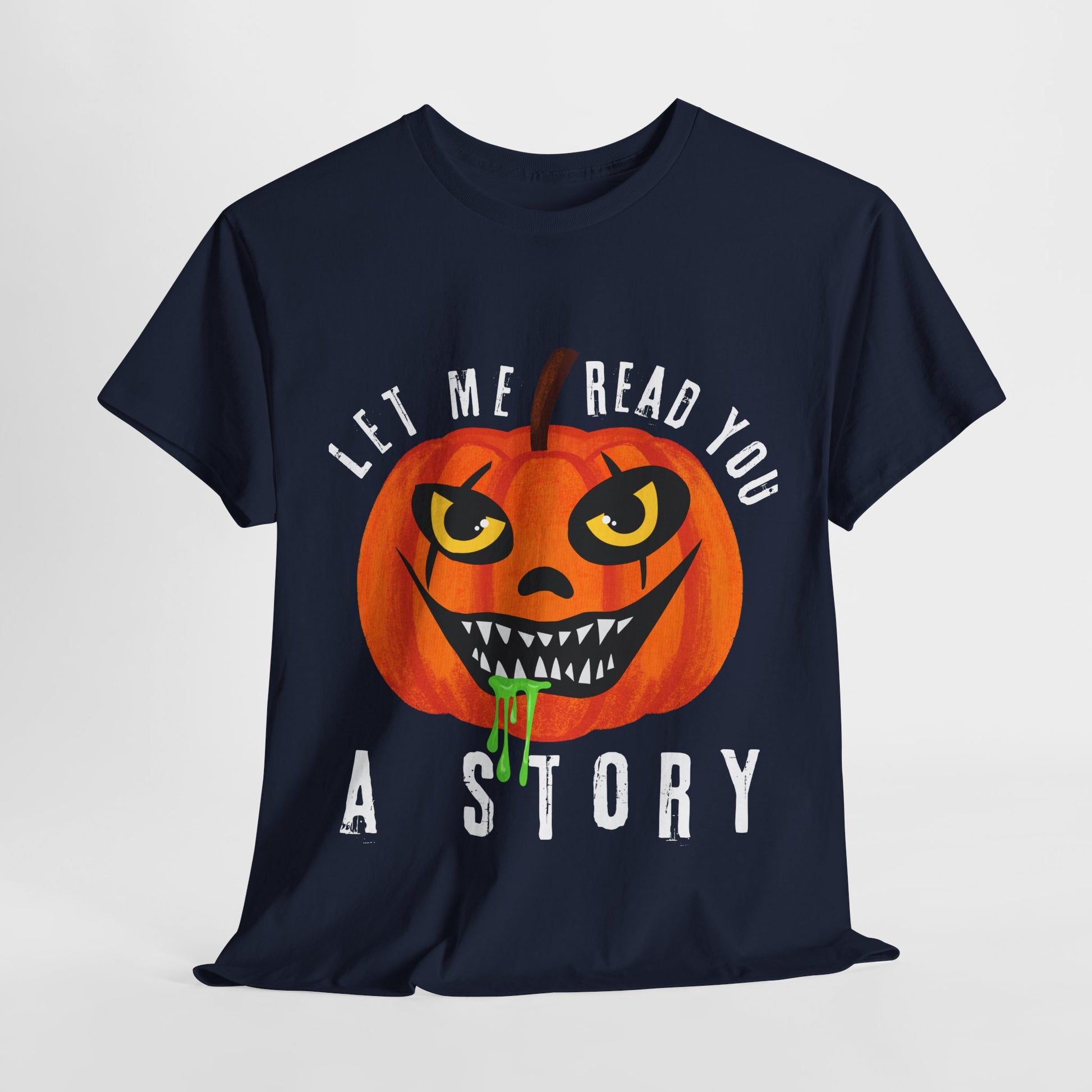 Teen/Adult Unisex Creepy Pumpkin "Let Me Read You a Story" T-Shirt – Spooky Halloween Reader Tee