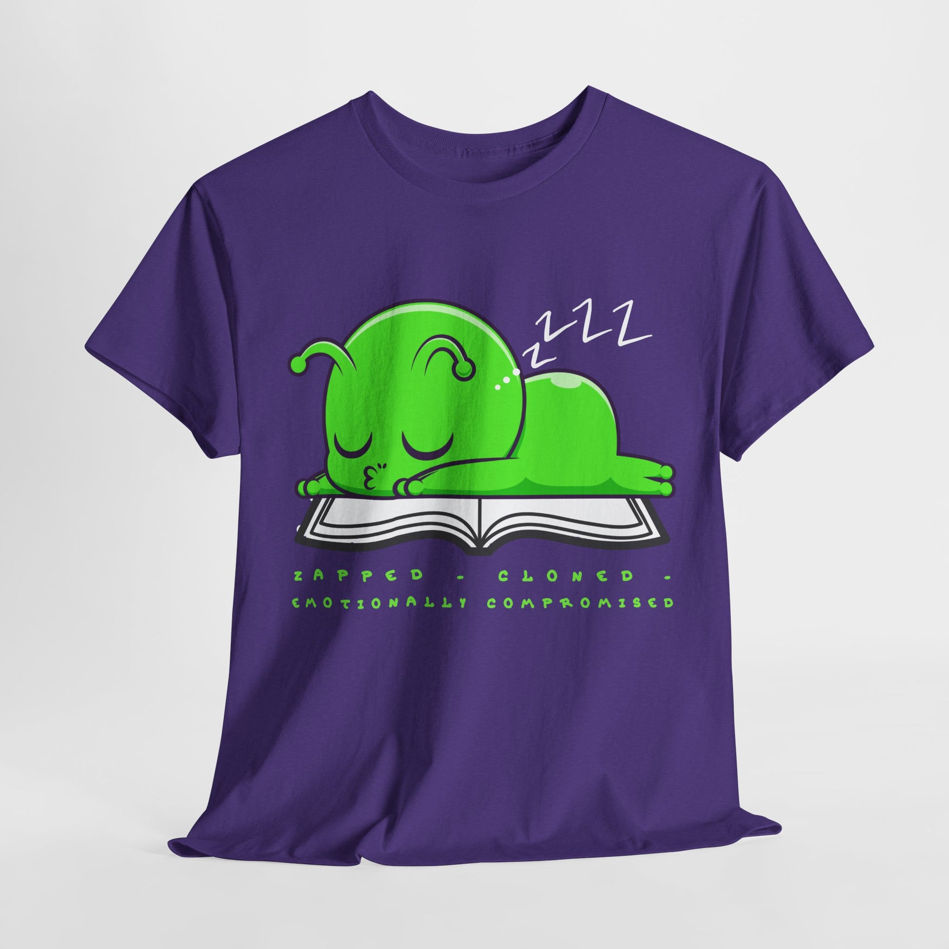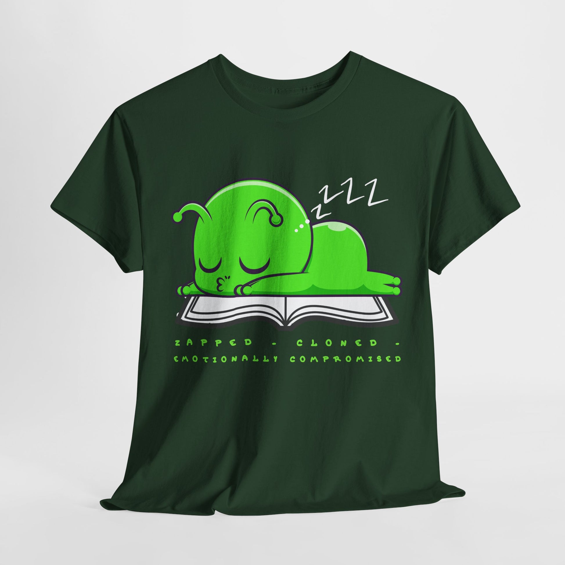 Reading late into the night? Same. 📚😴 This cozy tee captures that universal exhaustion of being raptured, cloned, and totally emotionally compromised by a good book. Perfect for sci-fi fans who wear their feelings (and their fatigue) with pride. 💚🛸💤