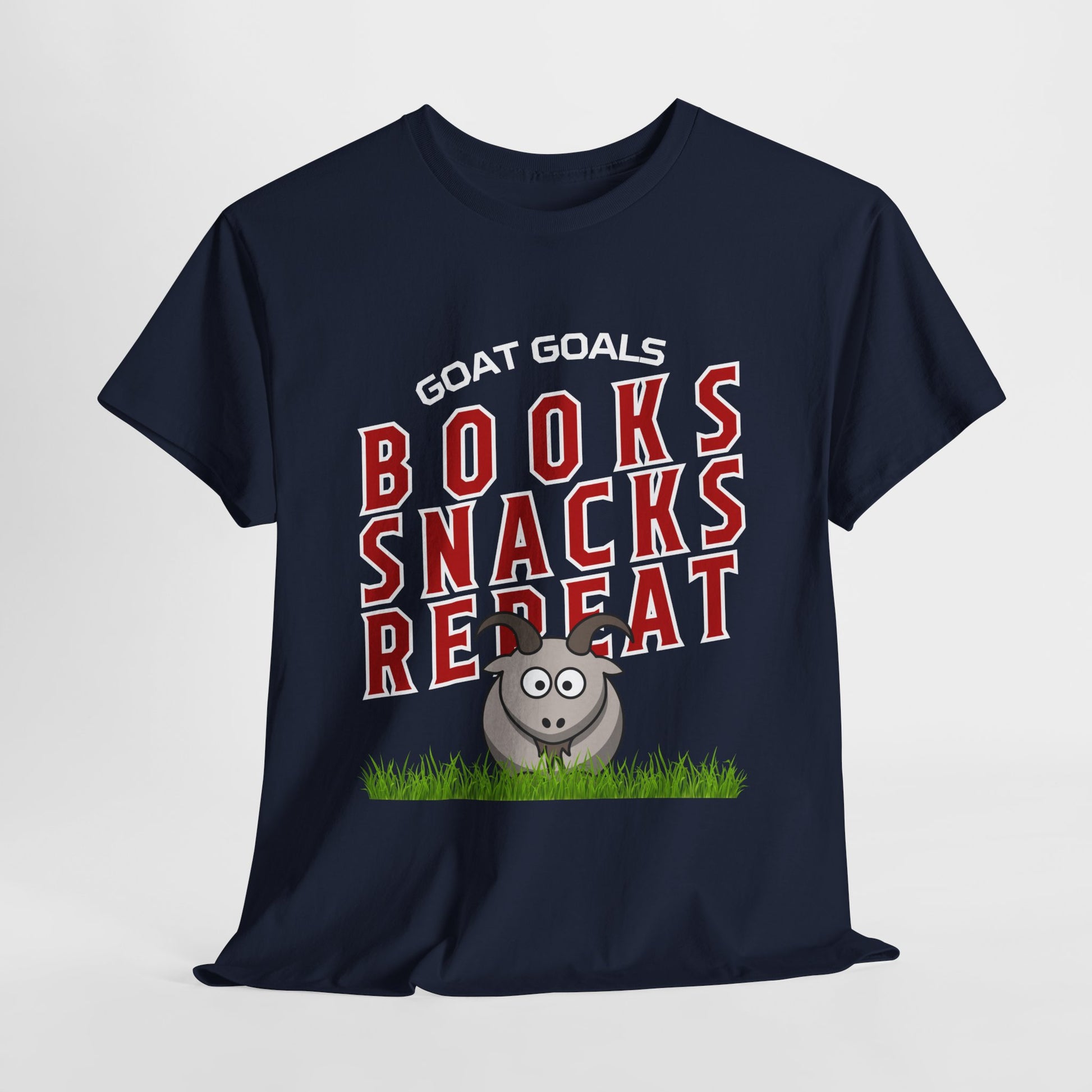 Teen/Adult Unisex – Goat Goals Books Snacks Repeat Tee