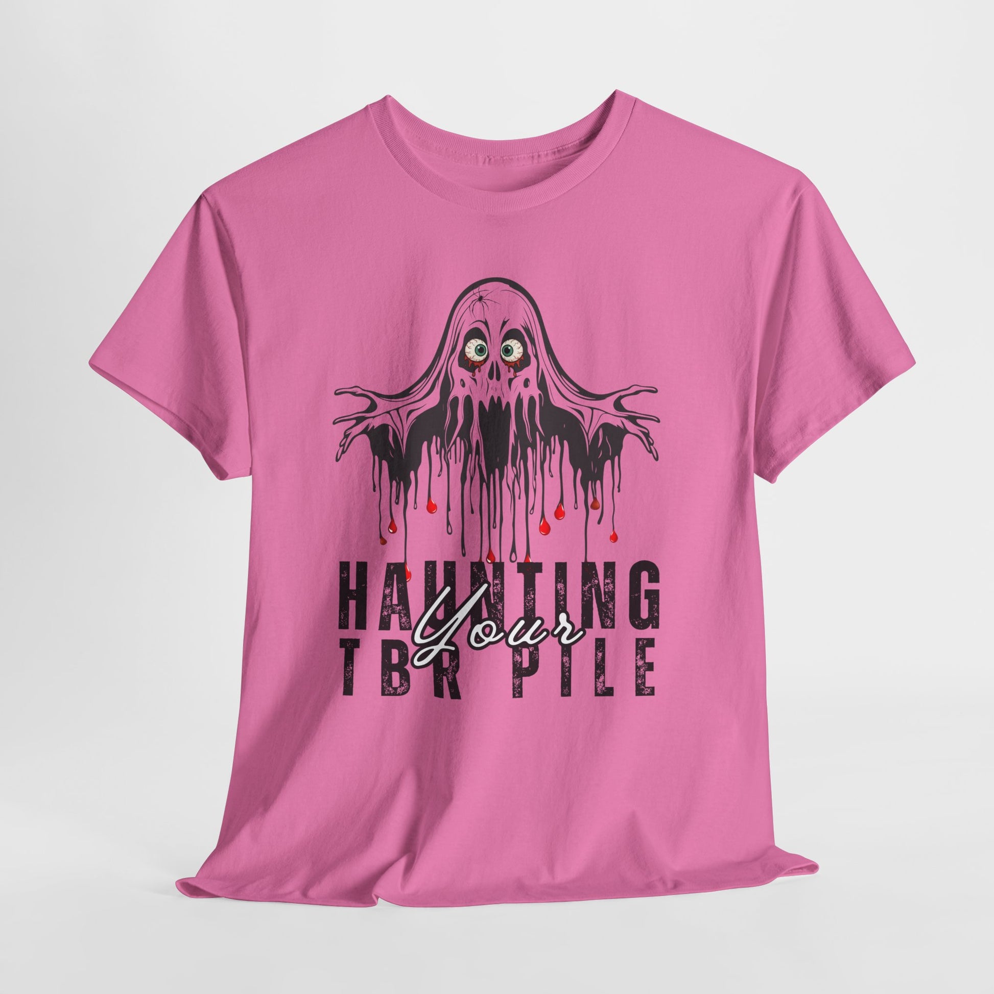 Teen/Adult Unisex Haunting Your TBR Pile T-Shirt – Horror Reader Graphic Tee
