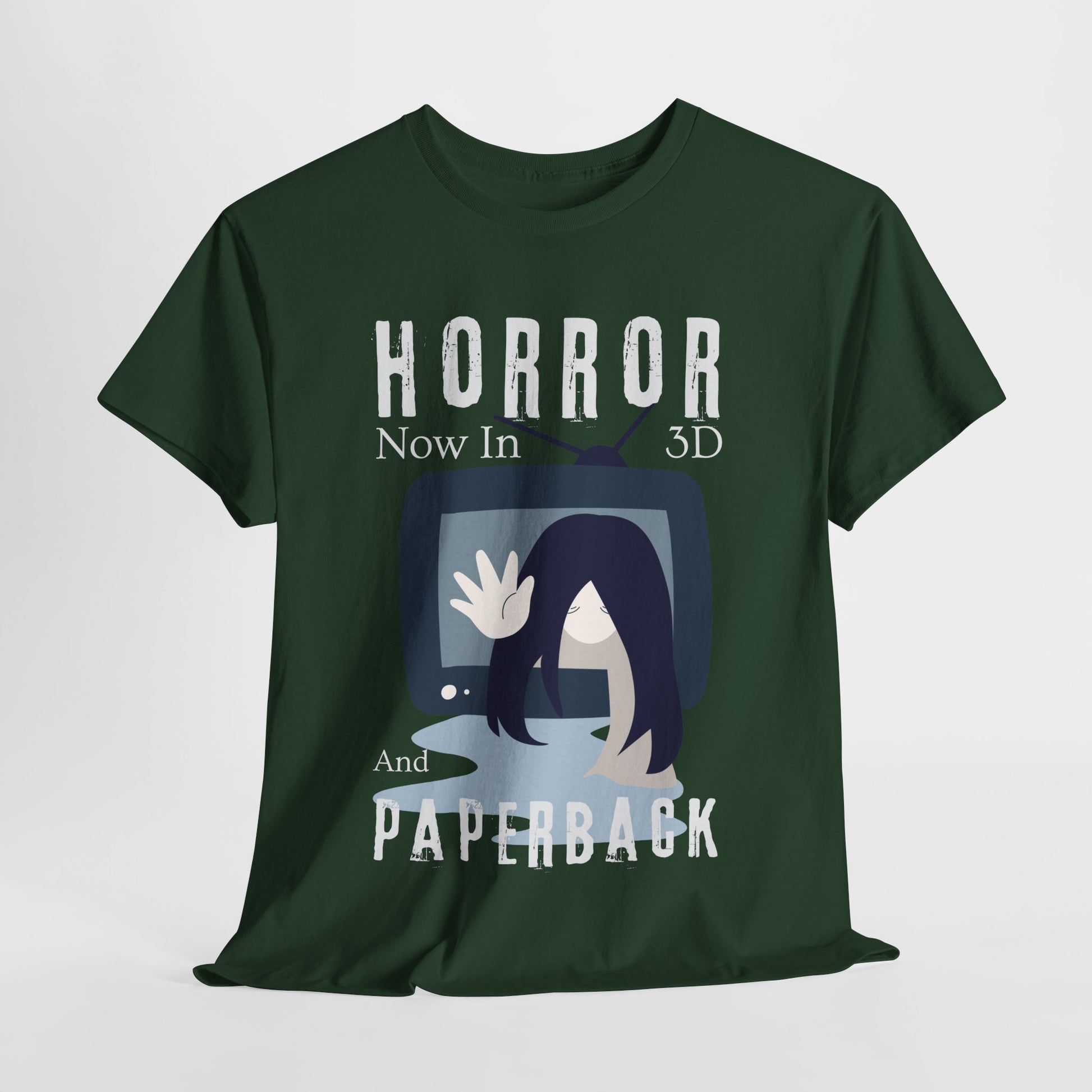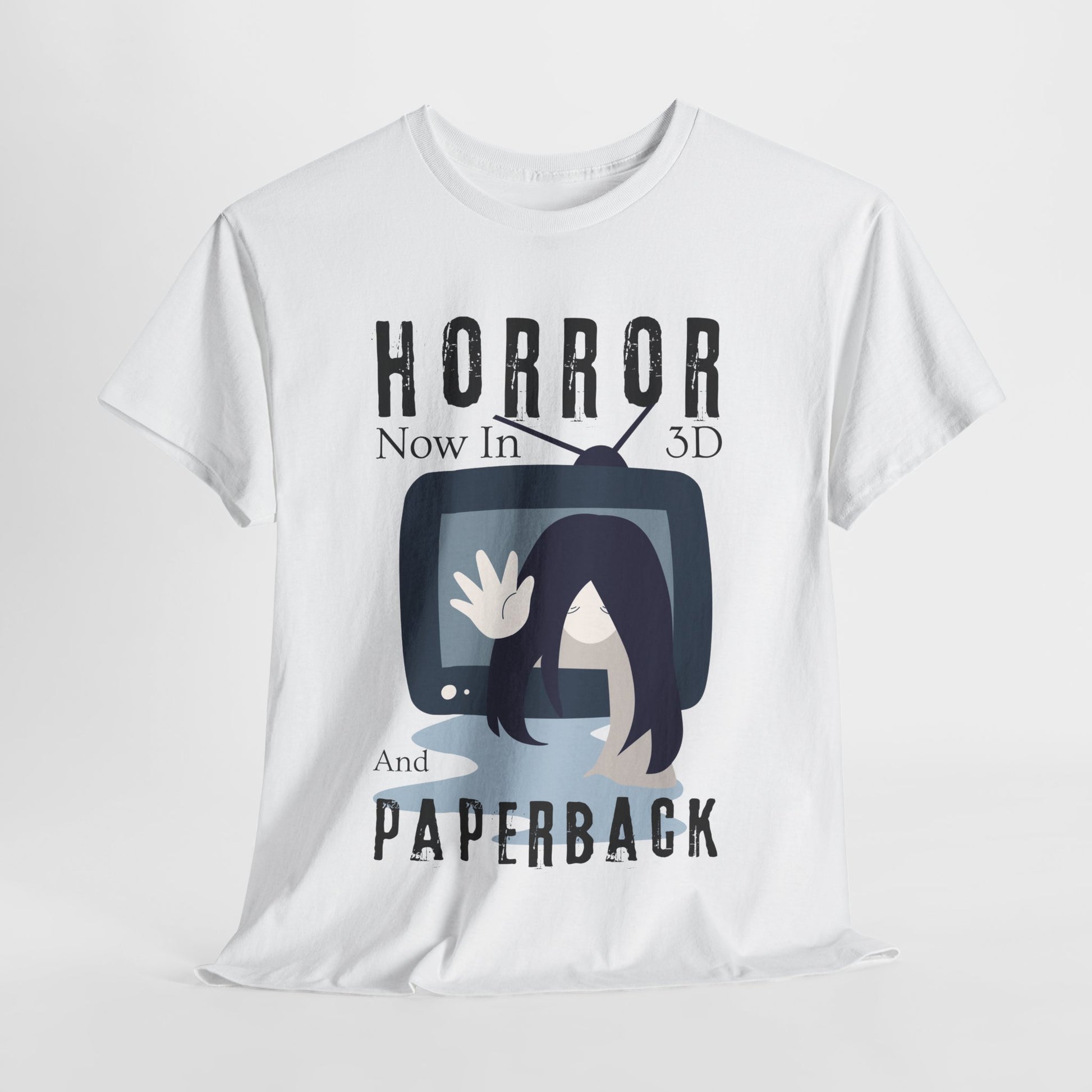 Teen/Adult Unisex Horror in 3D and Paperback T-Shirt – Creepy Retro Graphic Tee