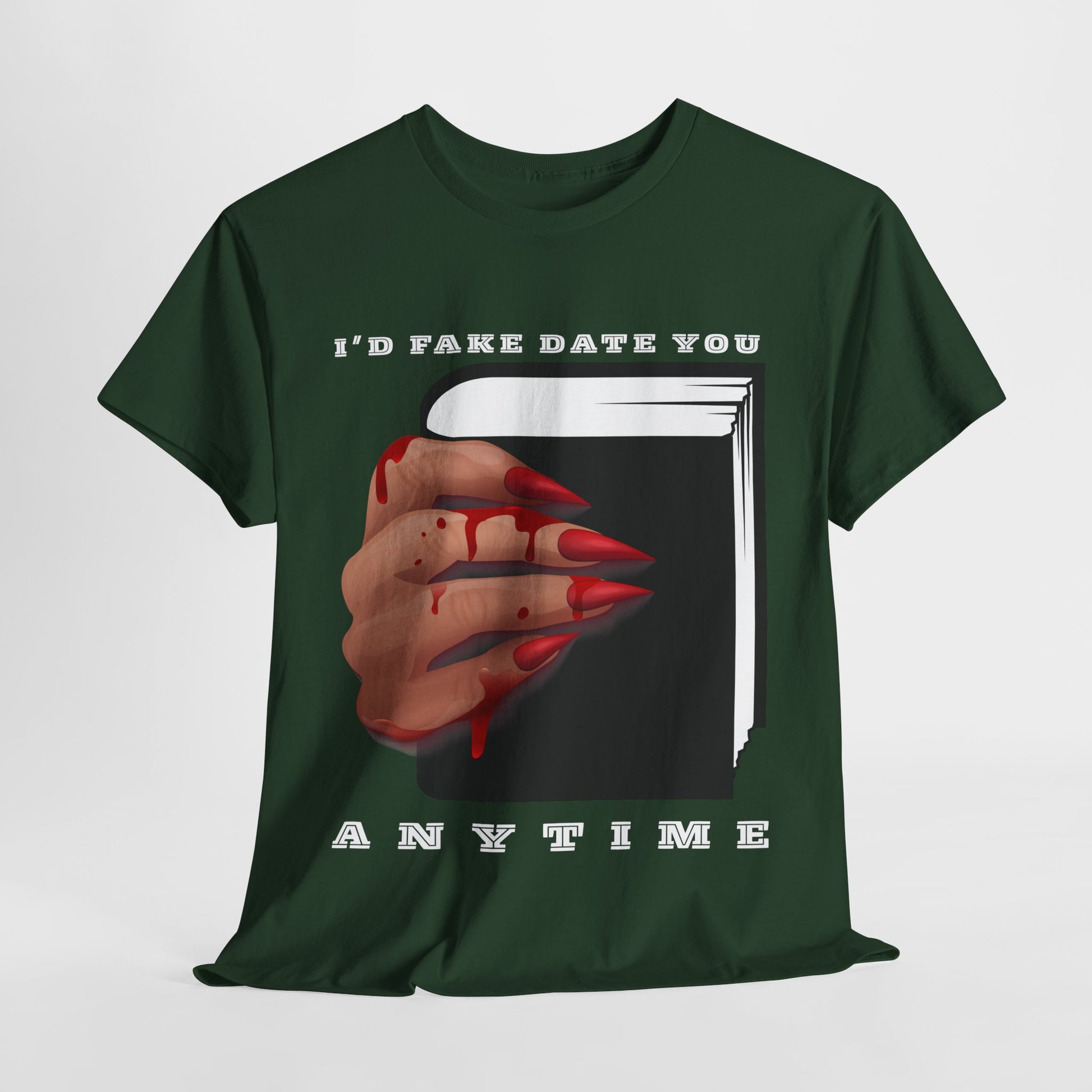 Teen/Adult Unisex “I’d Fake Date You Anytime” Tee – Bookish Banter with a Bloody Twist