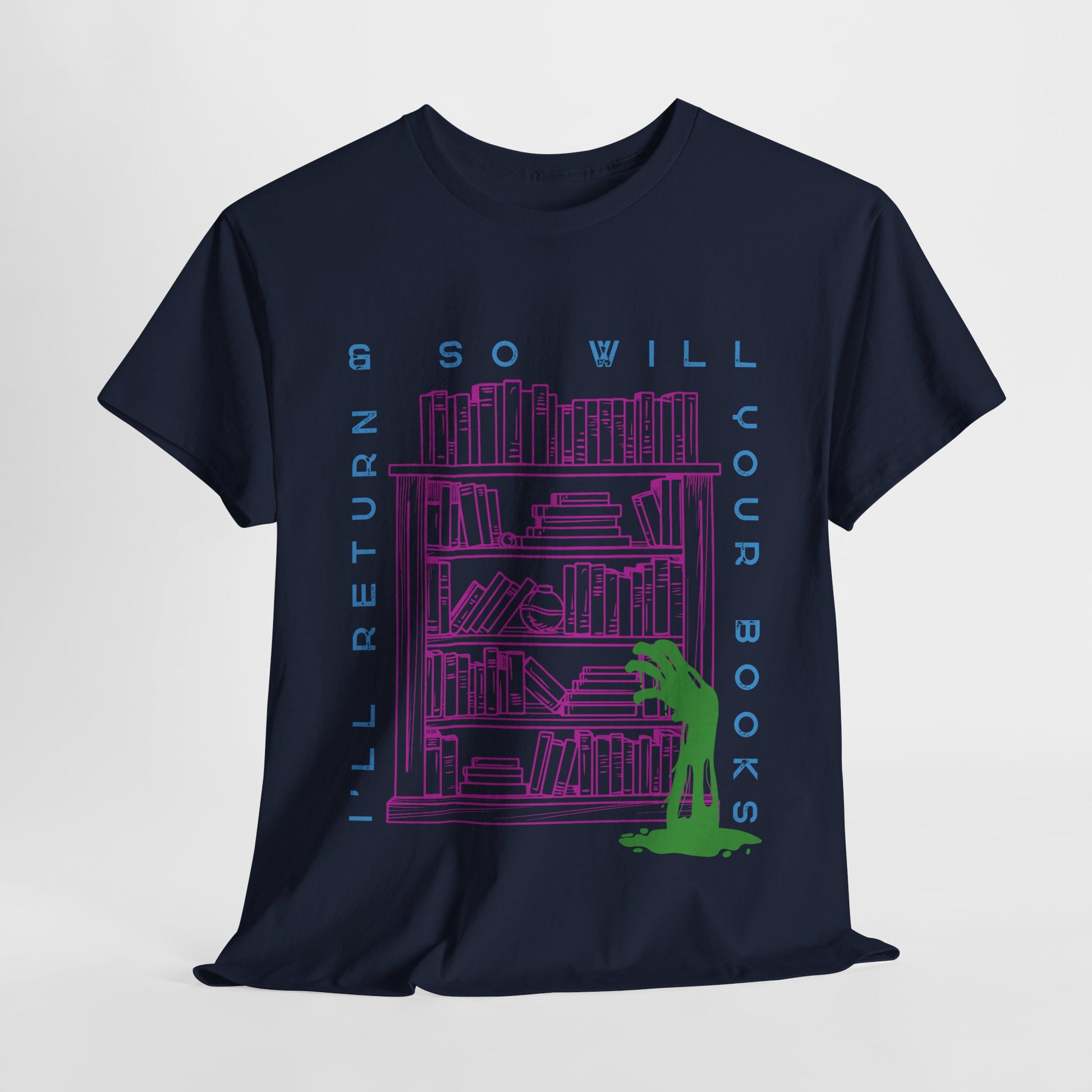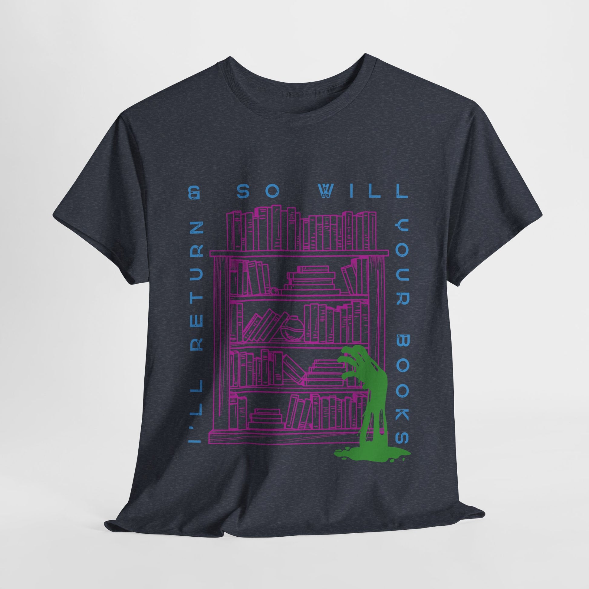 Teen/Adult Unisex I’ll Return & So Will Your Books T-Shirt – Horror Library Graphic Tee