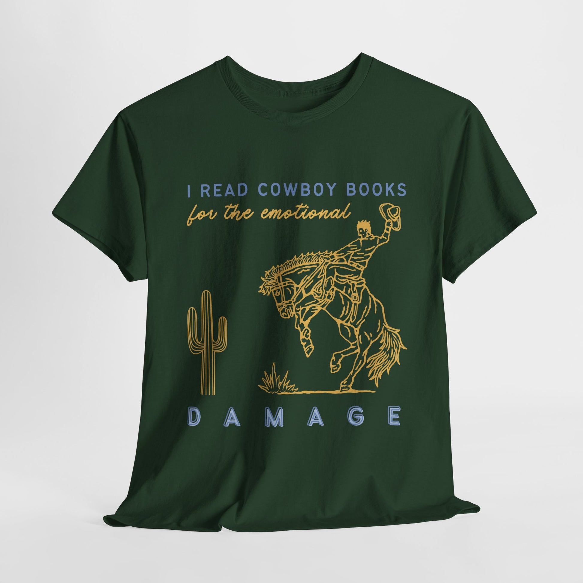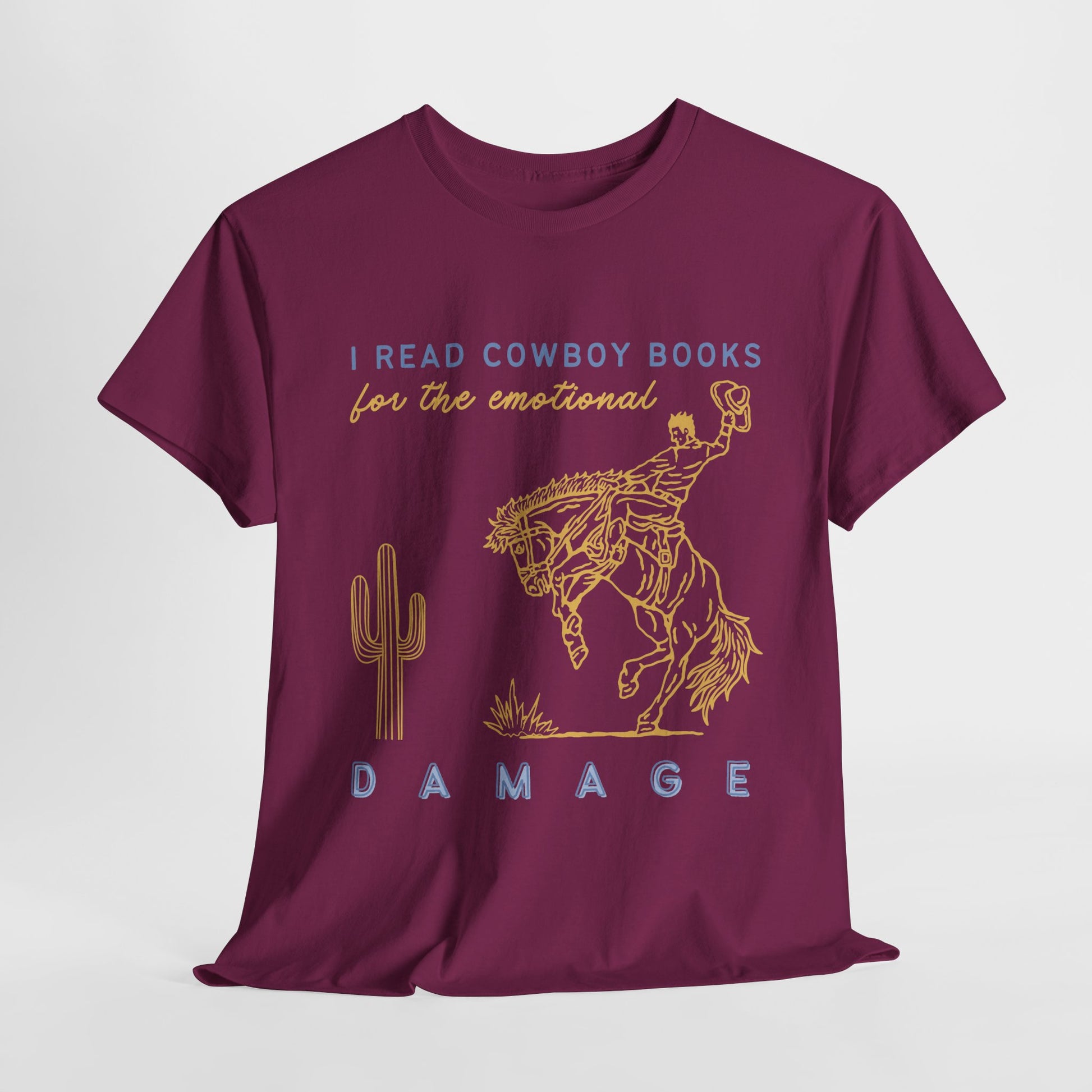 Teen/Adult Unisex – I Read Cowboy Books for the Emotional Damage Tee