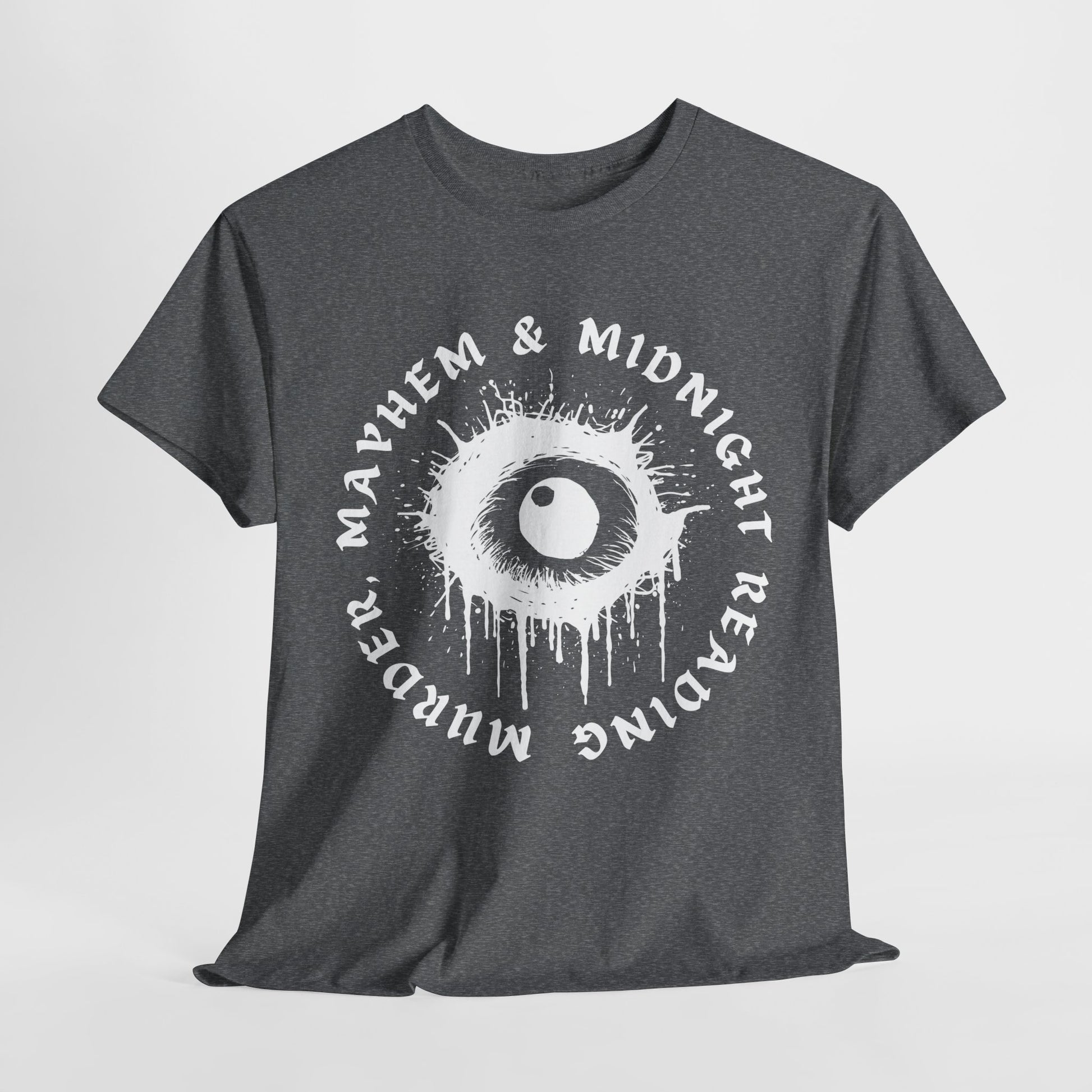 Teen/Adult Unisex Mayhem & Midnight Reading T-Shirt – Horror Eye Graphic Tee