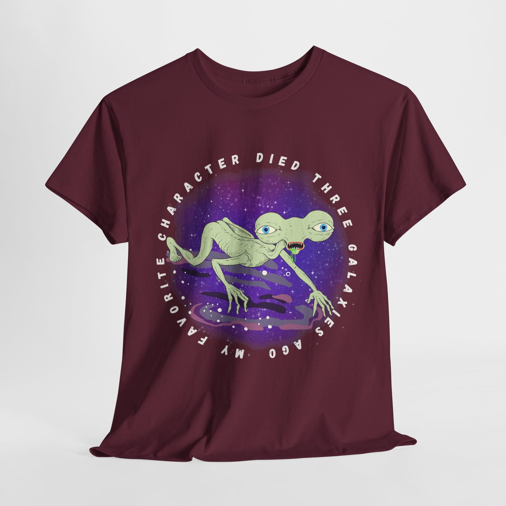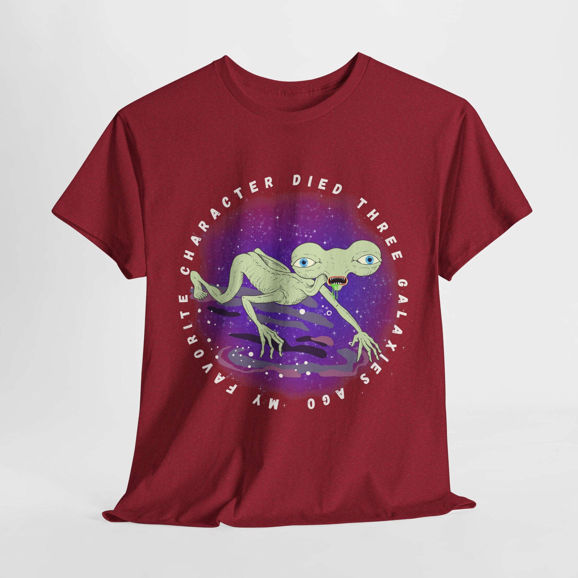 Teen/Adult Unisex “My Favorite Character Died Three Galaxies Ago” Tee – Sci-Fi Grief Club Attire