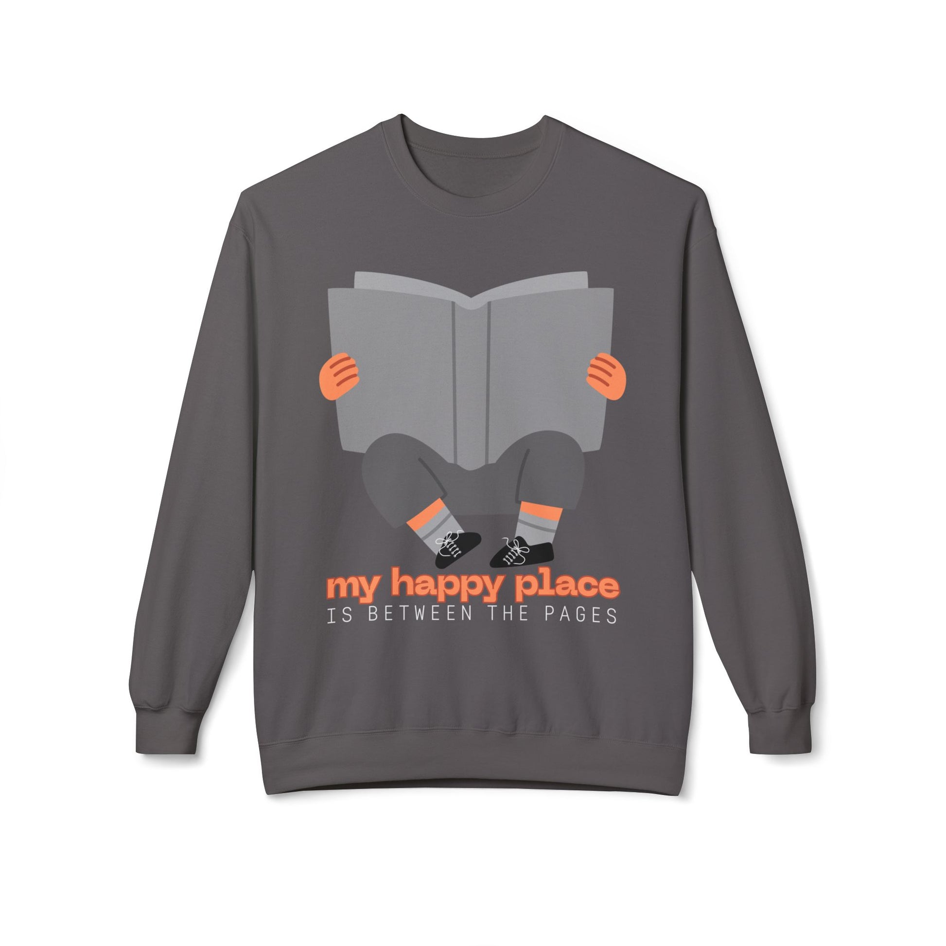 Teen/Adult Unisex My Happy Place Is Between the Pages Sweatshirt – Cozy Book Lover Reading Apparel