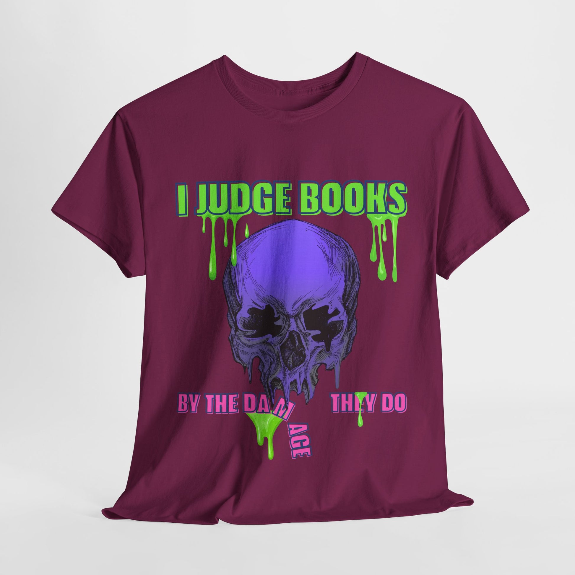 This edgy tee is for readers who crave the ache. A dripping skull reminds us: “I judge books by the damage they do.” A perfect gift for horror fans, dark fiction junkies, and anyone who measures a story by its scars.