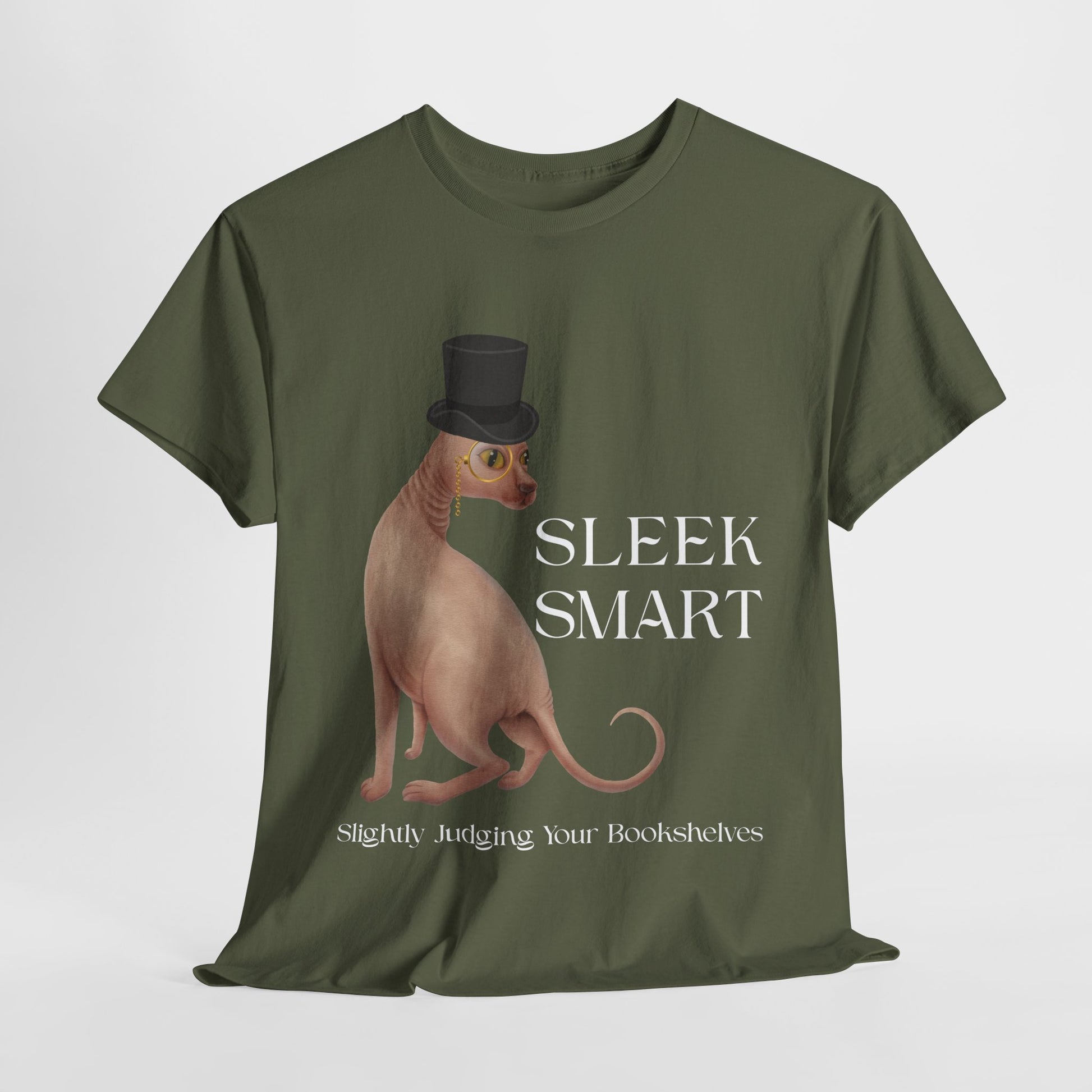 Teen/Adult Unisex Sleek Smart Tee – For Bookish Minds with Feline Taste