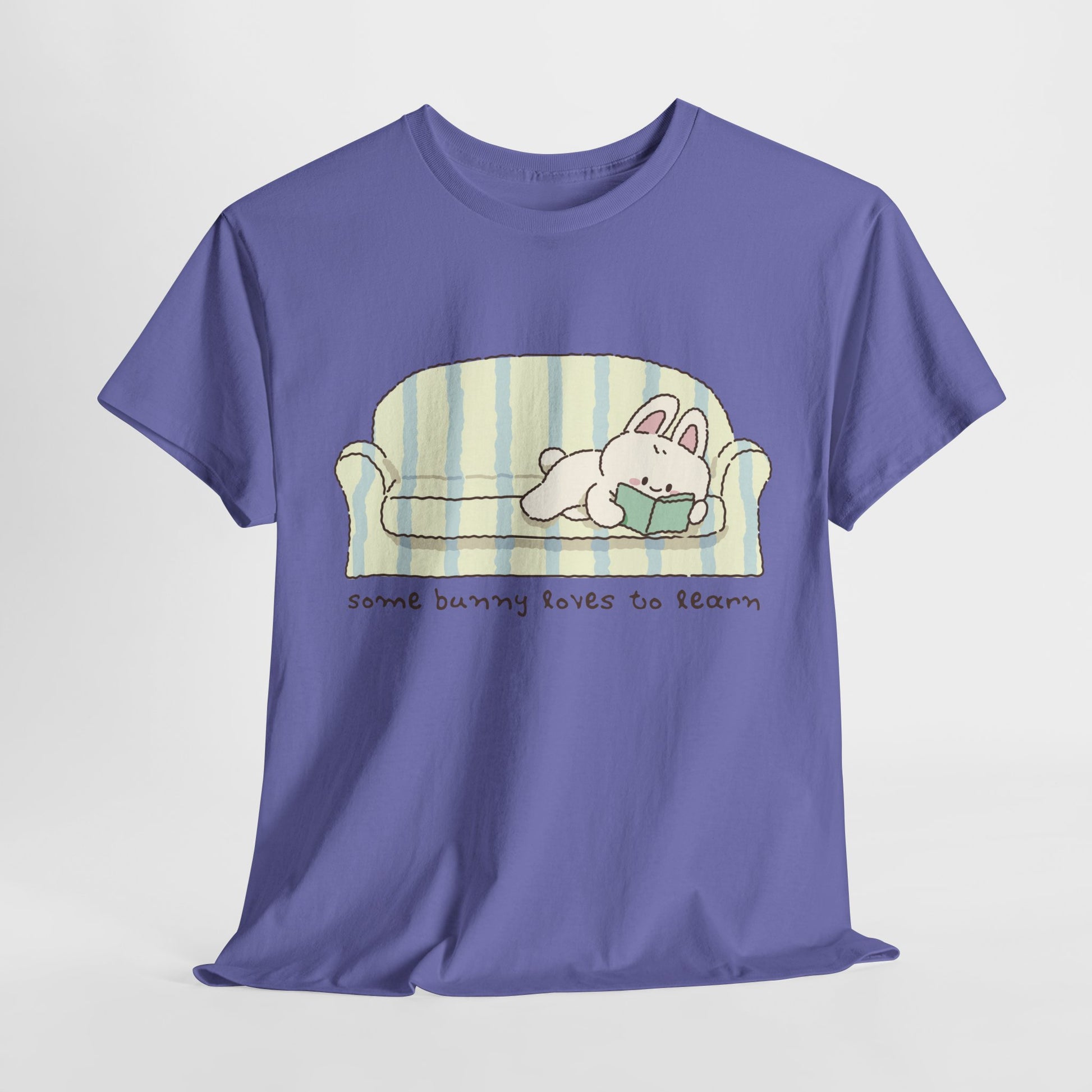 Teen/Adult Unisex “Some Bunny Loves to Learn” Reading Rabbit Tee – Cozy Book Lover Gift