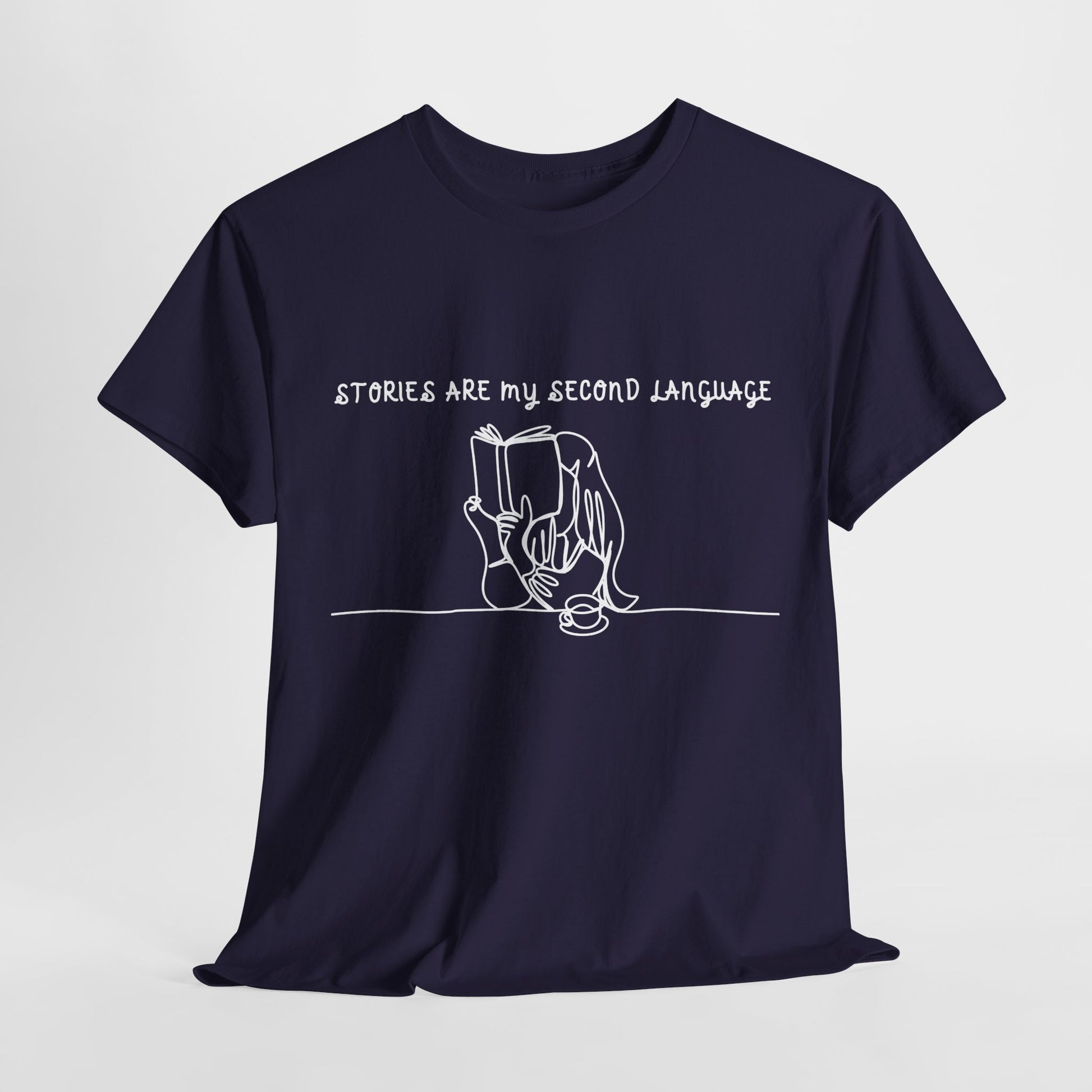 Teen/Adult Unisex Stories Are My Second Language Tee – For Readers Who Speak Book