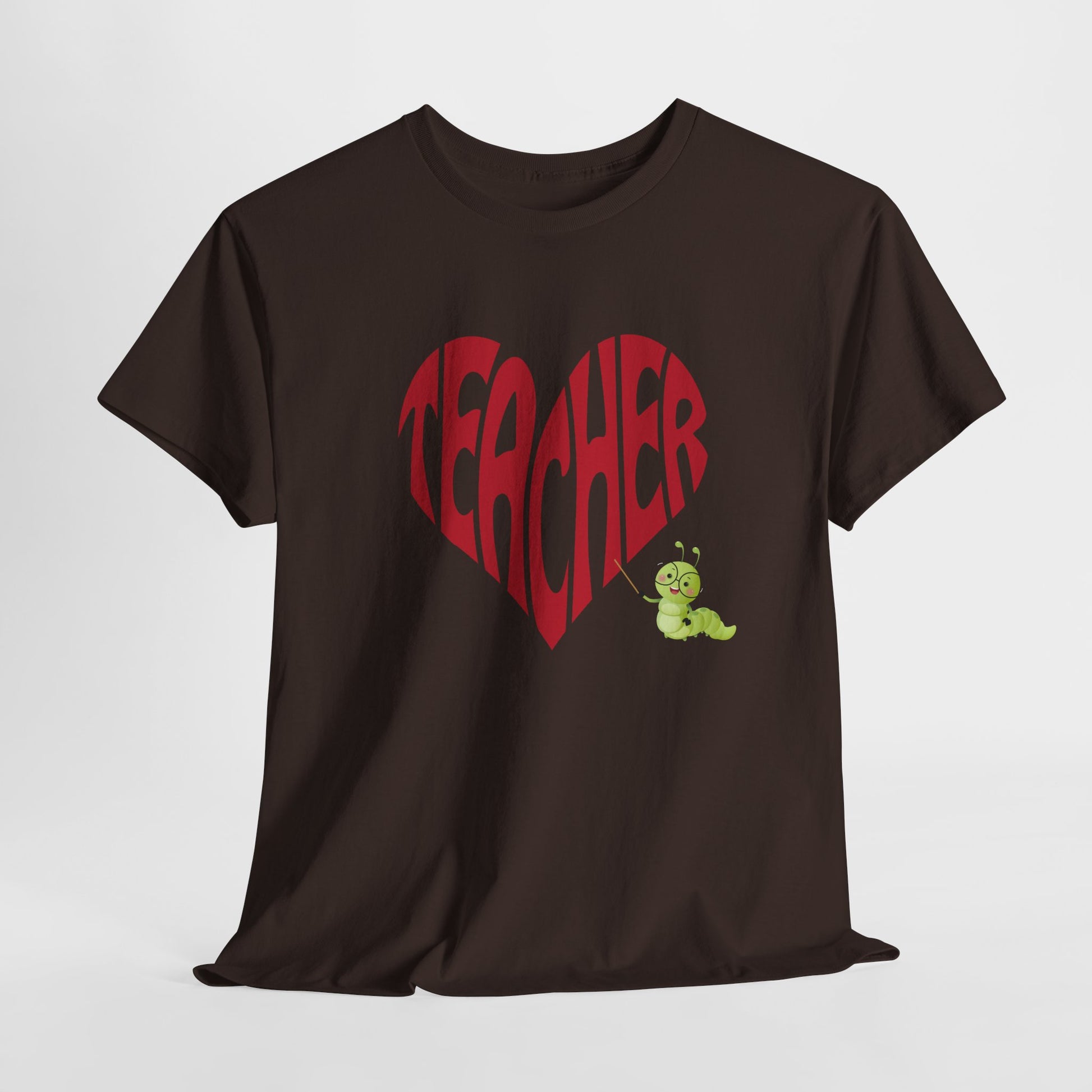 ❤️ This playful unisex tee features the word “Teacher” shaped into a bold red heart, with a friendly green bookworm adding an extra dash of charm. Whether you’re reading stories to little ones or guiding older students, this shirt celebrates your big heart and love for learning. Great for casual Fridays, book fairs, or as a thoughtful teacher gift, it pairs perfectly with your favorite jeans and a classroom full of curiosity.