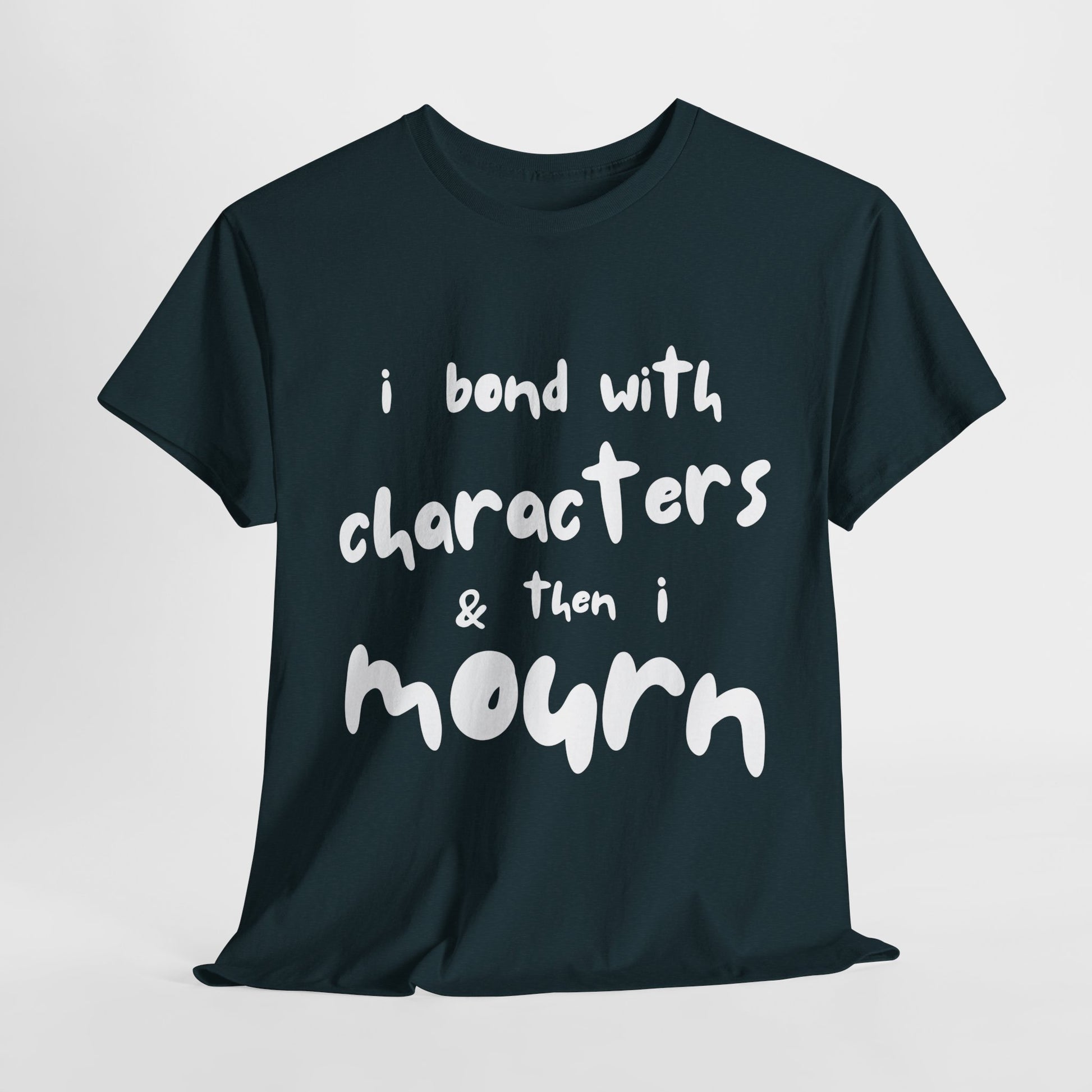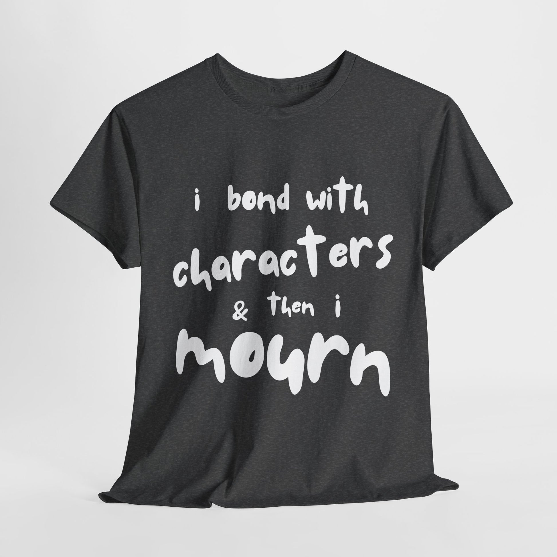 Teen/Adult Unisex Tee – I Bond With Characters & Then I Mourn (Word Edition)