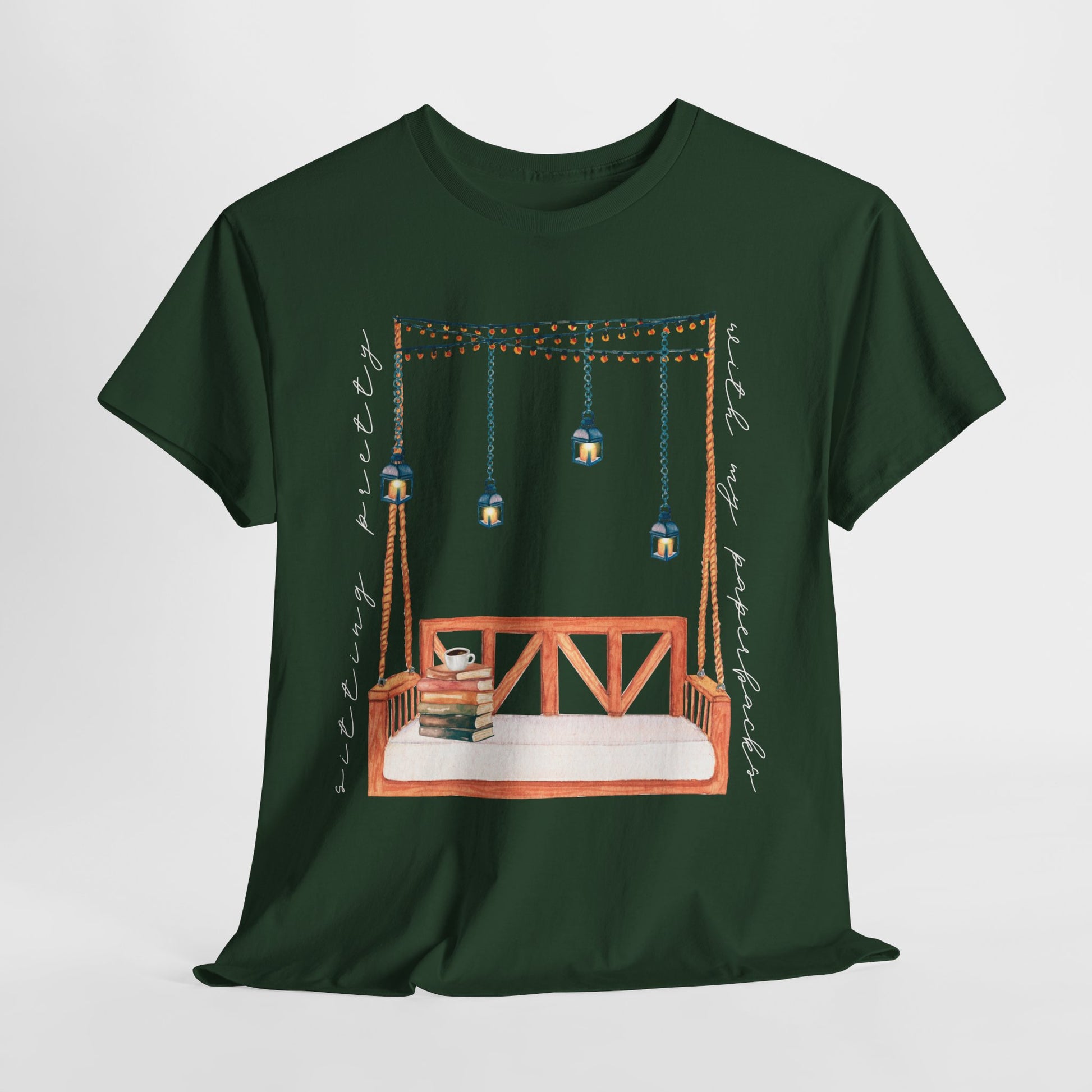 ππβ¨ This tee feels like a front-porch evening β the swing swaying gently, crickets chirping, and a cool breeze while you get lost in your favorite paperback. With its warm southern charm and cozy design, itβs perfect for readers who love slow nights, good stories, and the simple joy of sitting pretty with a book in hand. Ideal for summer evenings, porch swings, and anyone who believes paperbacks pair best with a quiet night under the stars.