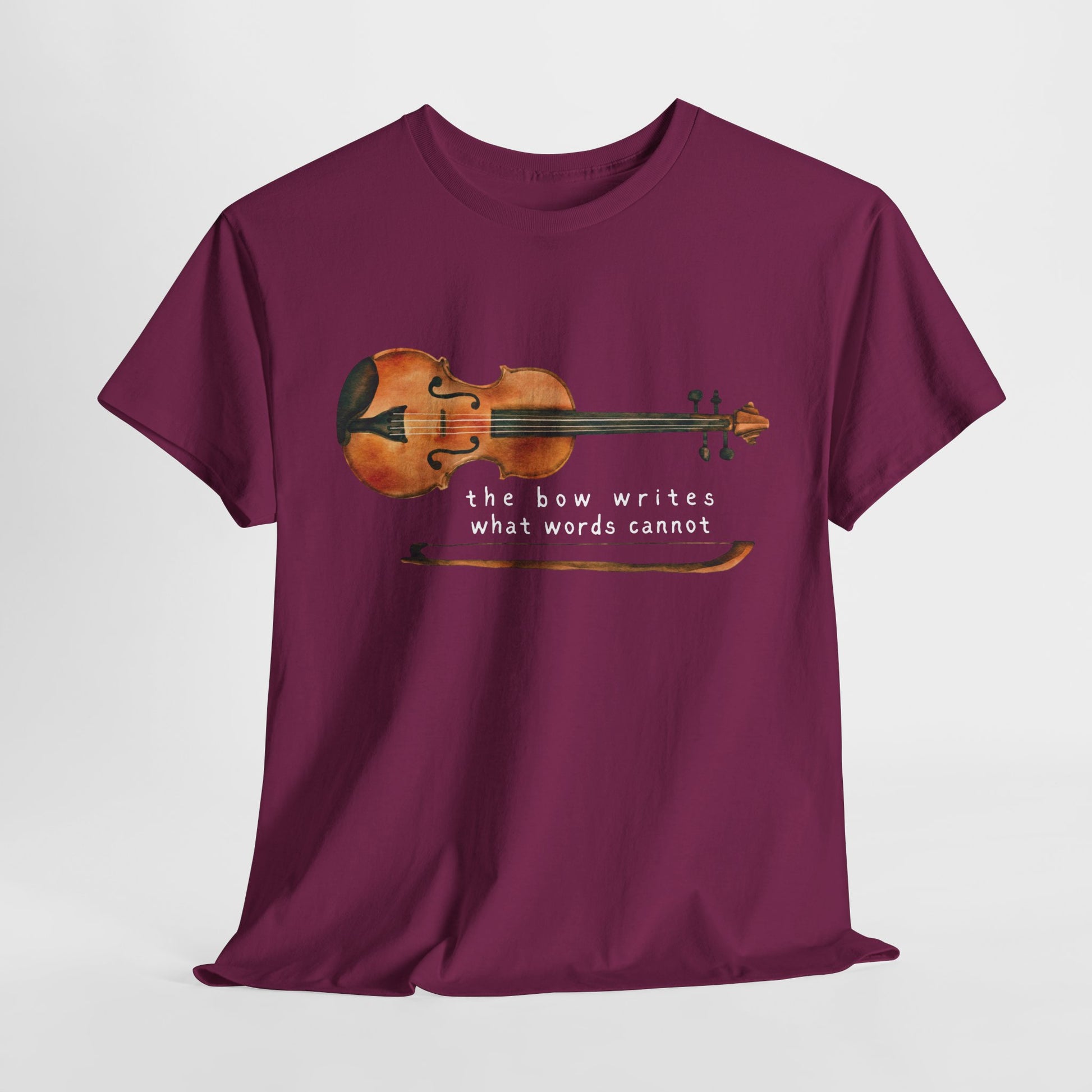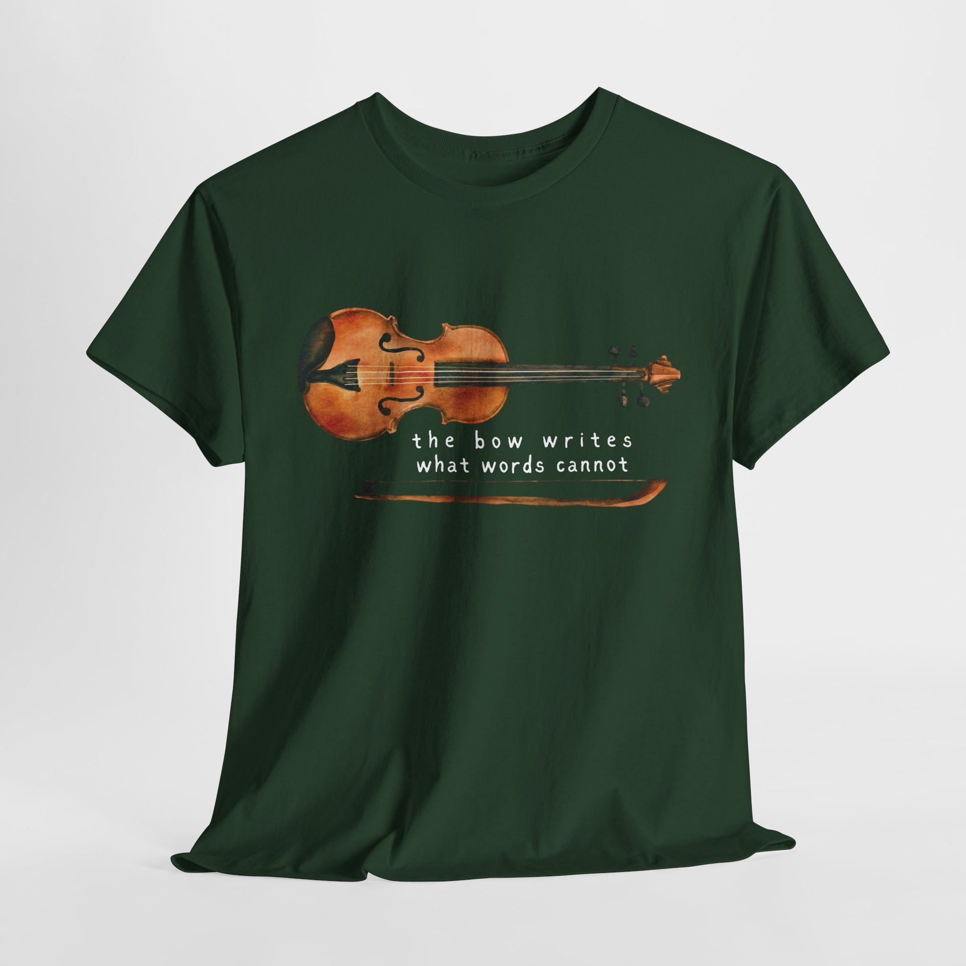 🎻📝💫 Where language ends, music begins. This Unisex Heavy Cotton Tee features a hand-painted violin and the evocative phrase “the bow writes what words cannot.” Designed for musicians, storytellers, and quiet feelers, it captures the powerful connection between emotion and art. A moving gift for orchestra members, music teachers, or anyone who finds their voice through strings and silence.