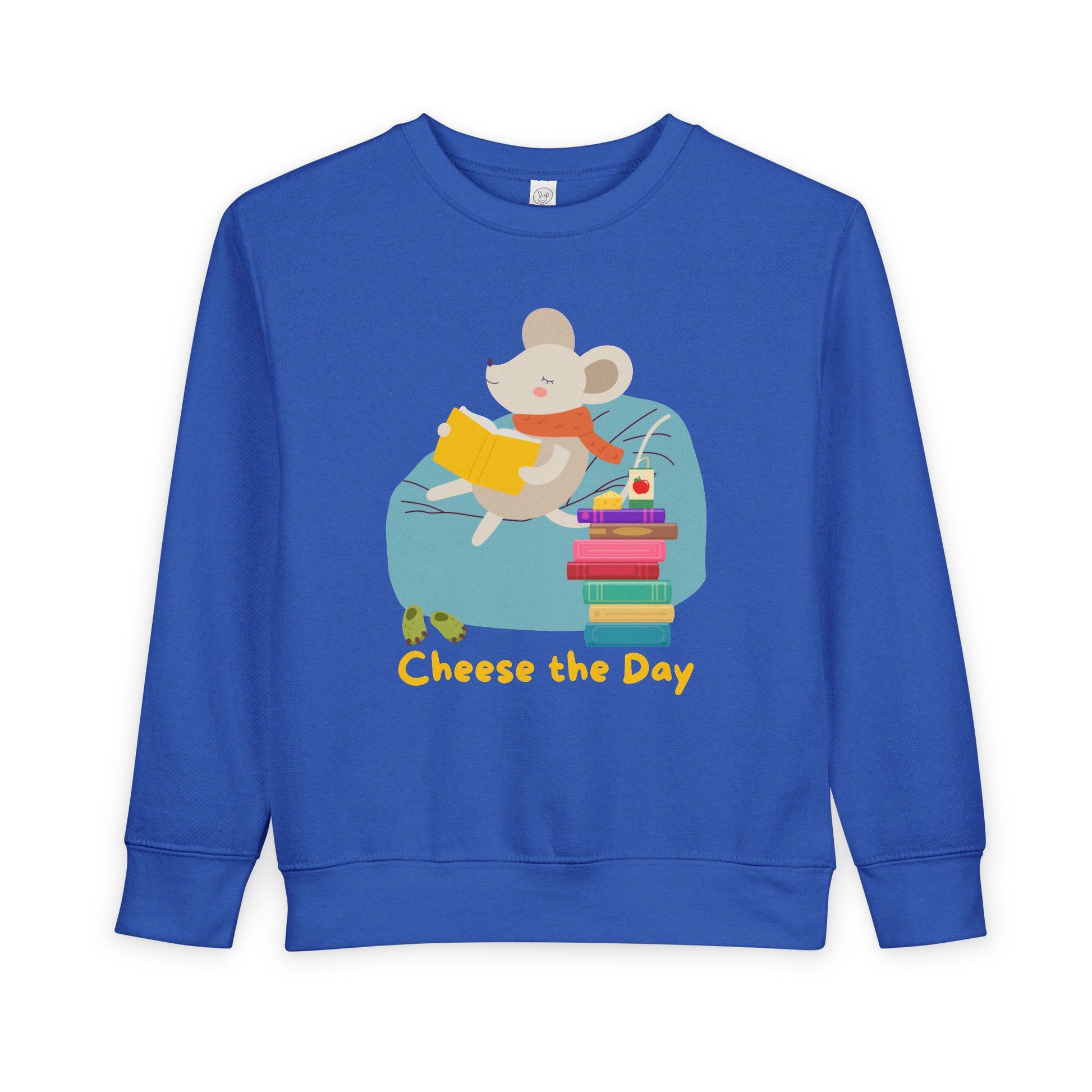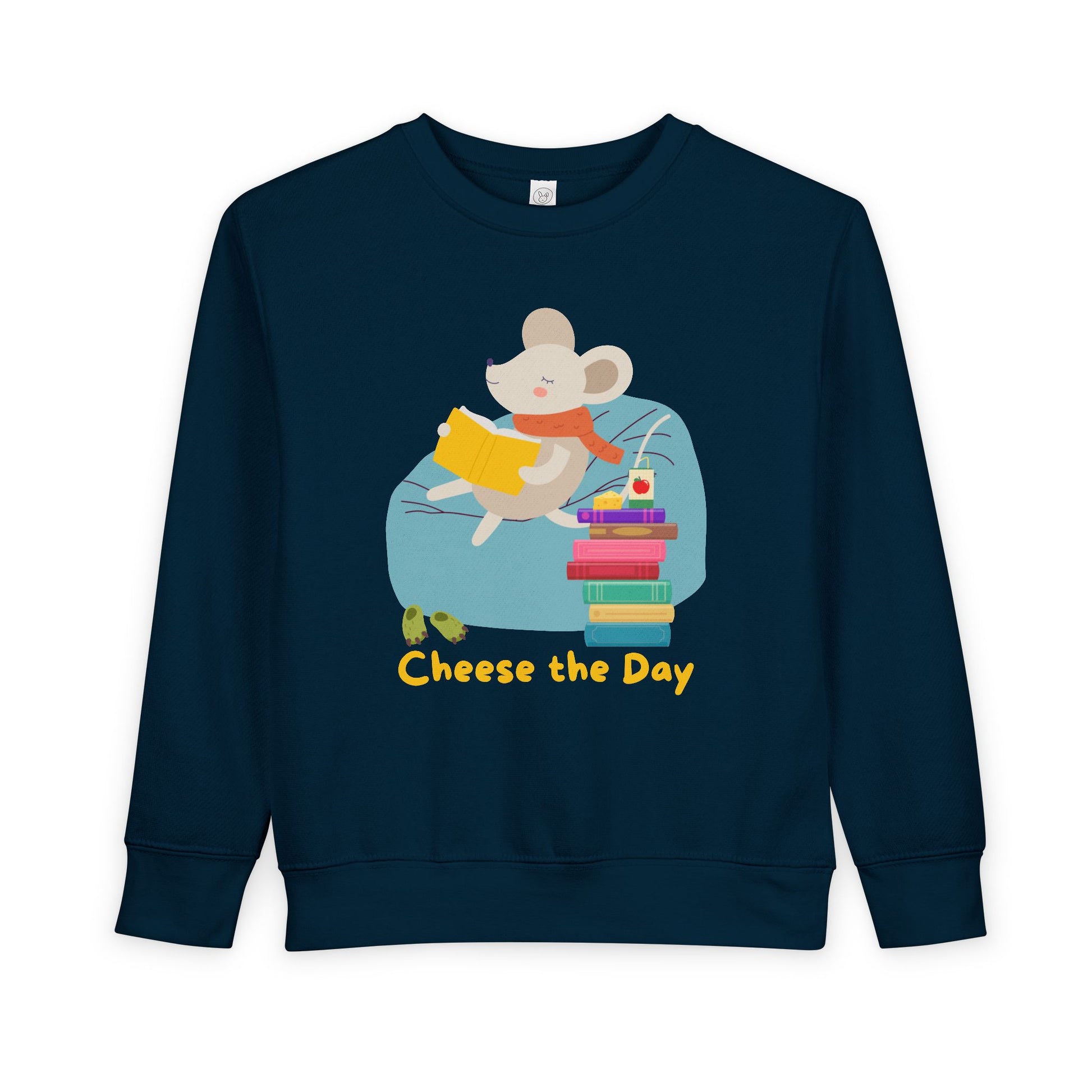 Toddler Cheese the Day Sweatshirt β Adorable Mouse Reading Crewneck for Little Bookworms