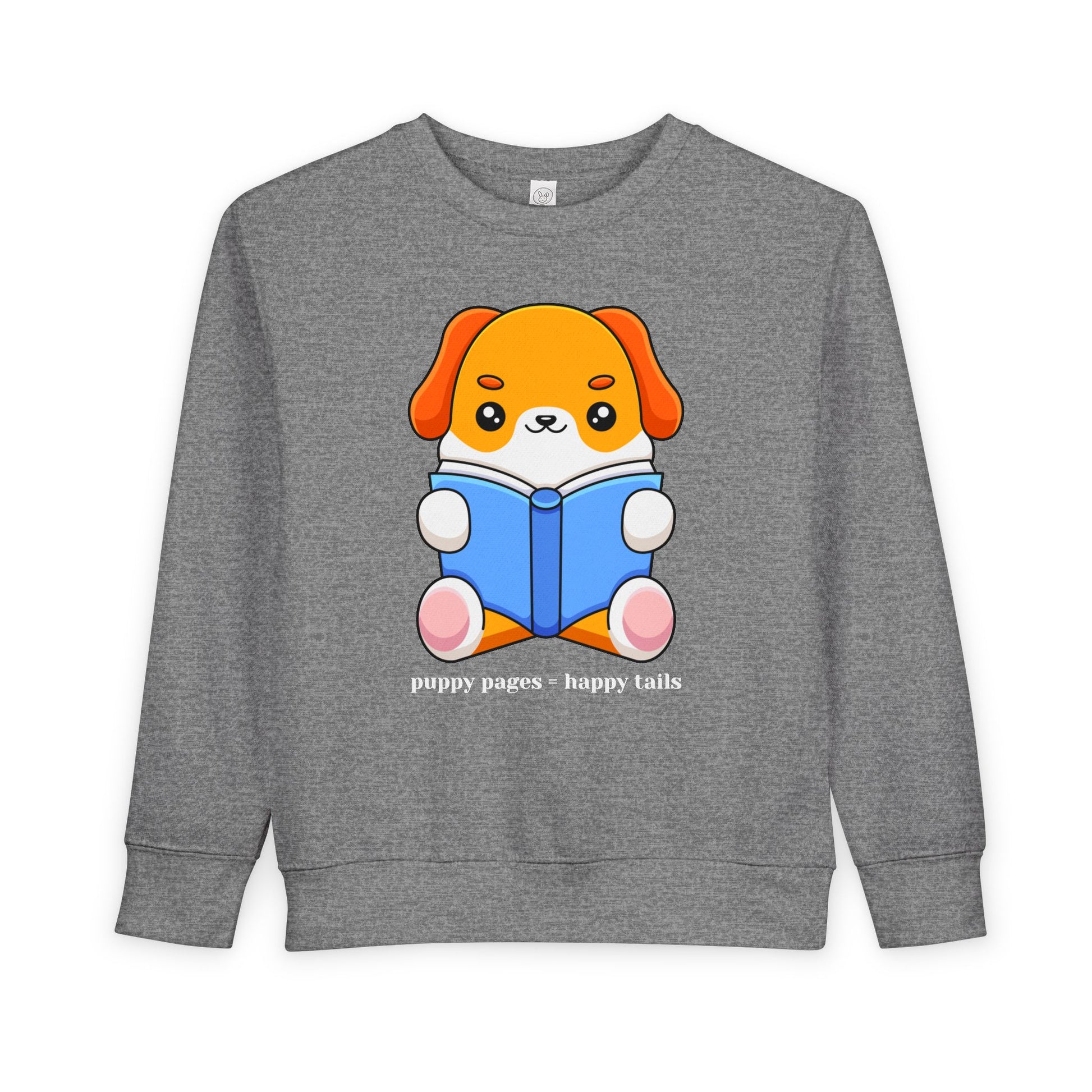 Toddler Puppy Pages = Happy Tails Sweatshirt โ Cute Dog Reading Crewneck for Little Book Lovers