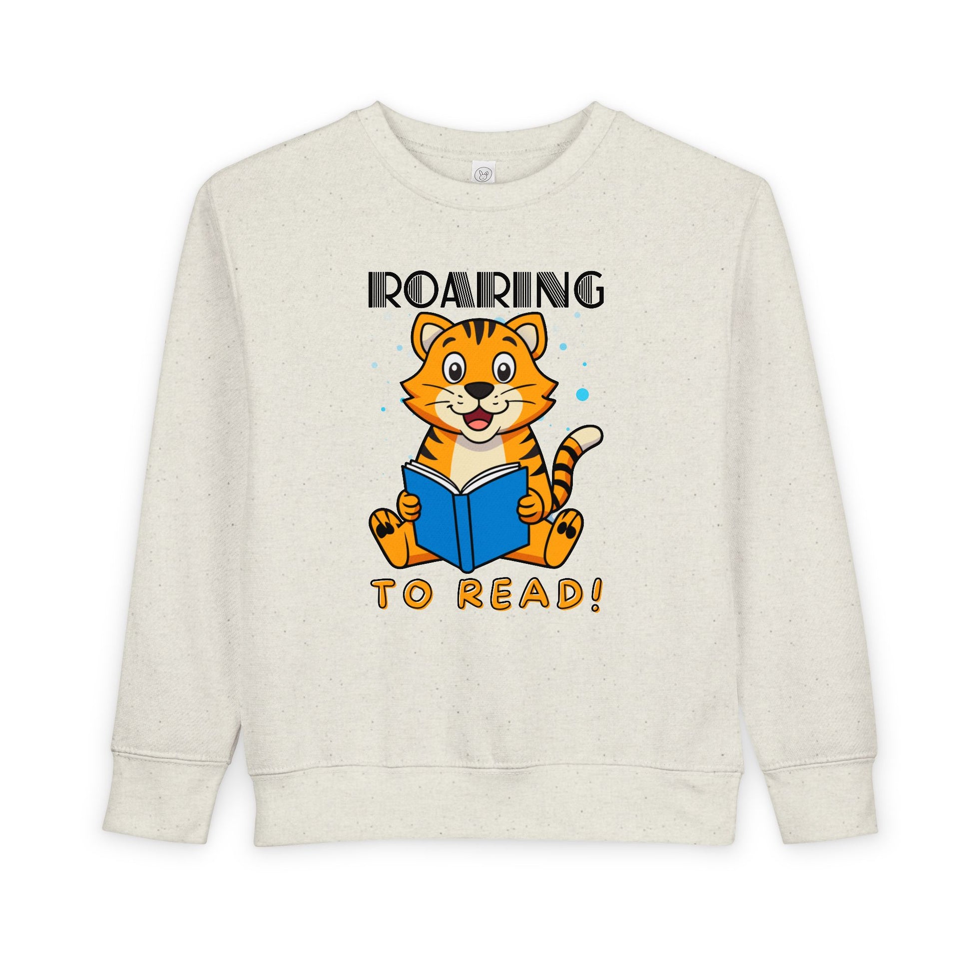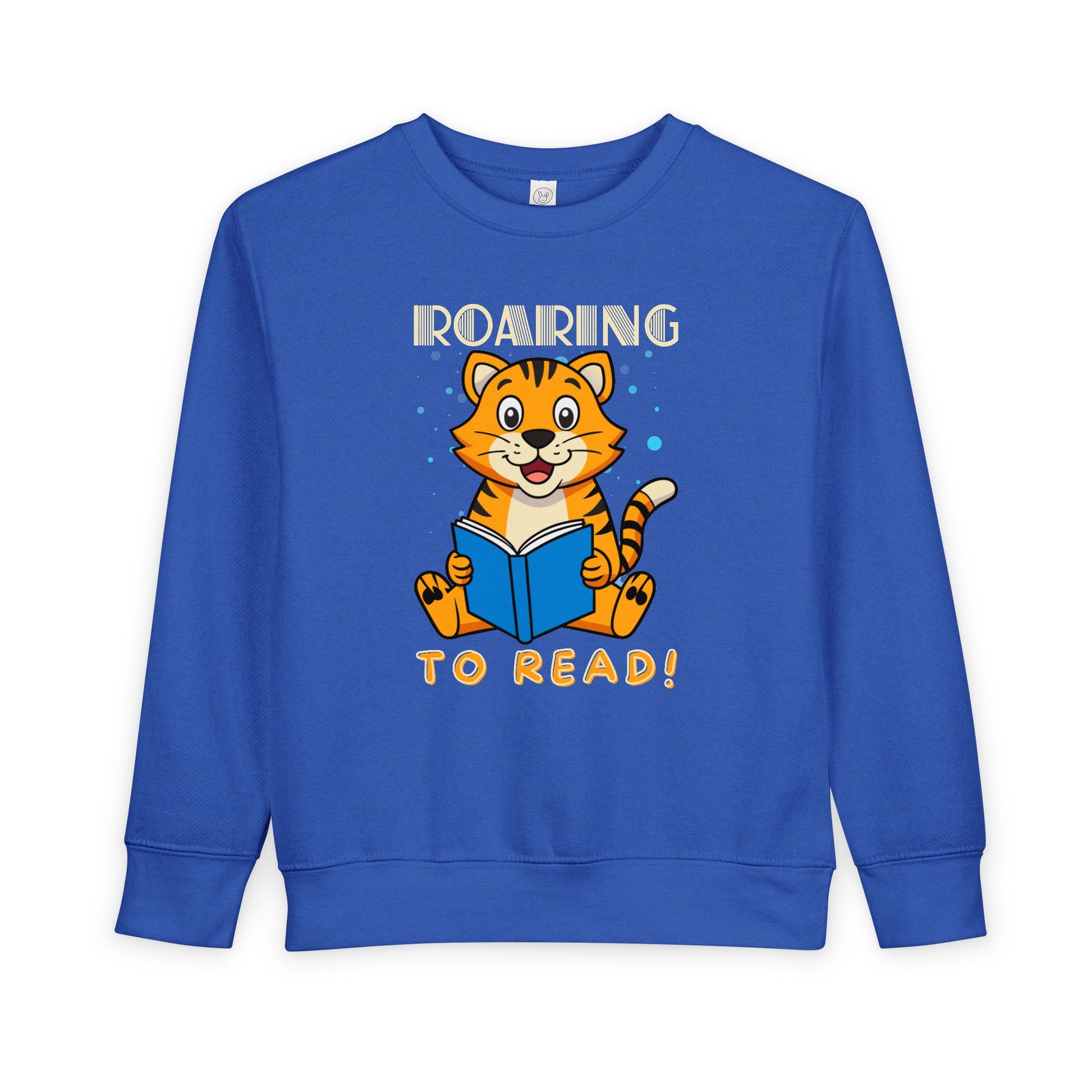 Toddler Roaring to Read Sweatshirt β Cute Tiger Reading Crewneck for Little Book Lovers