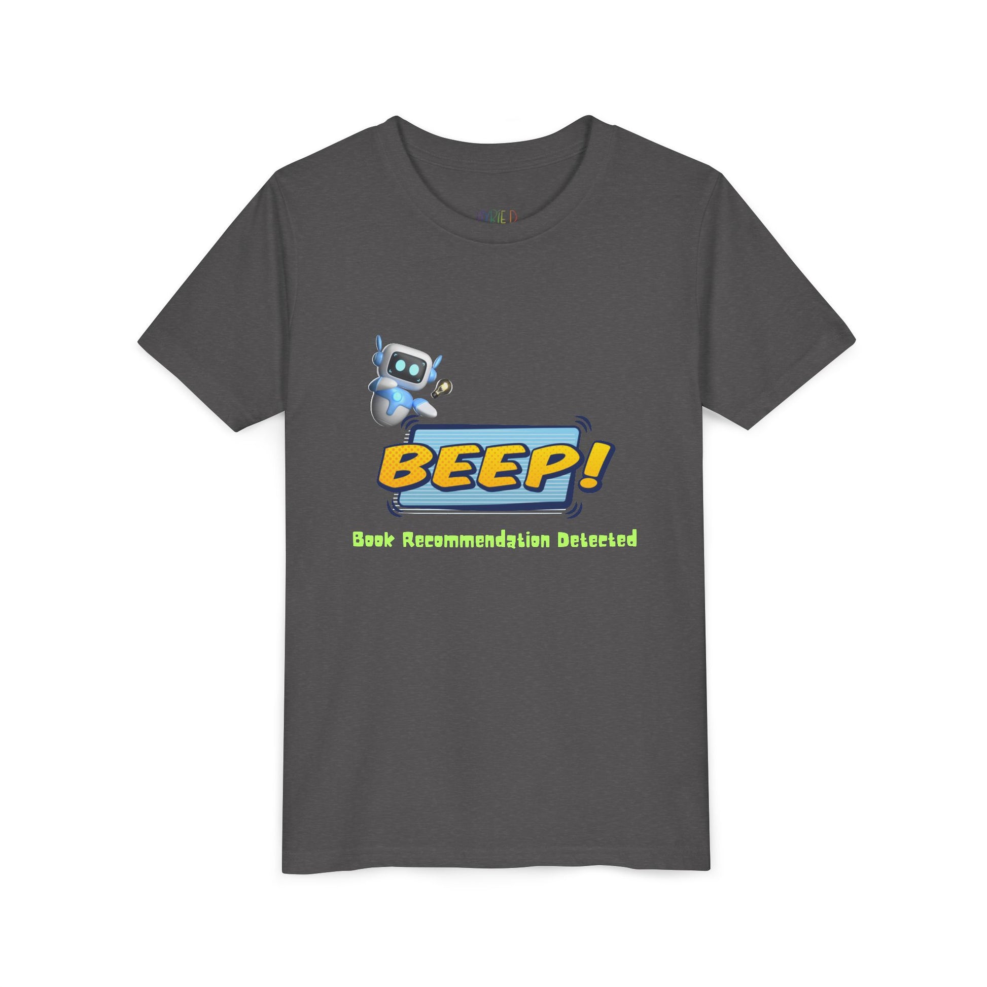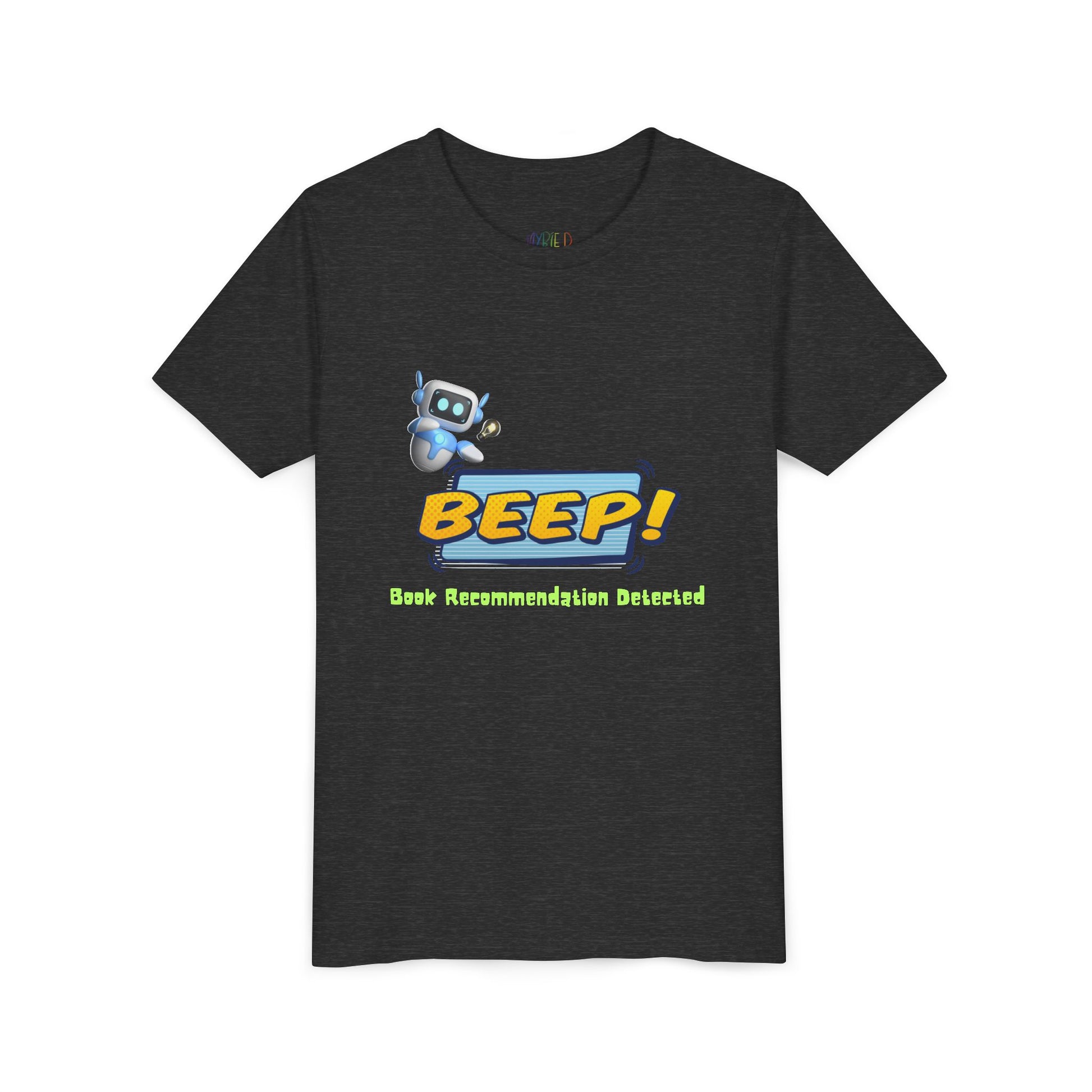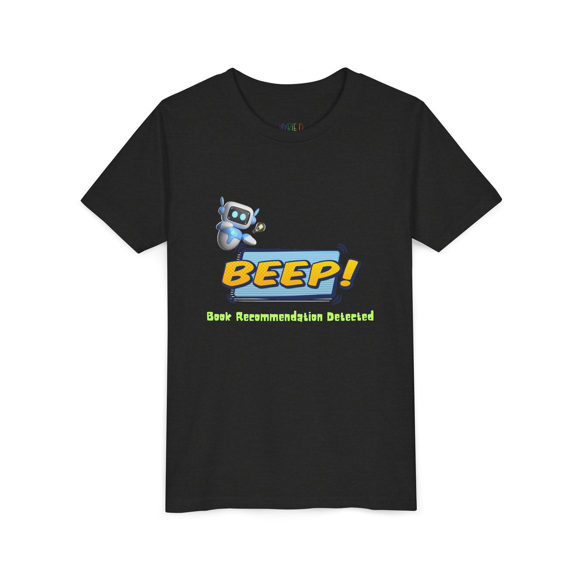 Youth BEEP! Tee – Book Recommendation Detected, Robot-Approved Reads, Perfect for young readers with high-tech taste and top-tier book picks.
