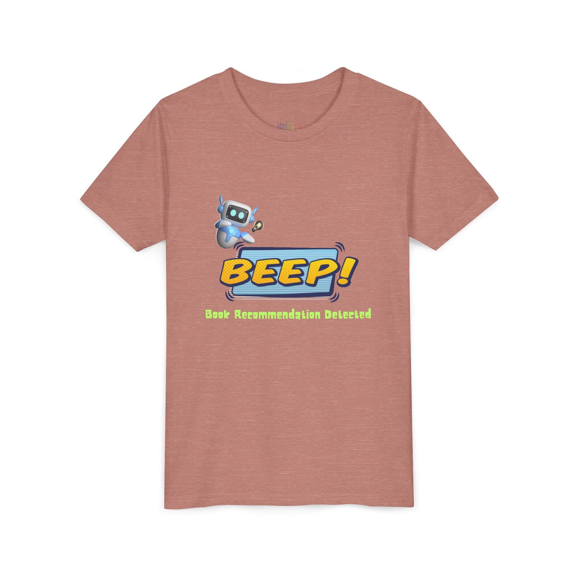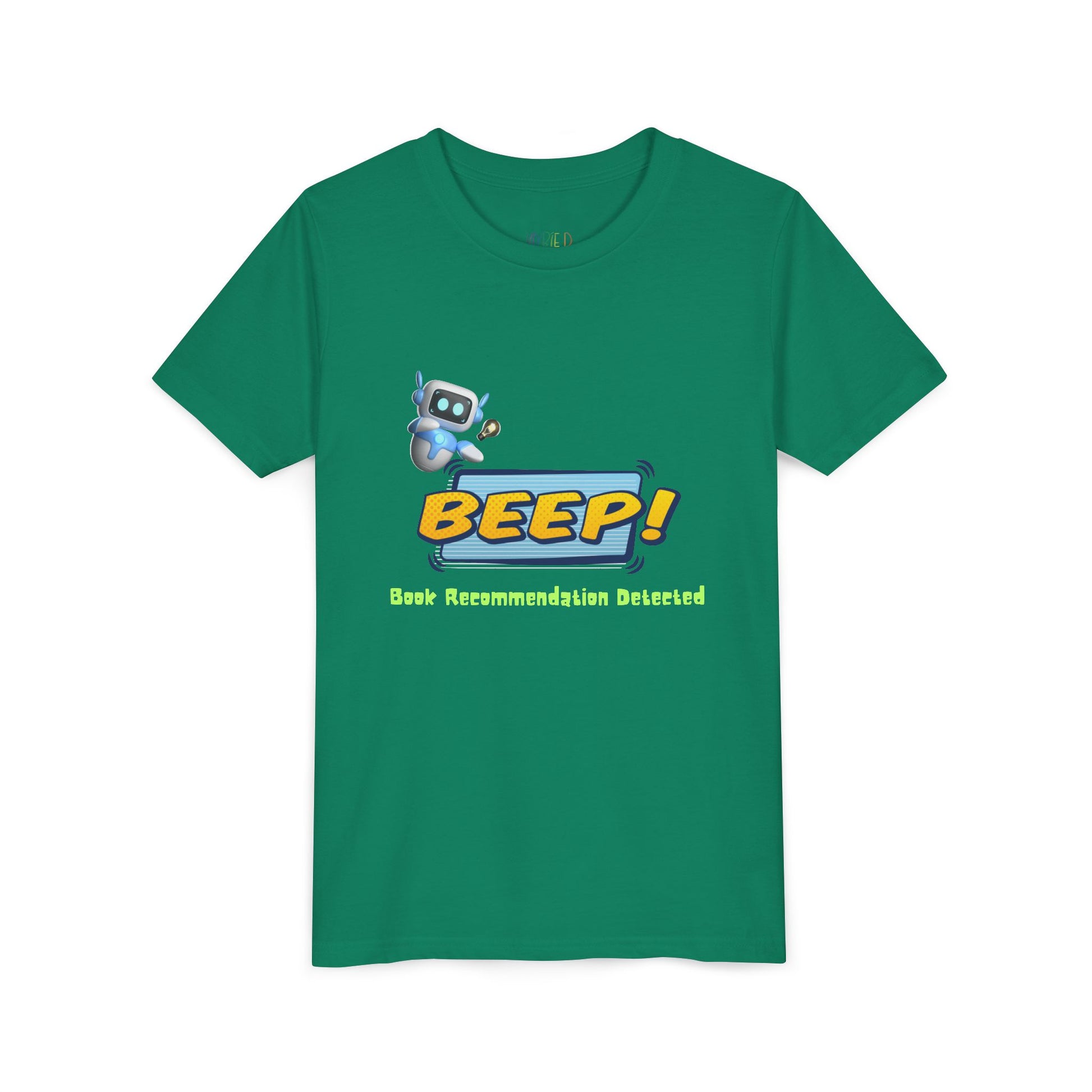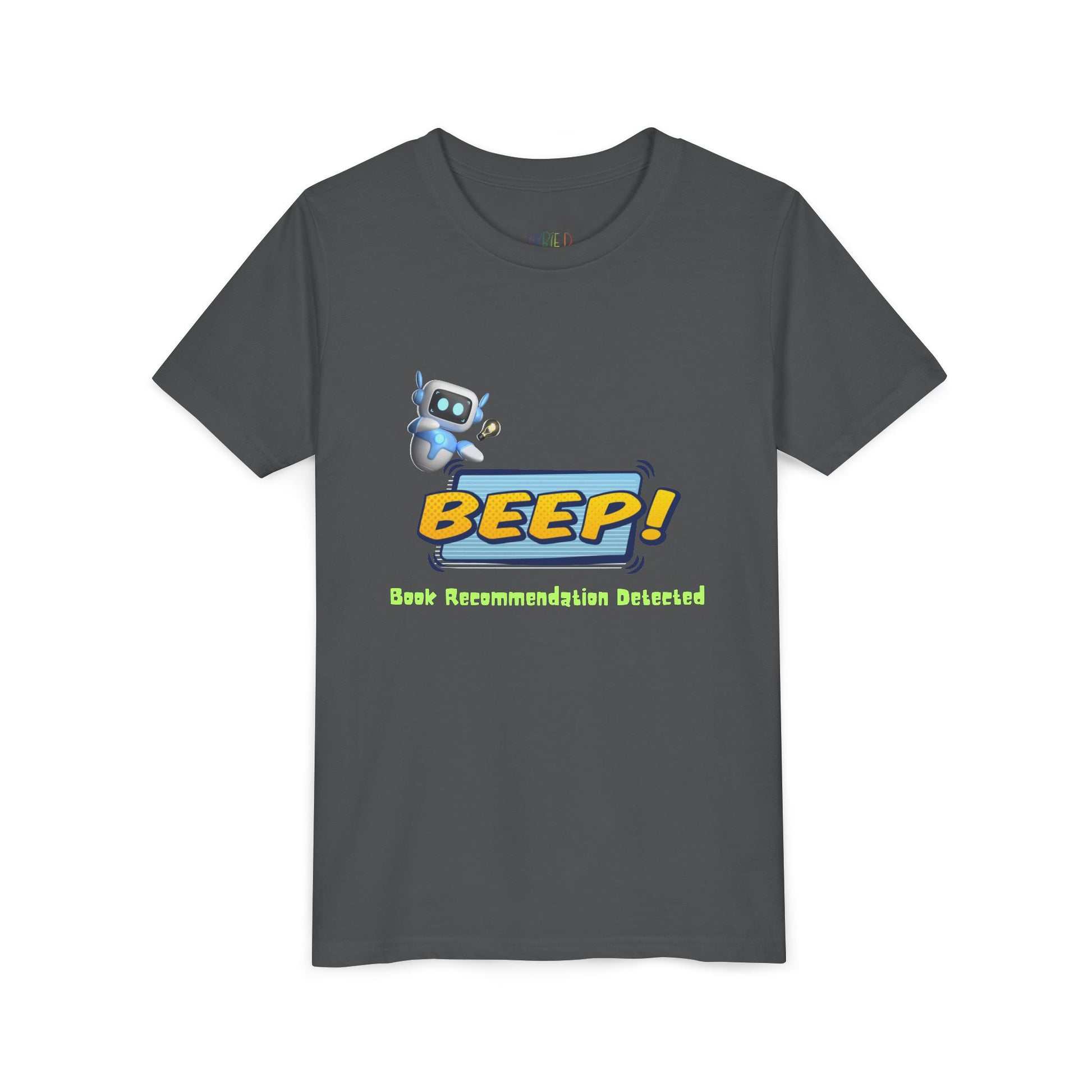 Youth BEEP! Tee – Book Recommendation Detected, Robot-Approved Reads, Perfect for young readers with high-tech taste and top-tier book picks.