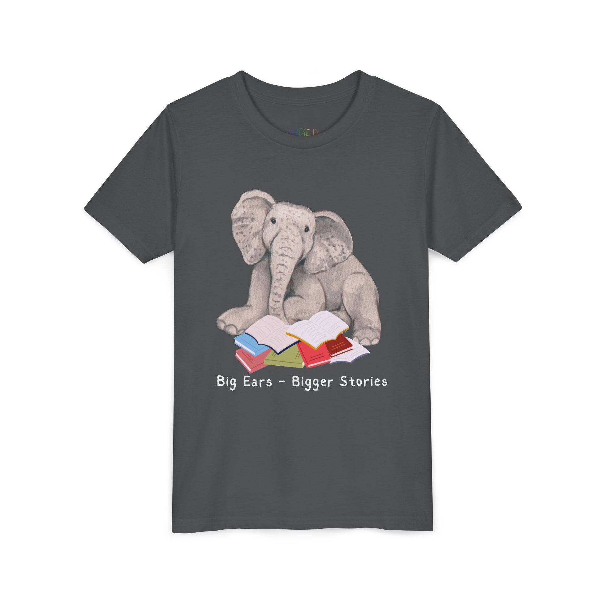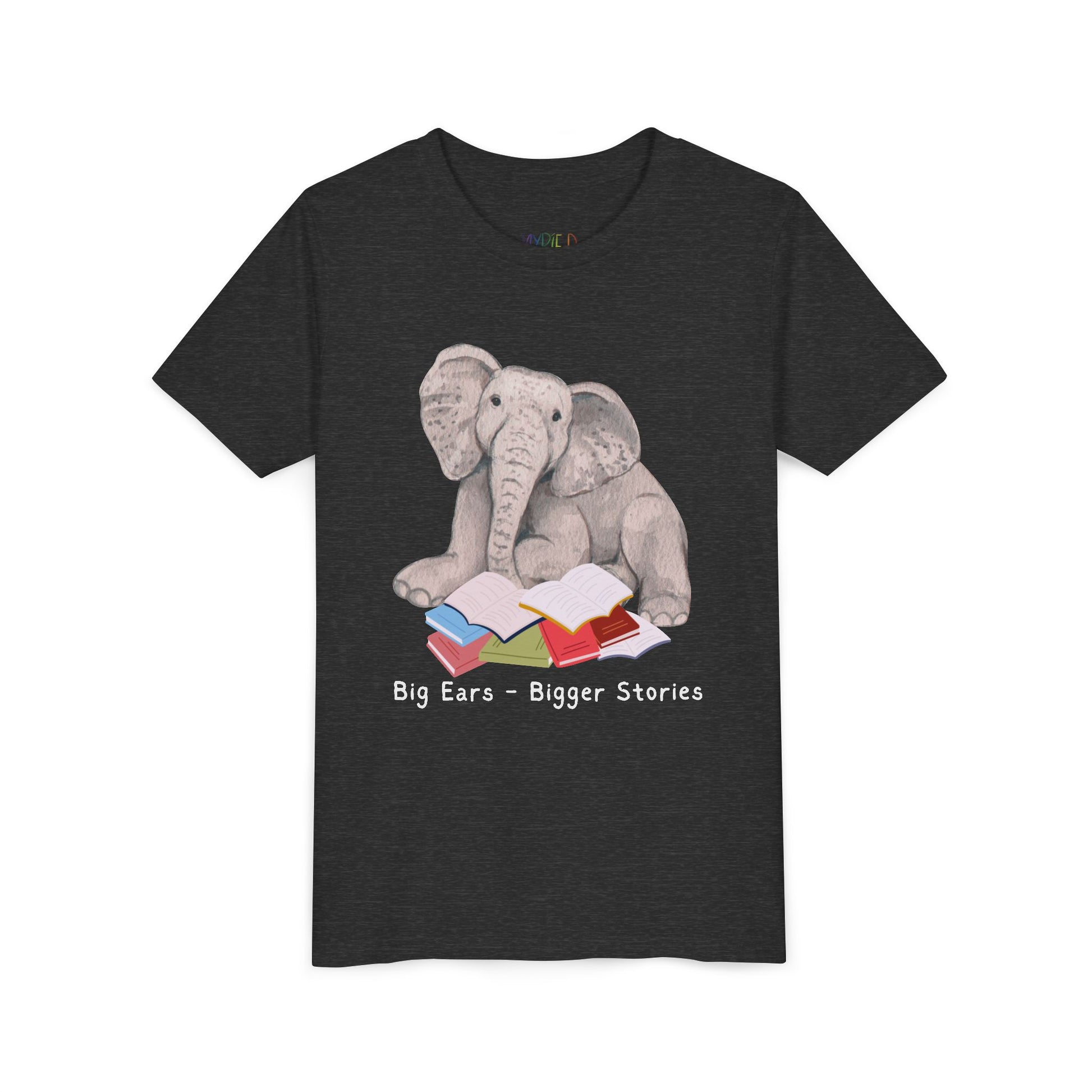 Youth Big Ears β Bigger Stories Tee β Elephant Reading Shirt for Thoughtful Little Listeners