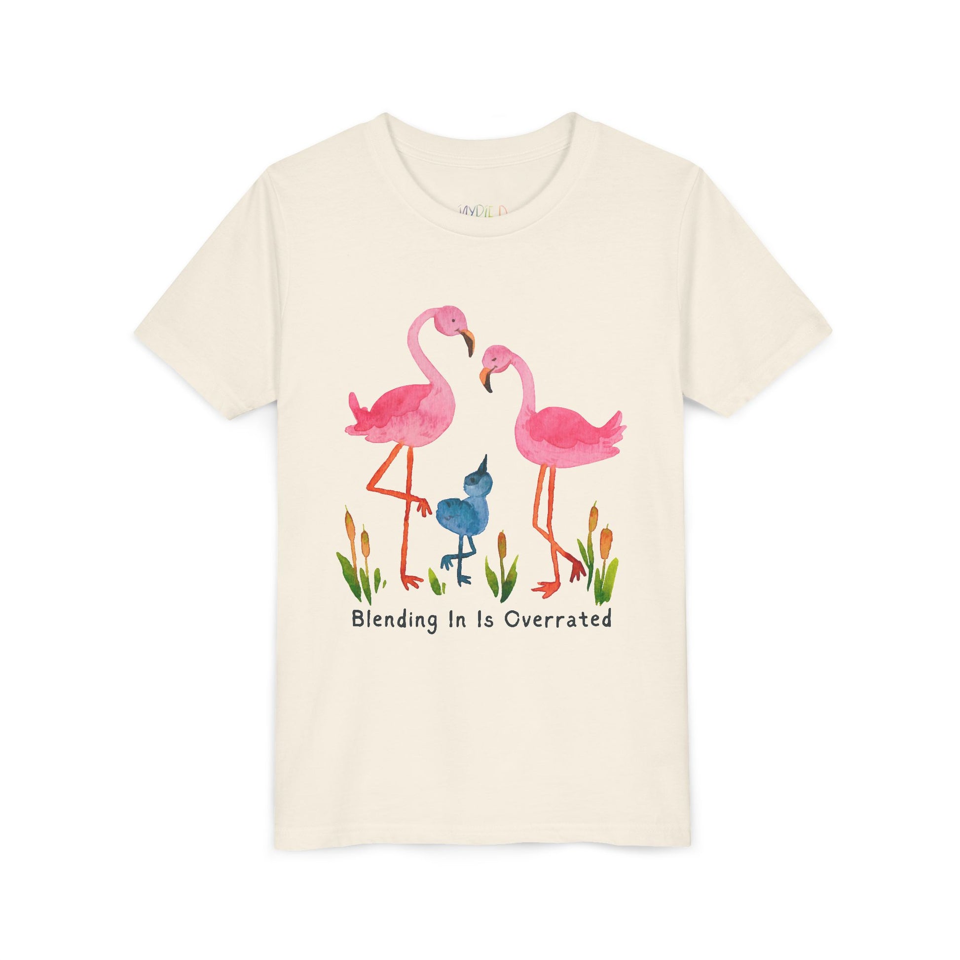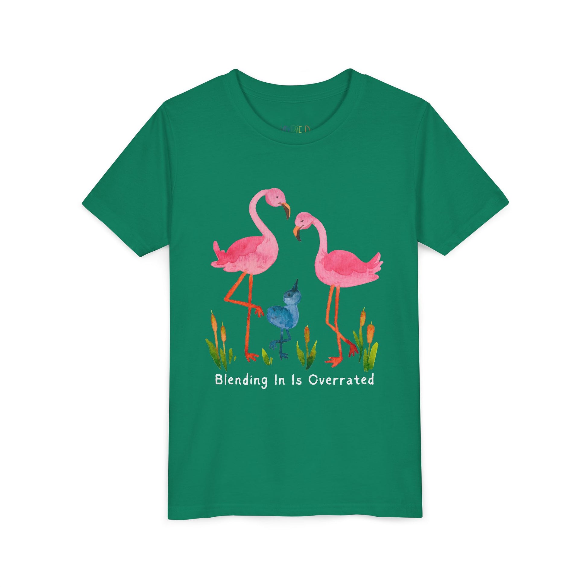 Youth Blending In Is Overrated Tee – Standout Flamingo Shirt for Bold Young Readers