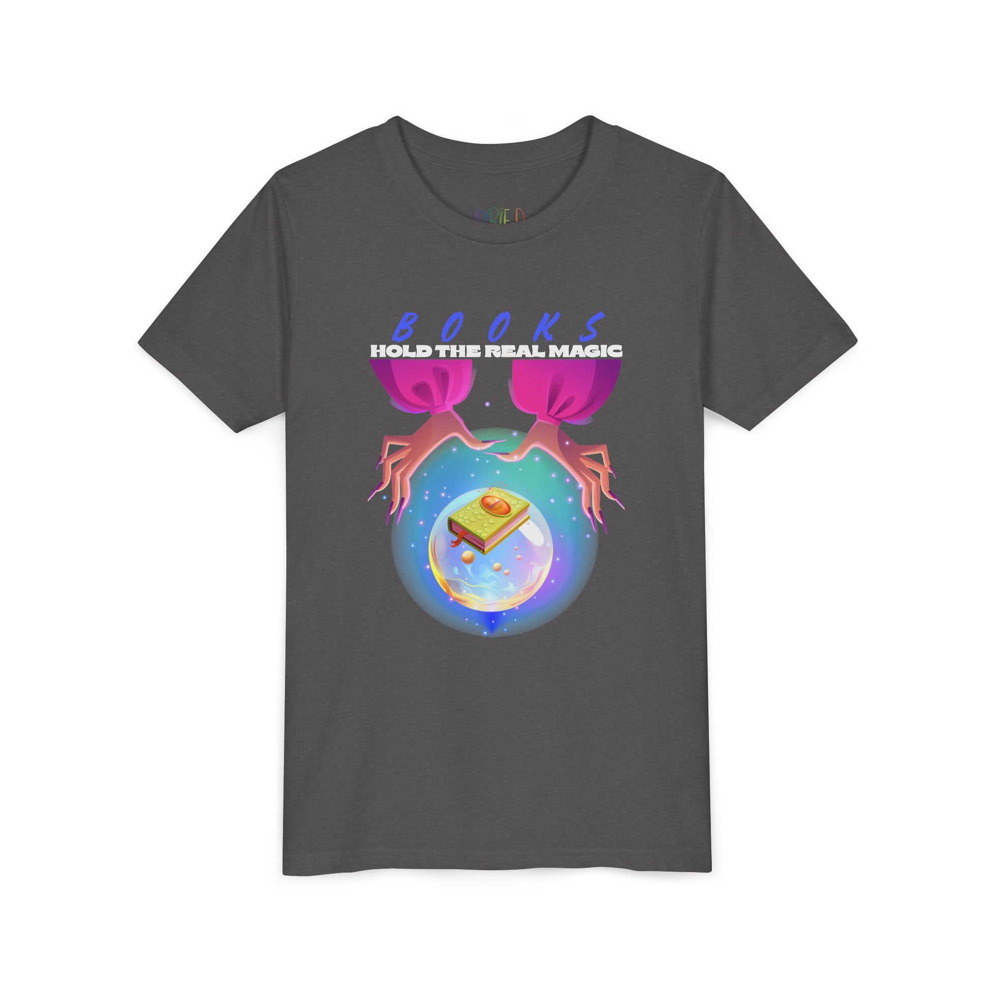 ✨📚 Perfect for young readers who believe in the power of stories! This youth tee features glowing hands, a crystal ball, and a magical book with the phrase “Books Hold the Real Magic.” Soft, comfy, and eye-catching, it’s great for school, reading clubs, or showing off a love of books anywhere. 🌟🔮