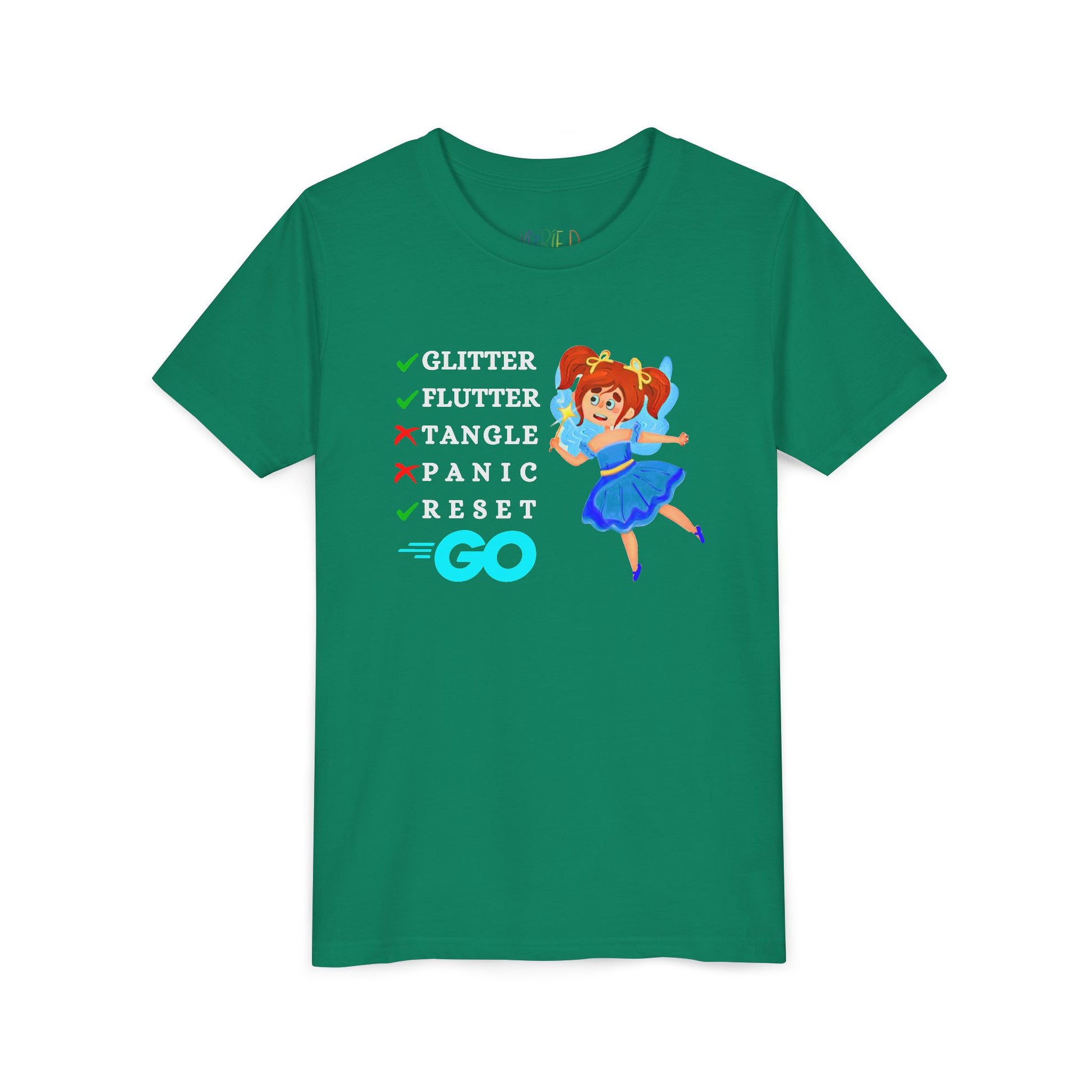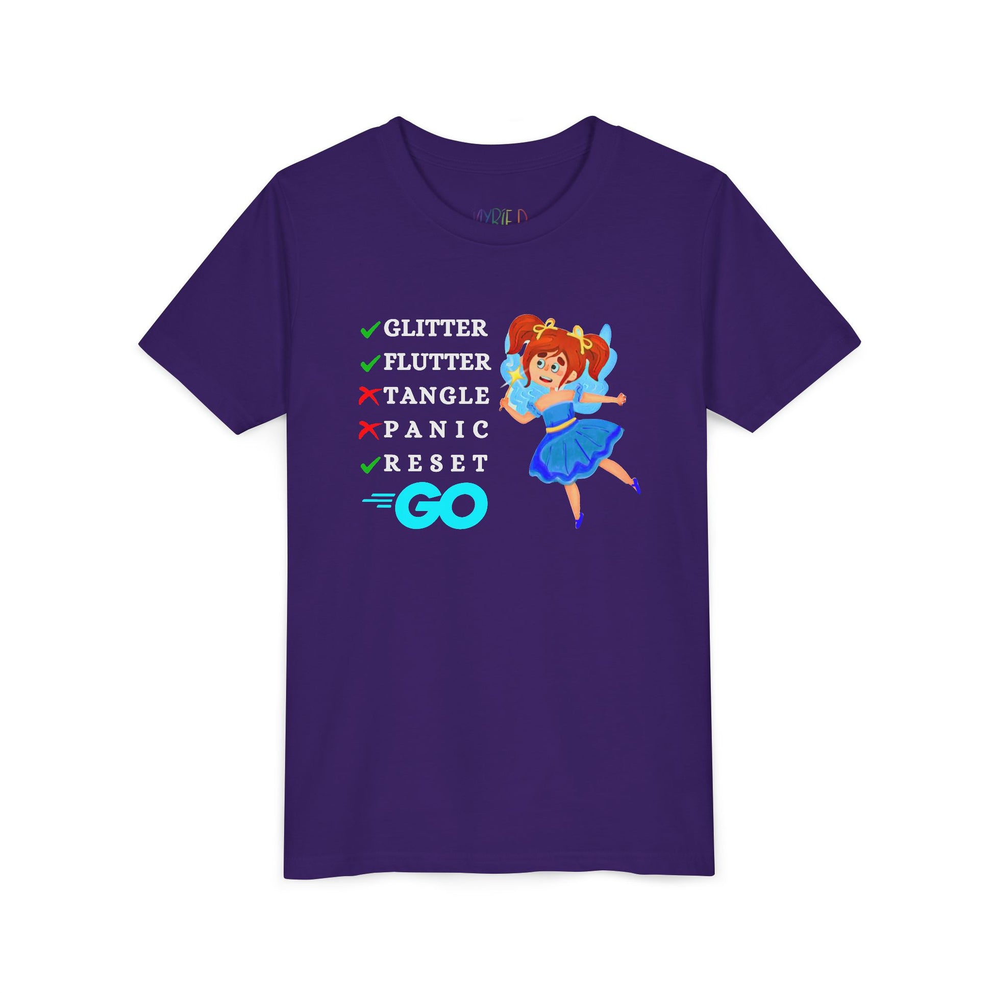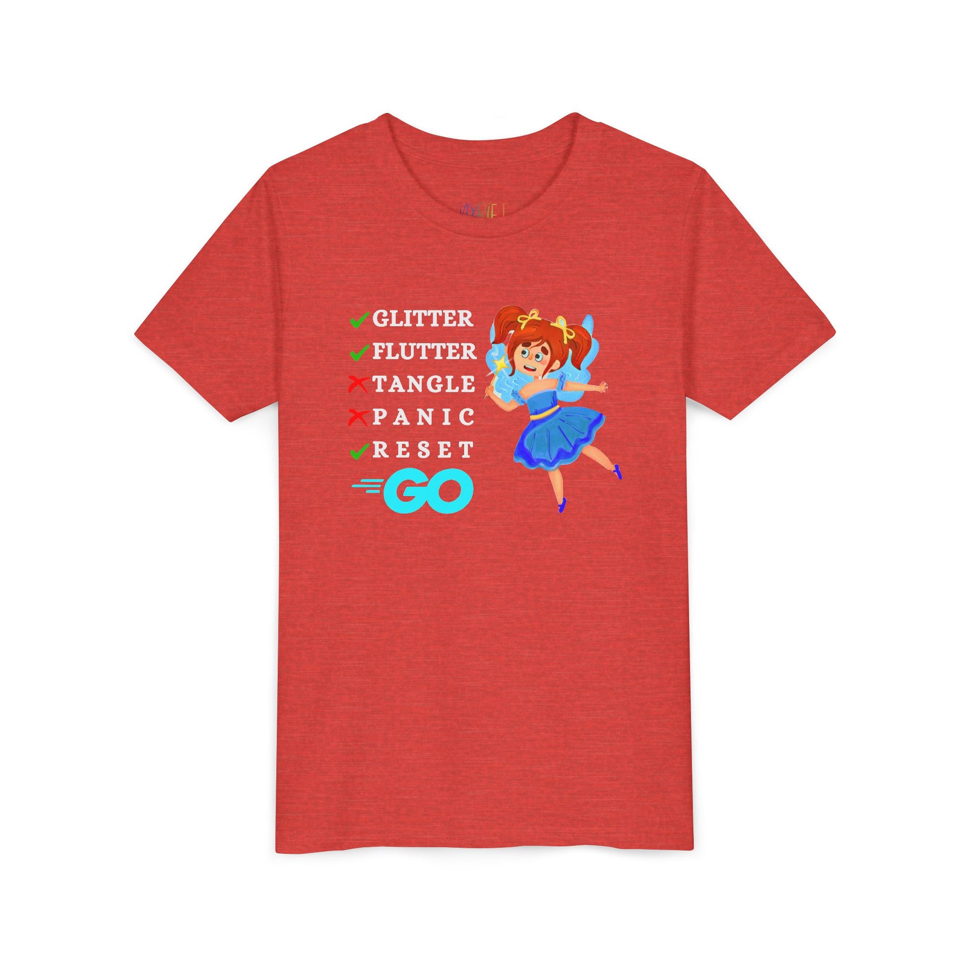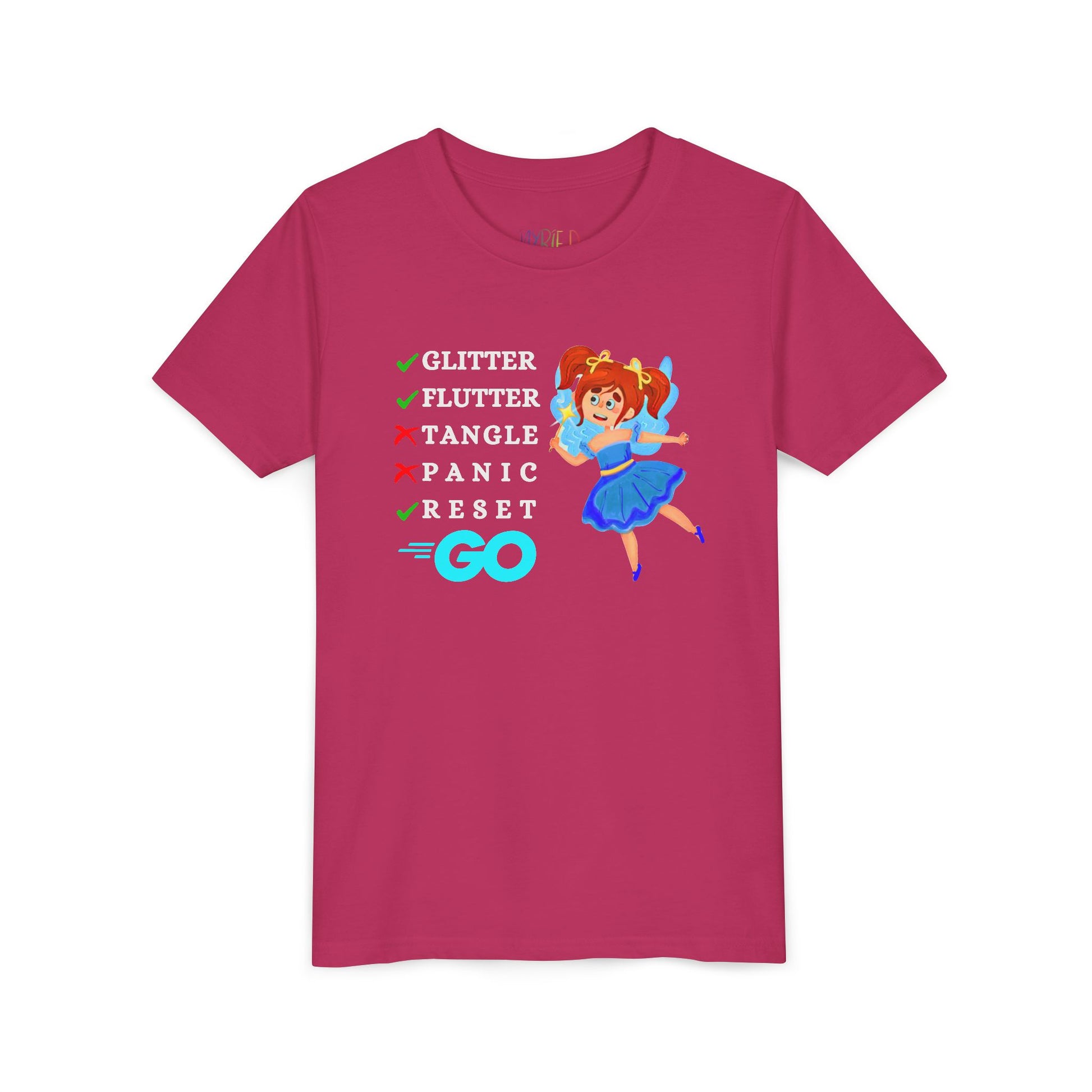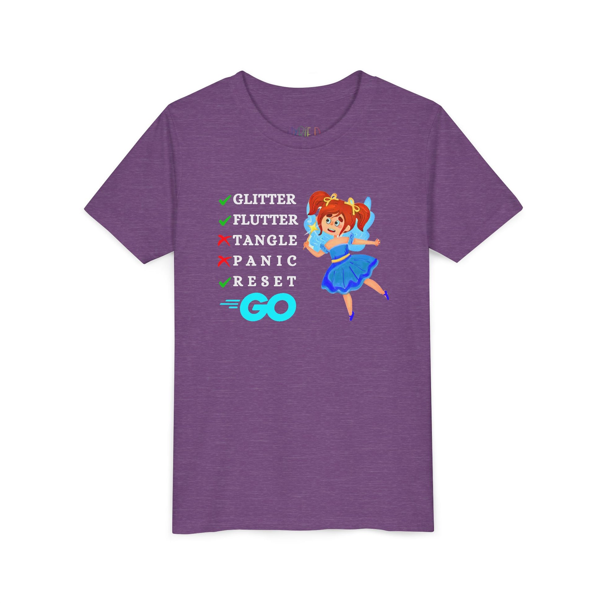 Youth Glitter. Flutter. Reset. GO. Tee – Bounce Back Like a Pro