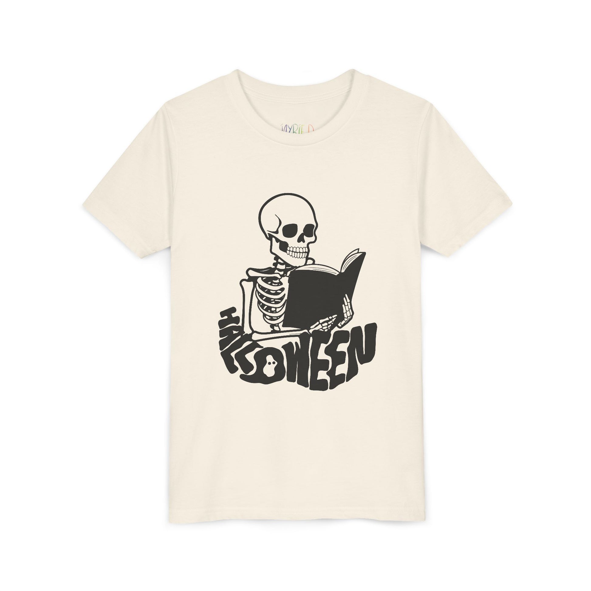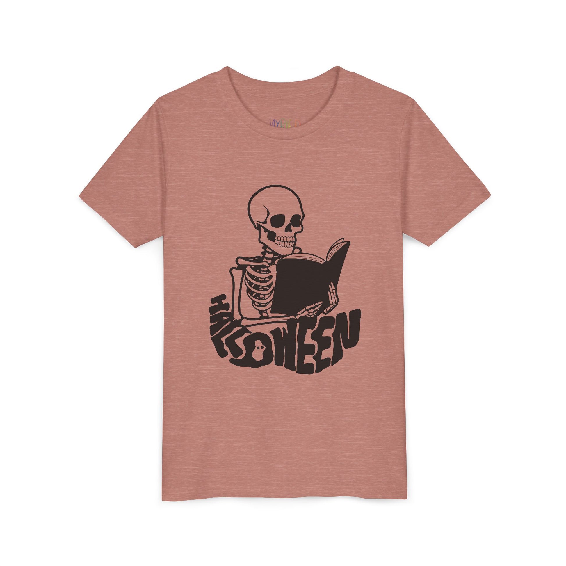 🎃 Made for kids who love both Halloween and stories! This youth tee features a cool skeleton reading a book with bold “Halloween” text, making it fun and festive without being too spooky. Perfect for trick-or-treating, school spirit days, or cozying up with a good book.