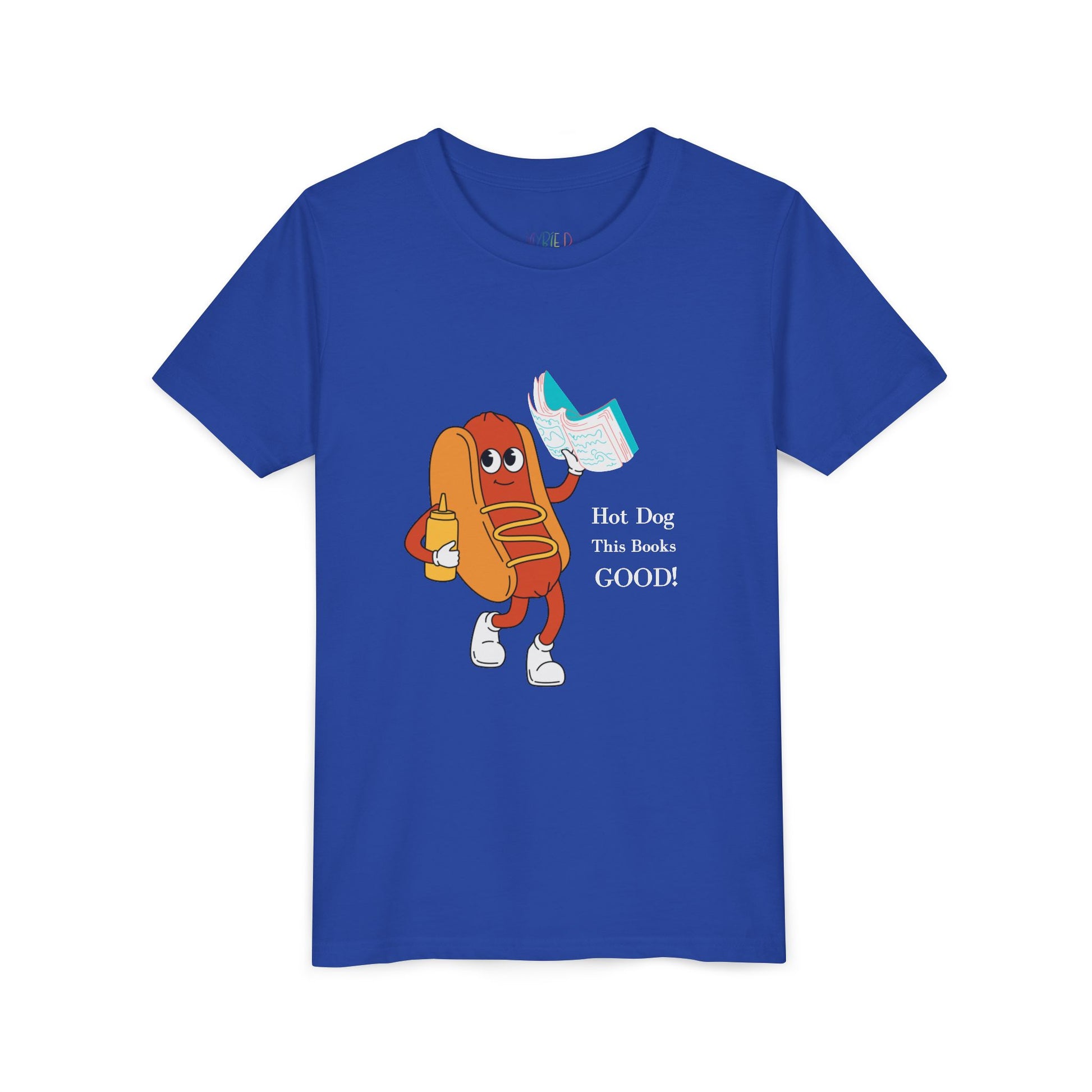 Youth Hot Dog This Book’s Good! Tee – Punny Apparel for Book-Loving Kids, A perfect pick for readers with a sense of humor (and a love for snacks)!