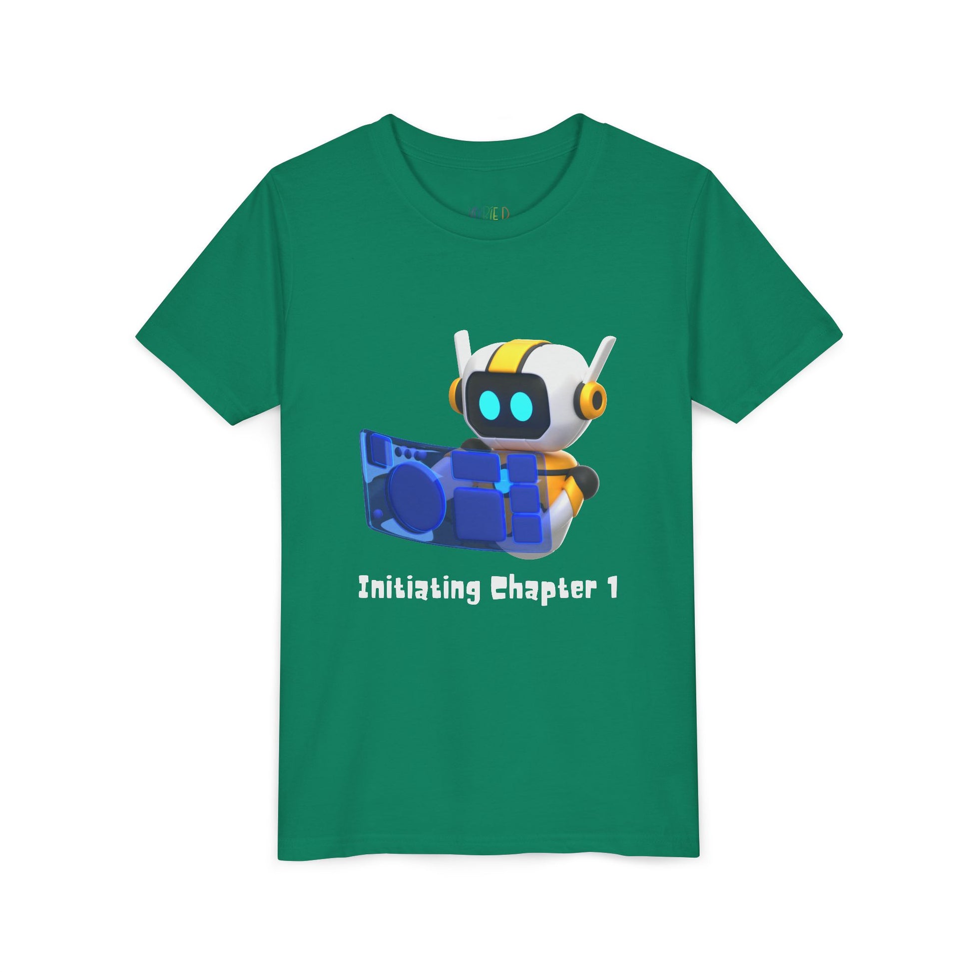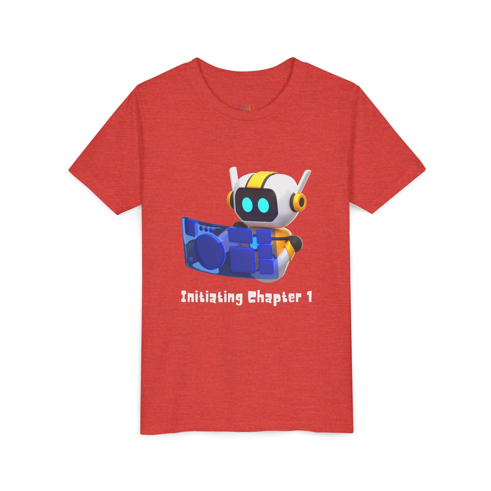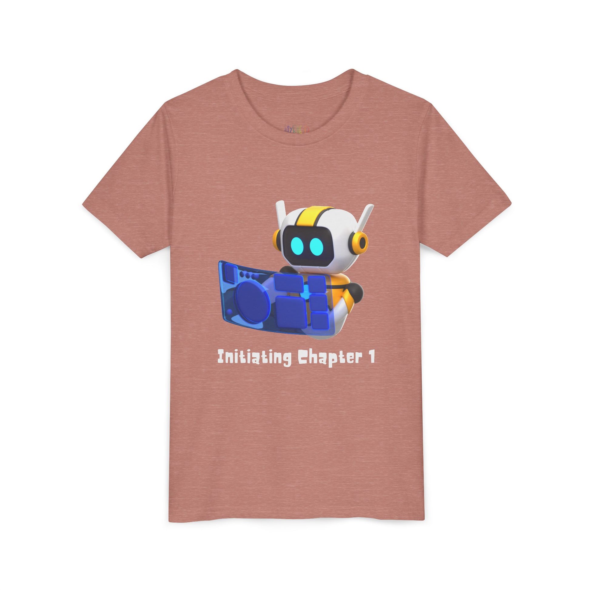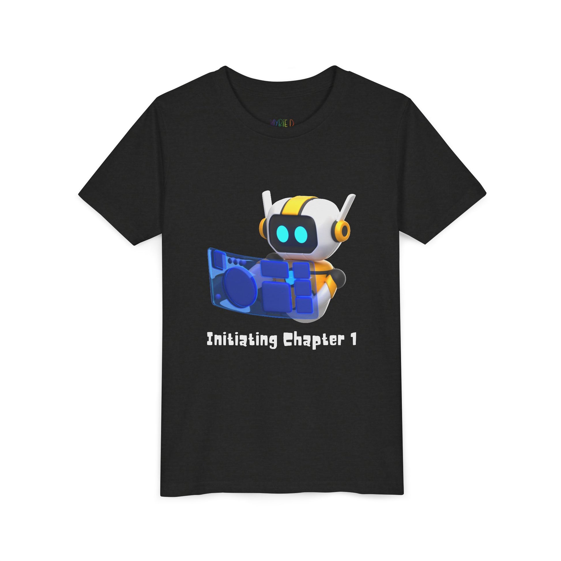 Youth Initiating Chapter 1 Tee – Robot Reading Adventure Shirt, A fun first chapter for future book lovers and digital dreamers alike.