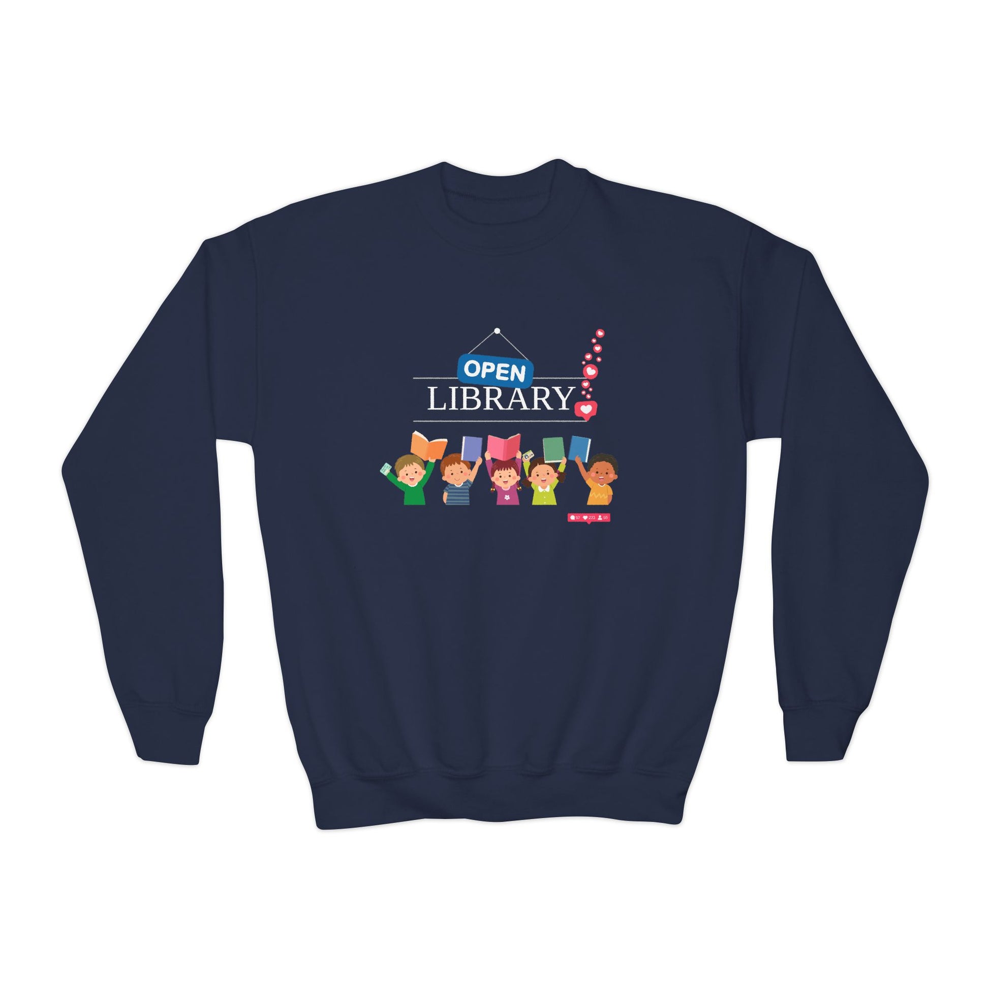 Youth Reading Sweatshirt, Library Design, Gift for Young Readers & School Book Lovers
