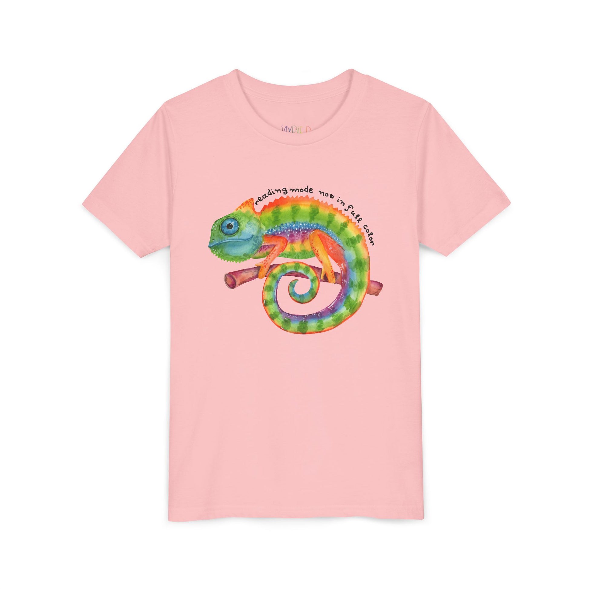 Youth Reading Mode: Now in Full Color Tee – Colorful Chameleon Shirt for Curious Kids