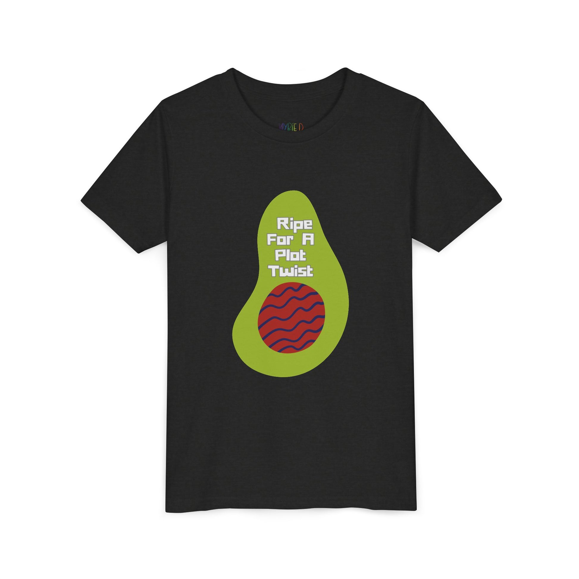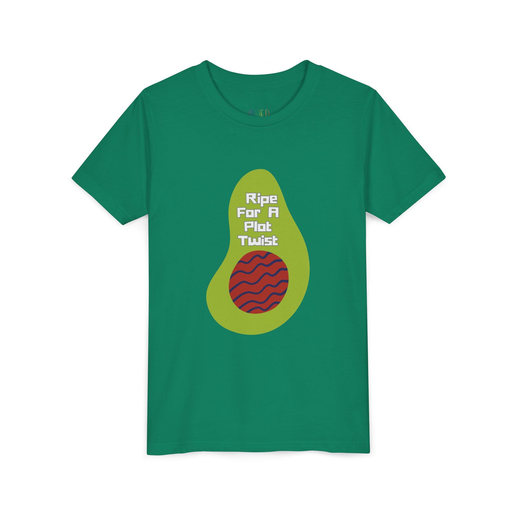 Youth Ripe For A Plot Twist Tee – Funny Avocado Shirt for Bookworms & Goofballs, A clever twist for kids who love stories with flavor