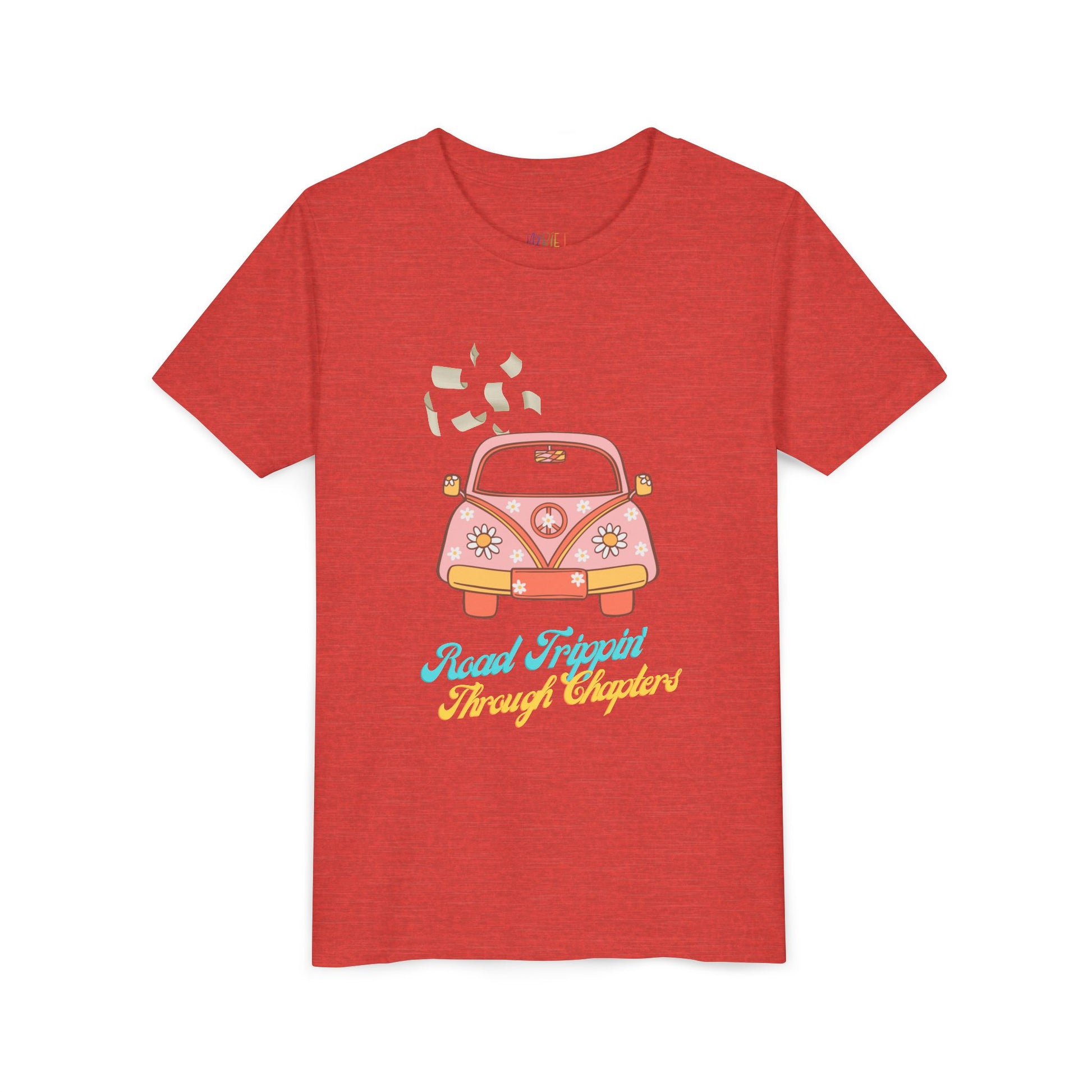 Youth Road Trippin' Through Chapters Tee – For Book-Loving Adventurers, Perfect for young readers with wanderlust and wild imaginations!