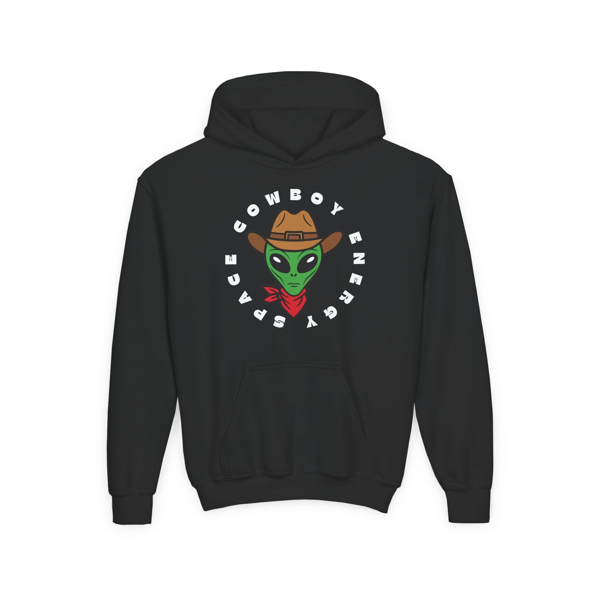 Youth Alien Cowboy Hoodie, Fun Space Design, Gift for Adventurous Readers