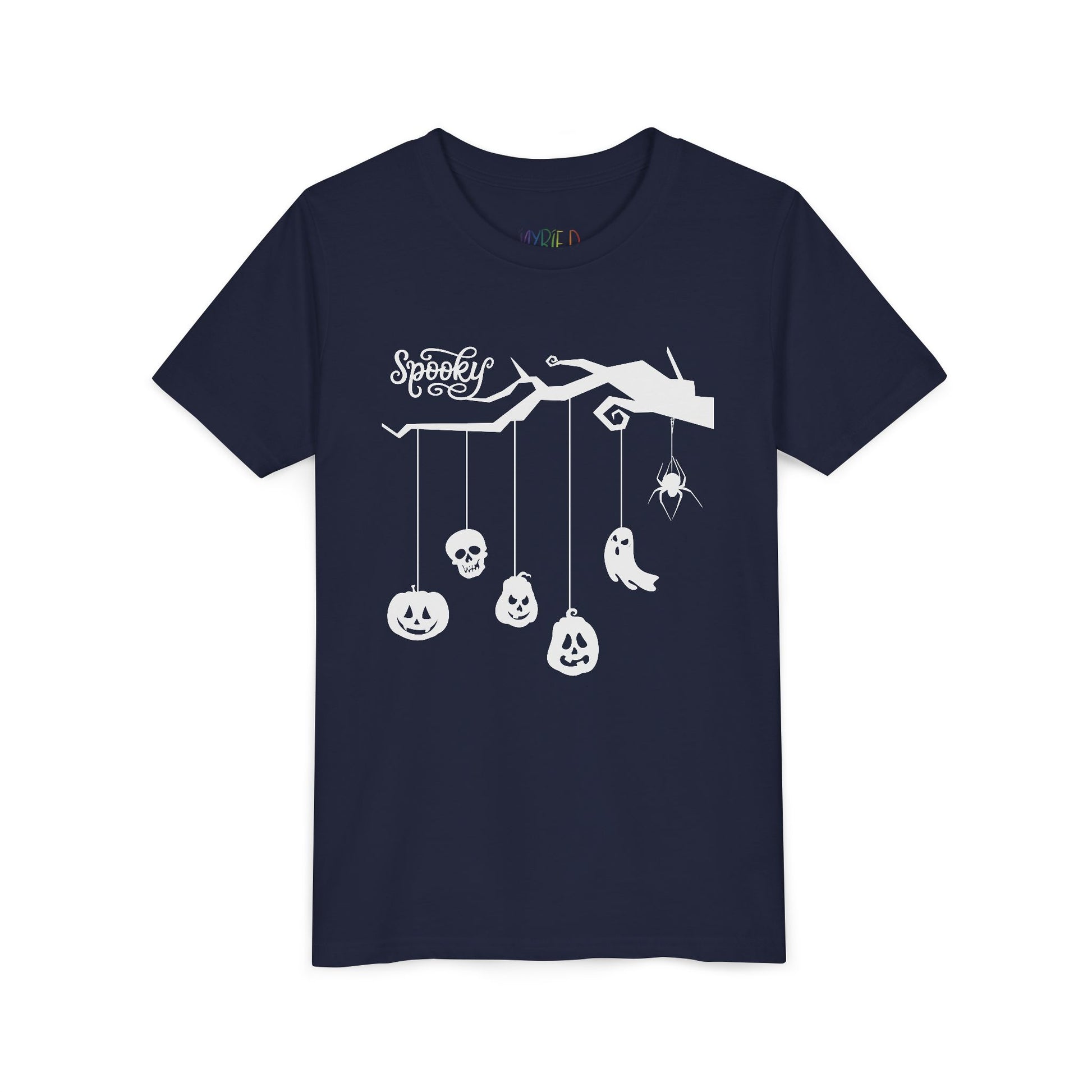 🎃👻 Perfect for kids who enjoy Halloween fun, this youth tee features dangling pumpkins, skulls, a ghost, and a spider — turning spooky into stylish. Soft, comfortable, and easy to wear, it’s a great pick for school, trick-or-treating, or just celebrating the season in a playful way. 🕷️🍬