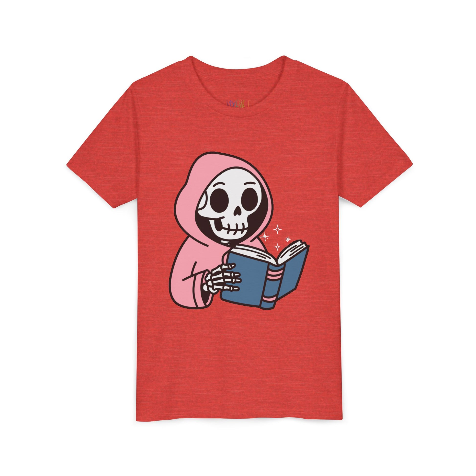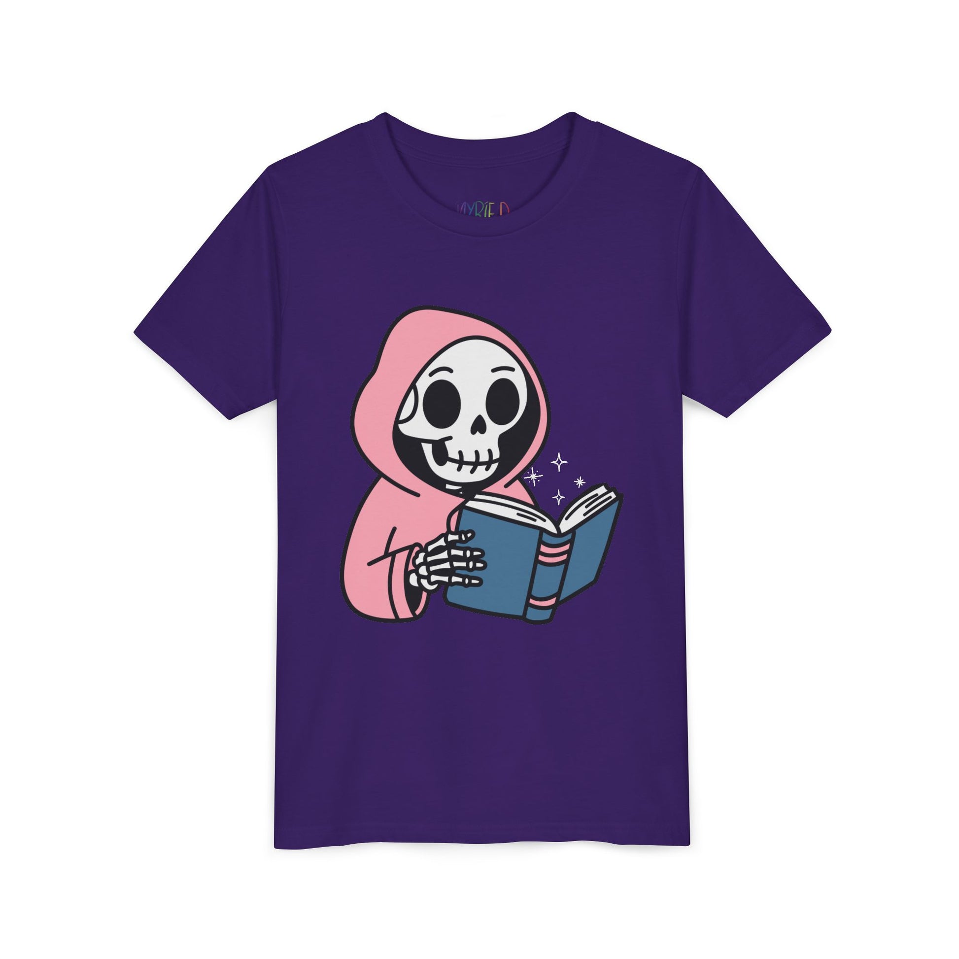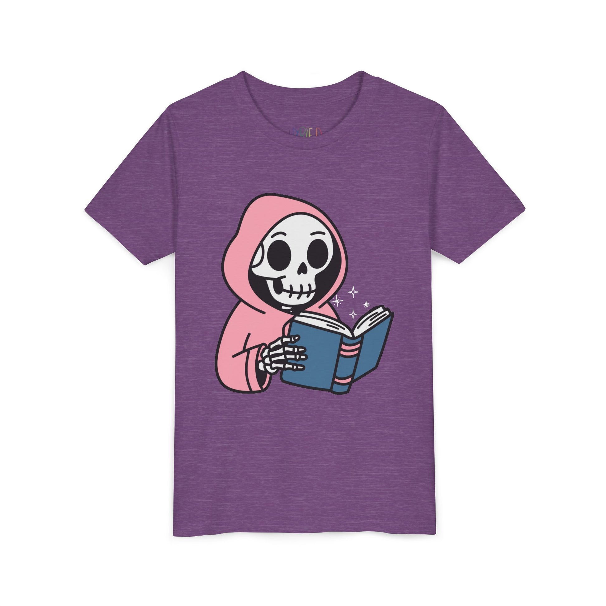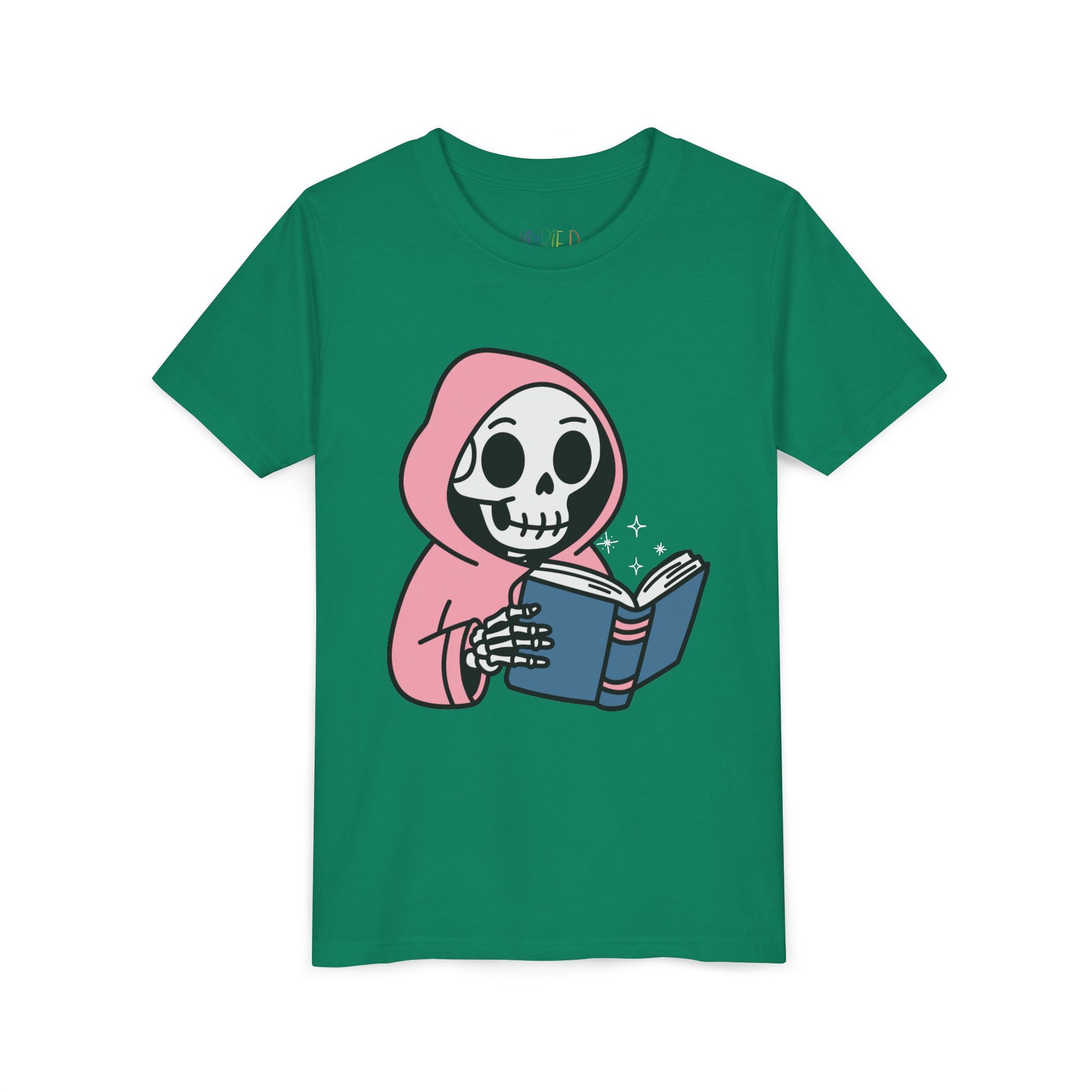Perfect for young readers who love a dash of spooky fun! This youth tee features a skeleton in a pink hoodie happily reading a magical book ๐โจ. Soft, comfy, and full of personality โ itโs just right for Halloween fun ๐, book club vibes ๐ฆ๐ง, or everyday wear with a playful twist ๐๐ซ.