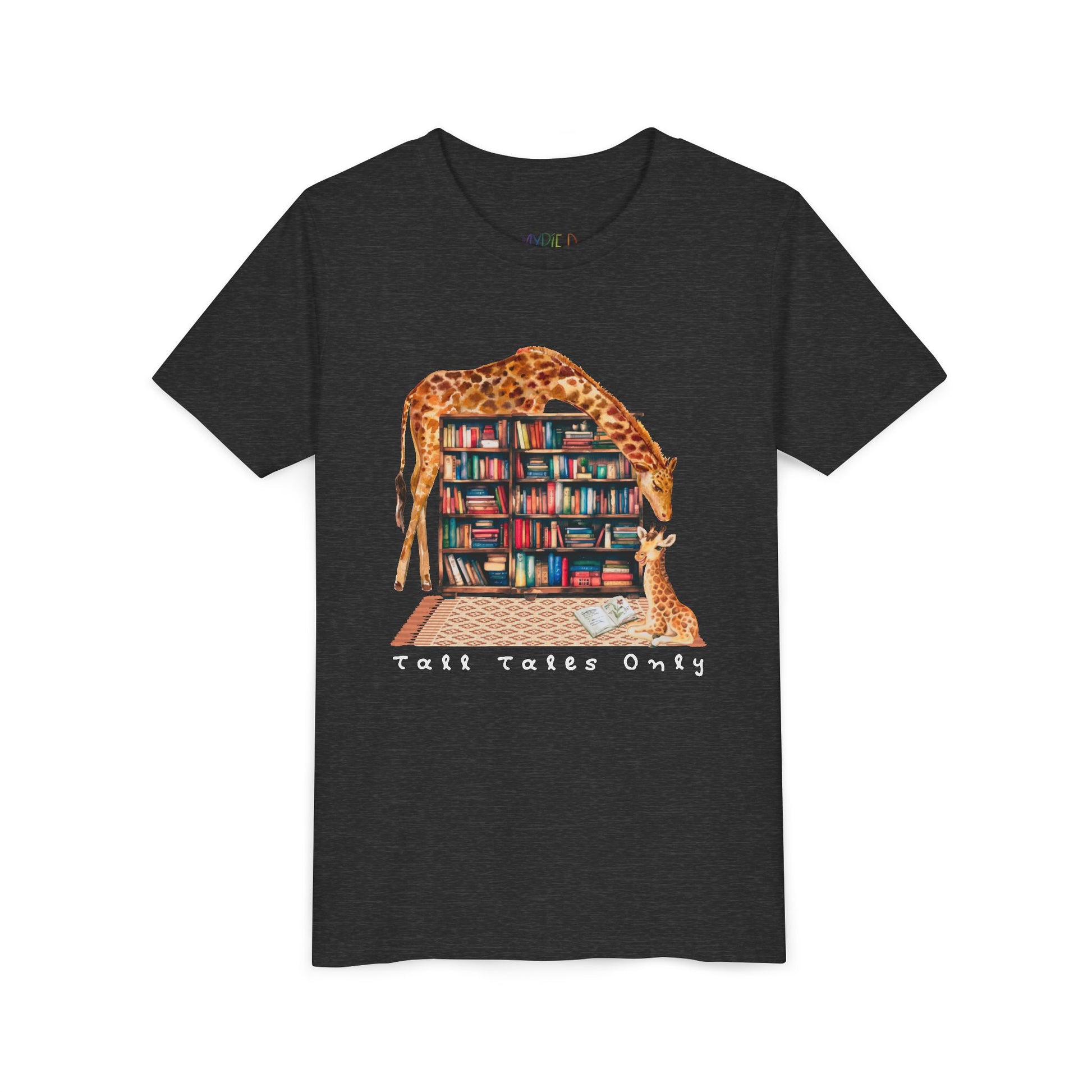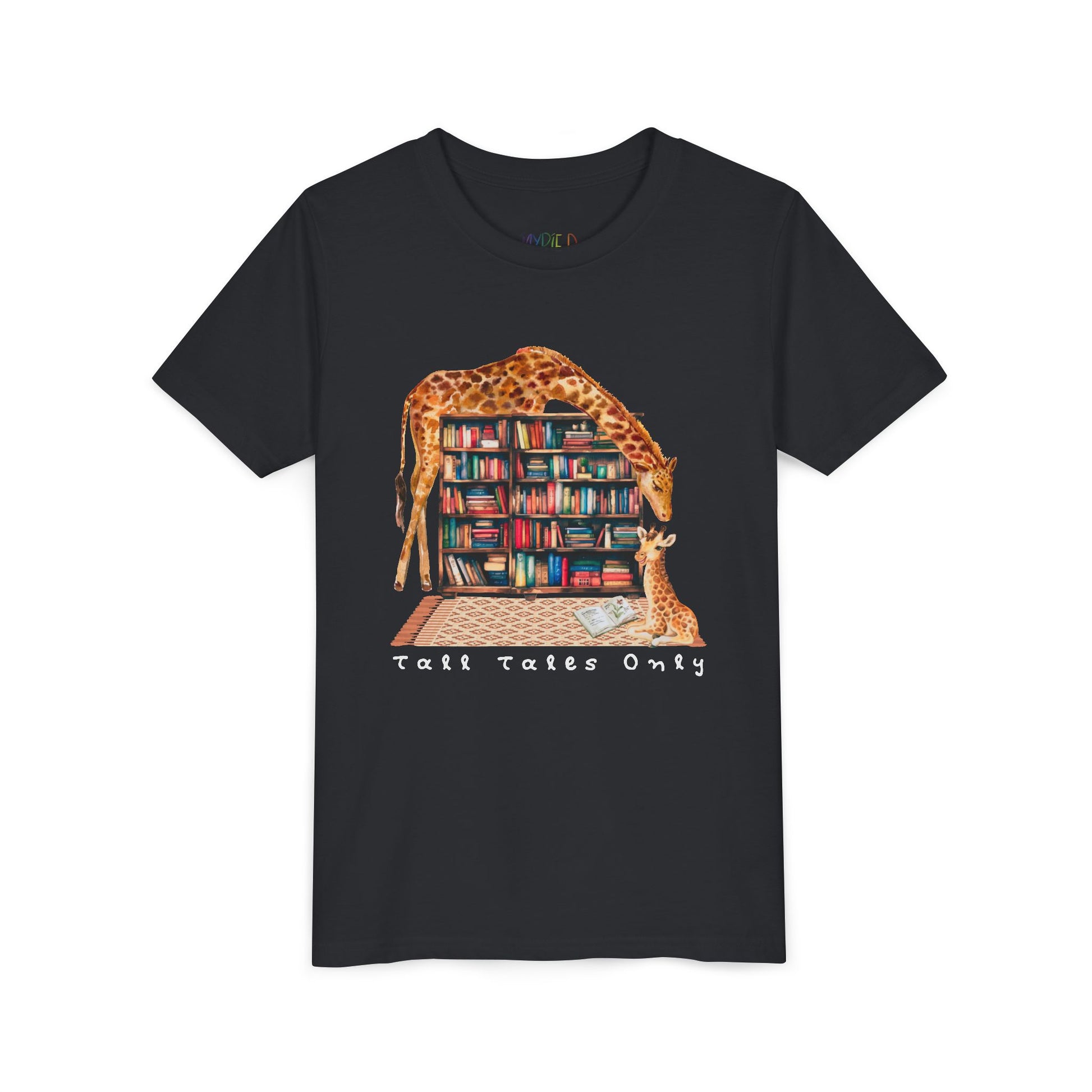 Youth Tall Tales Only Tee β Giraffe Book Shirt for Kids Who Love Big Stories
