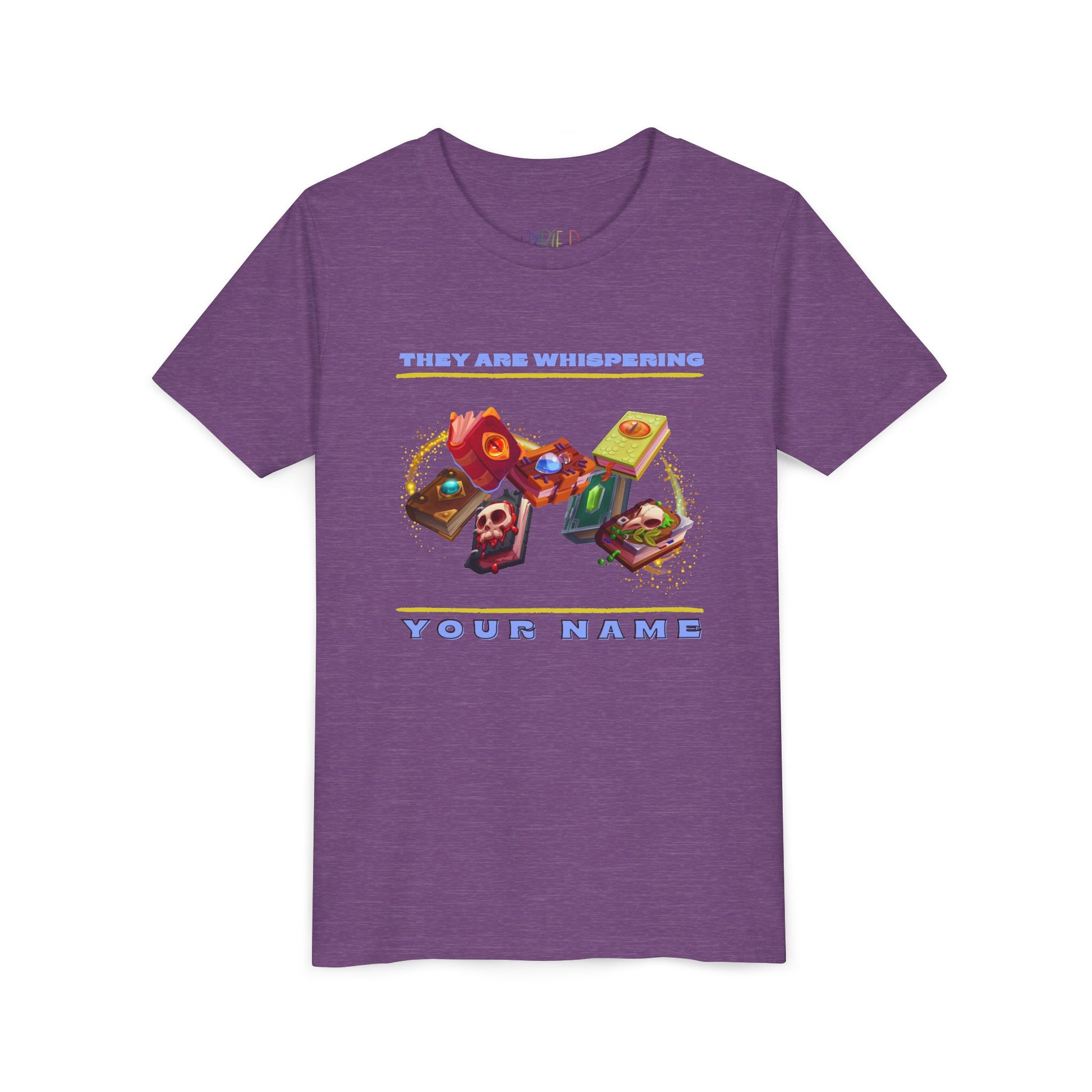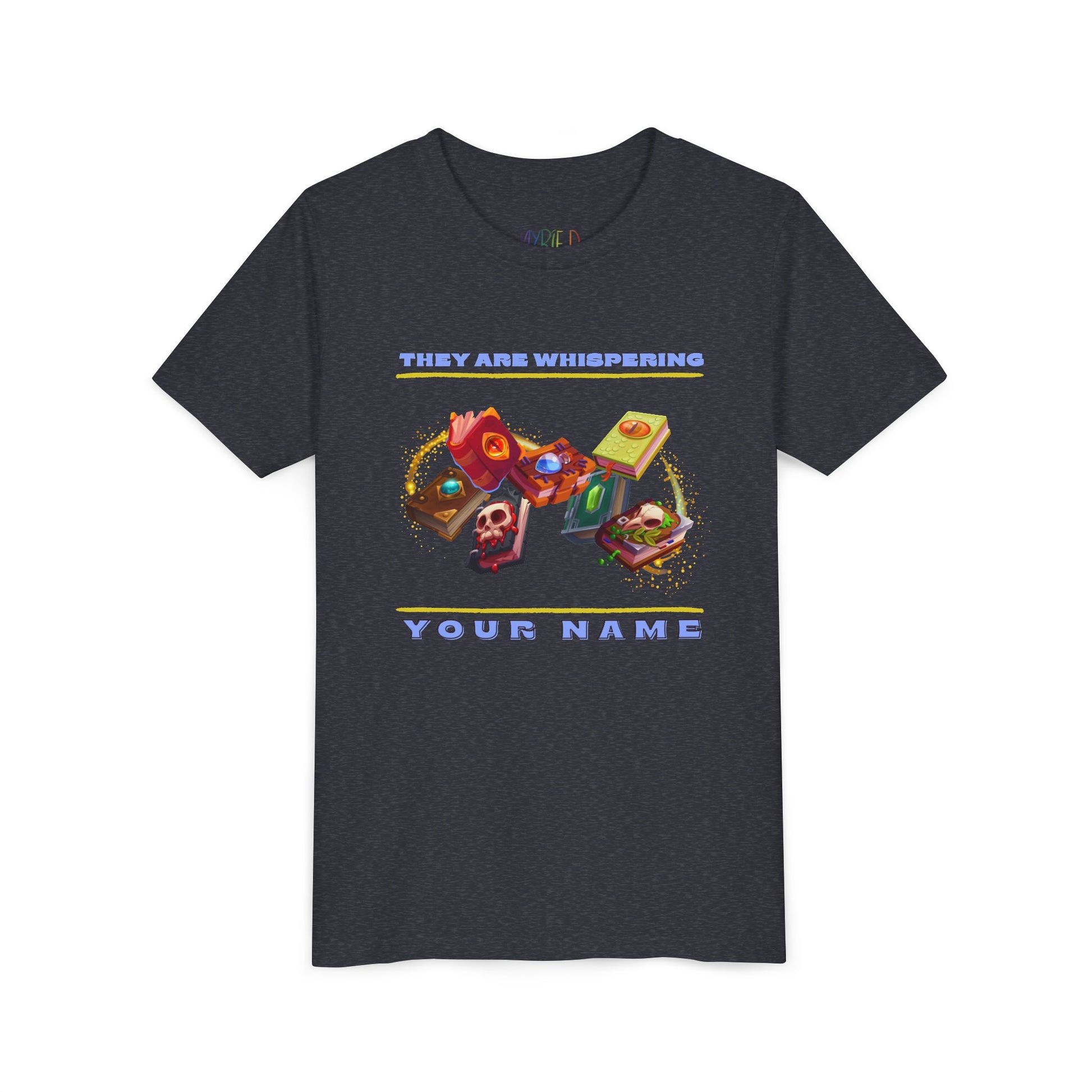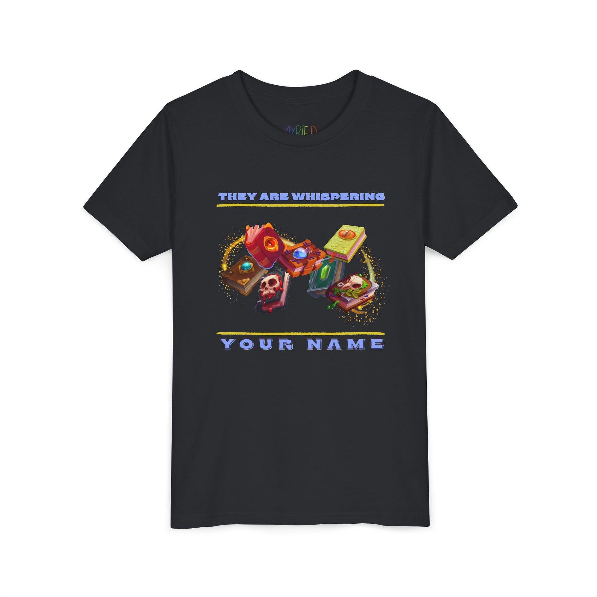 📚✨ A spooky-fun choice for young readers! This youth tee features a stack of enchanted books with glowing details and the phrase “They Are Whispering Your Name.” Soft, comfortable, and eye-catching, it’s perfect for Halloween fun, school events, or showing off a love of mysterious stories. 👻🔮