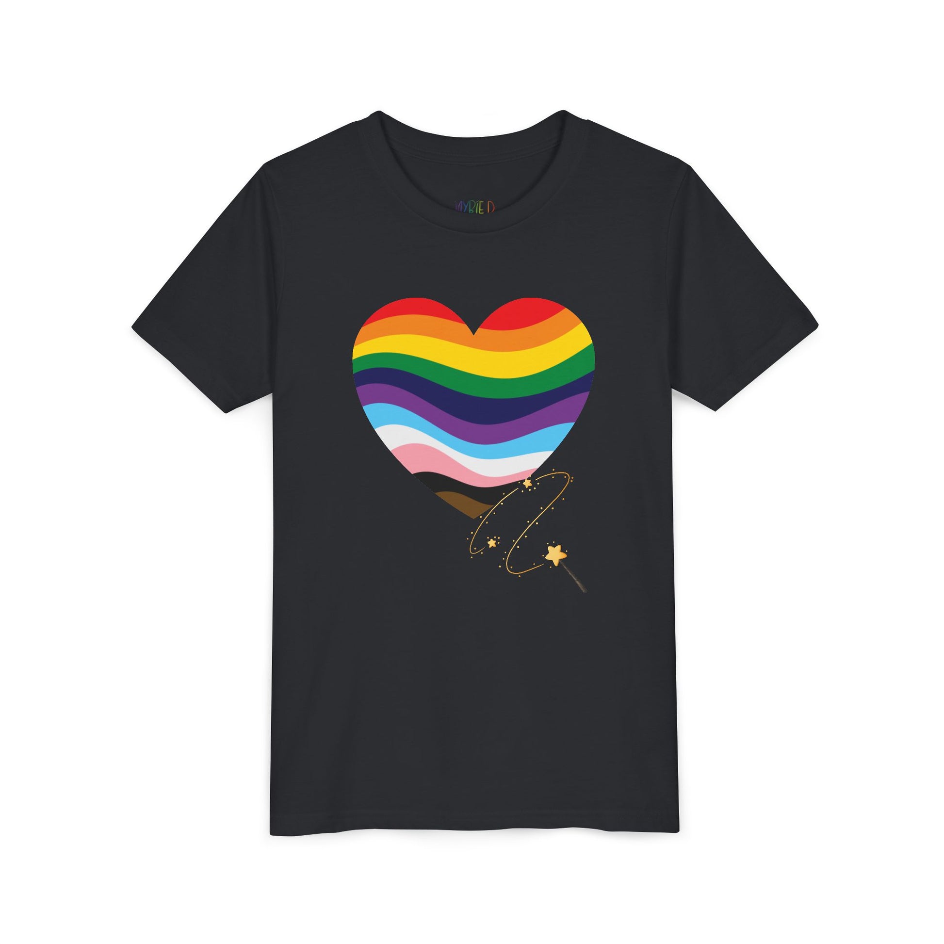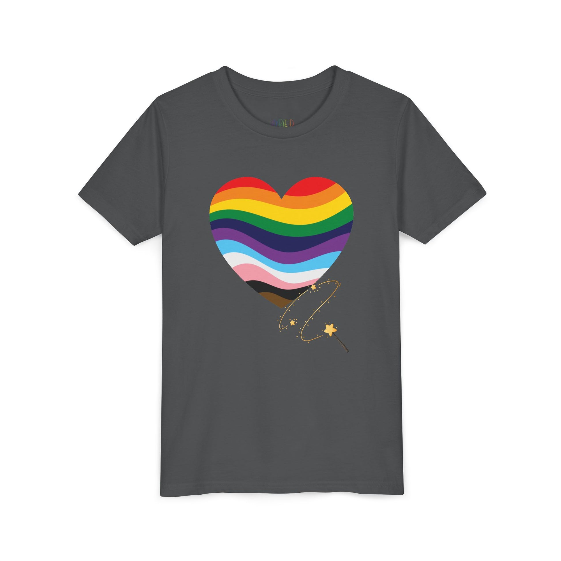 Youth Wand-Swished Rainbow Heart Tee – Lead with Love, Shine with Pride