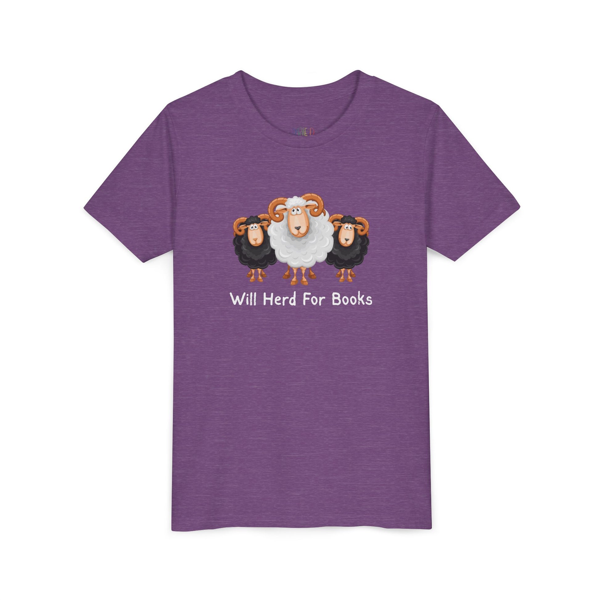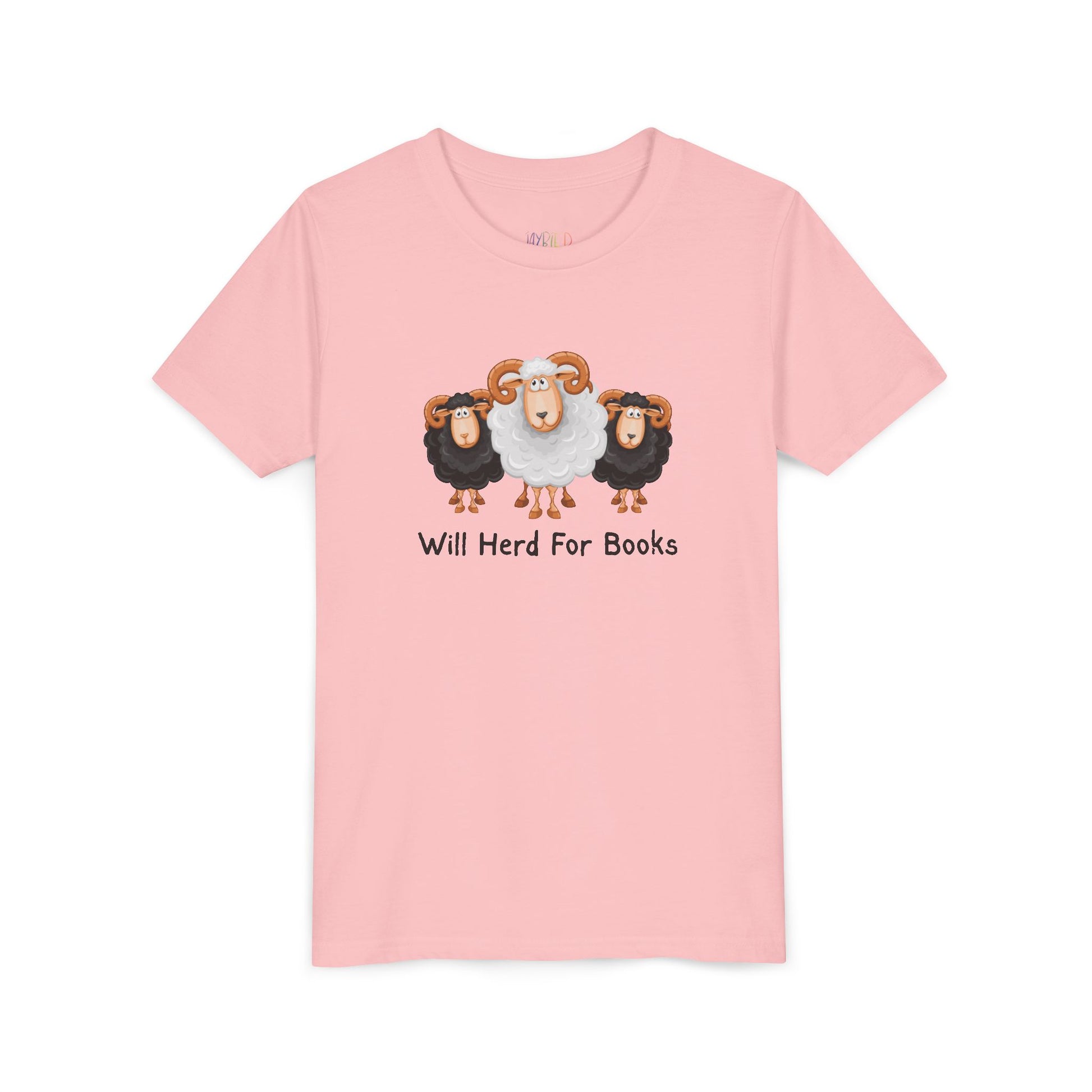 Youth Will Herd for Books T-Shirt β Funny Sheep Tee for Young Book Wranglers